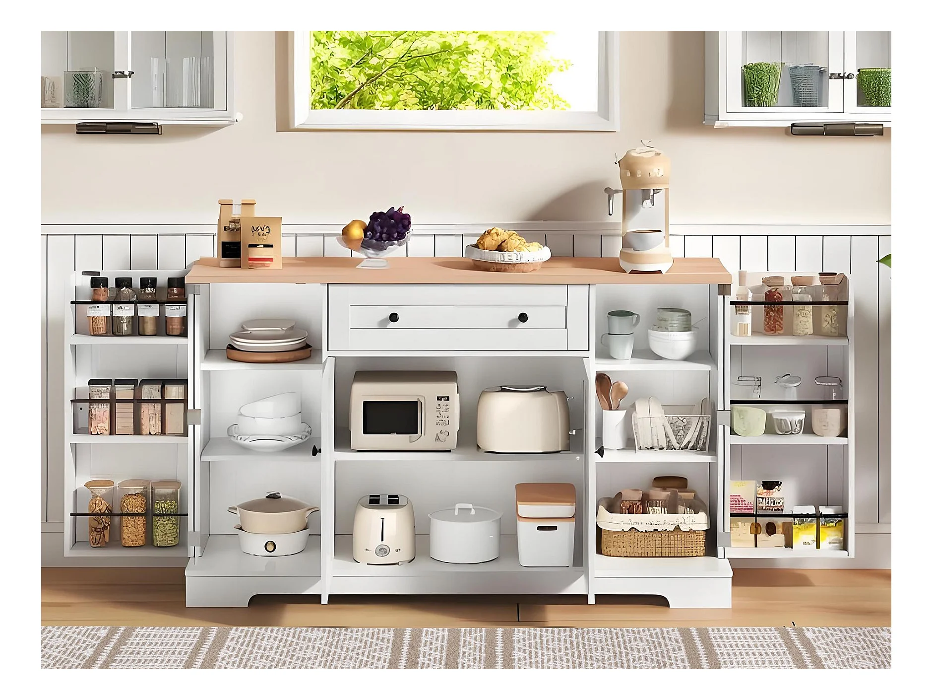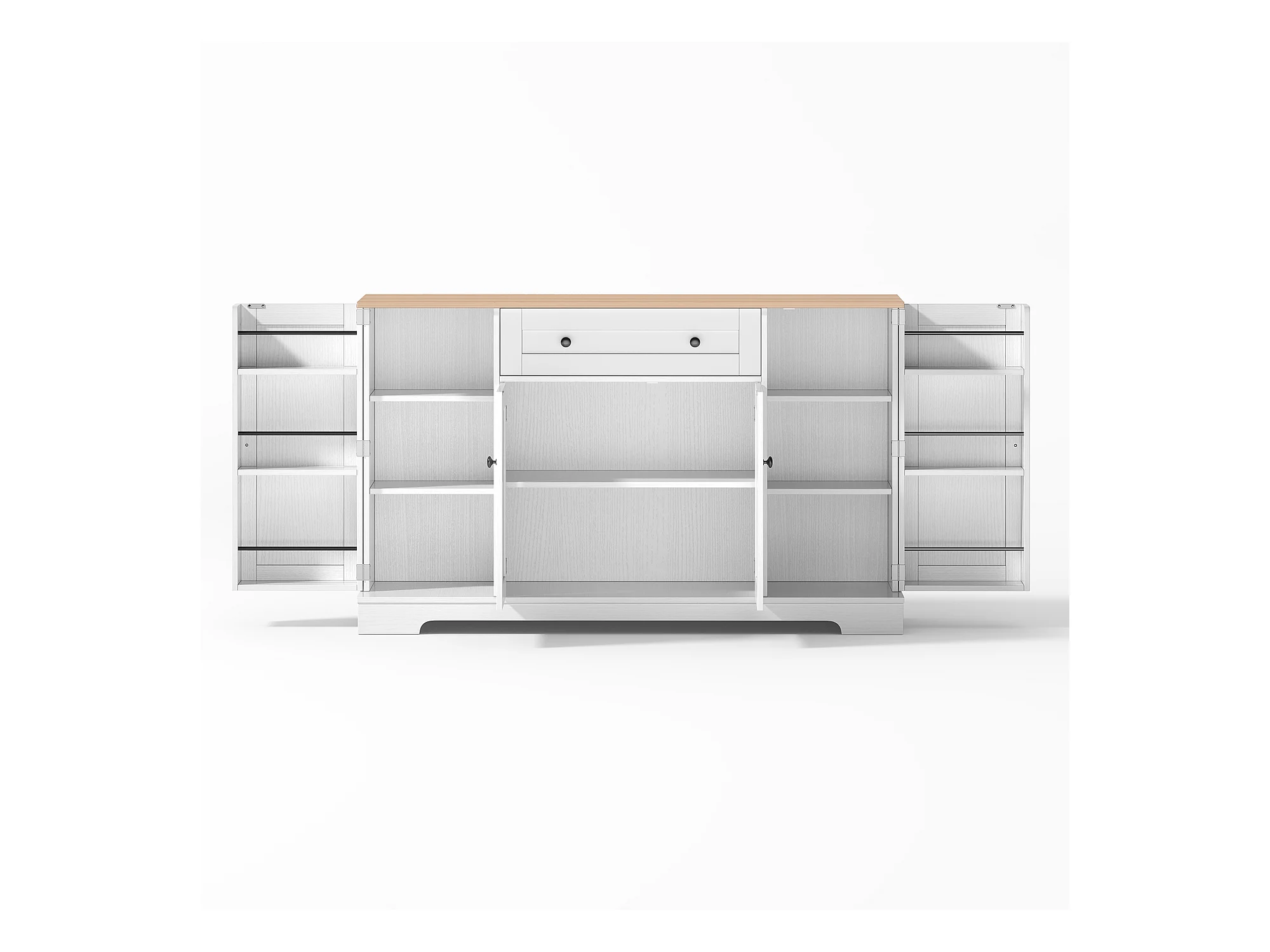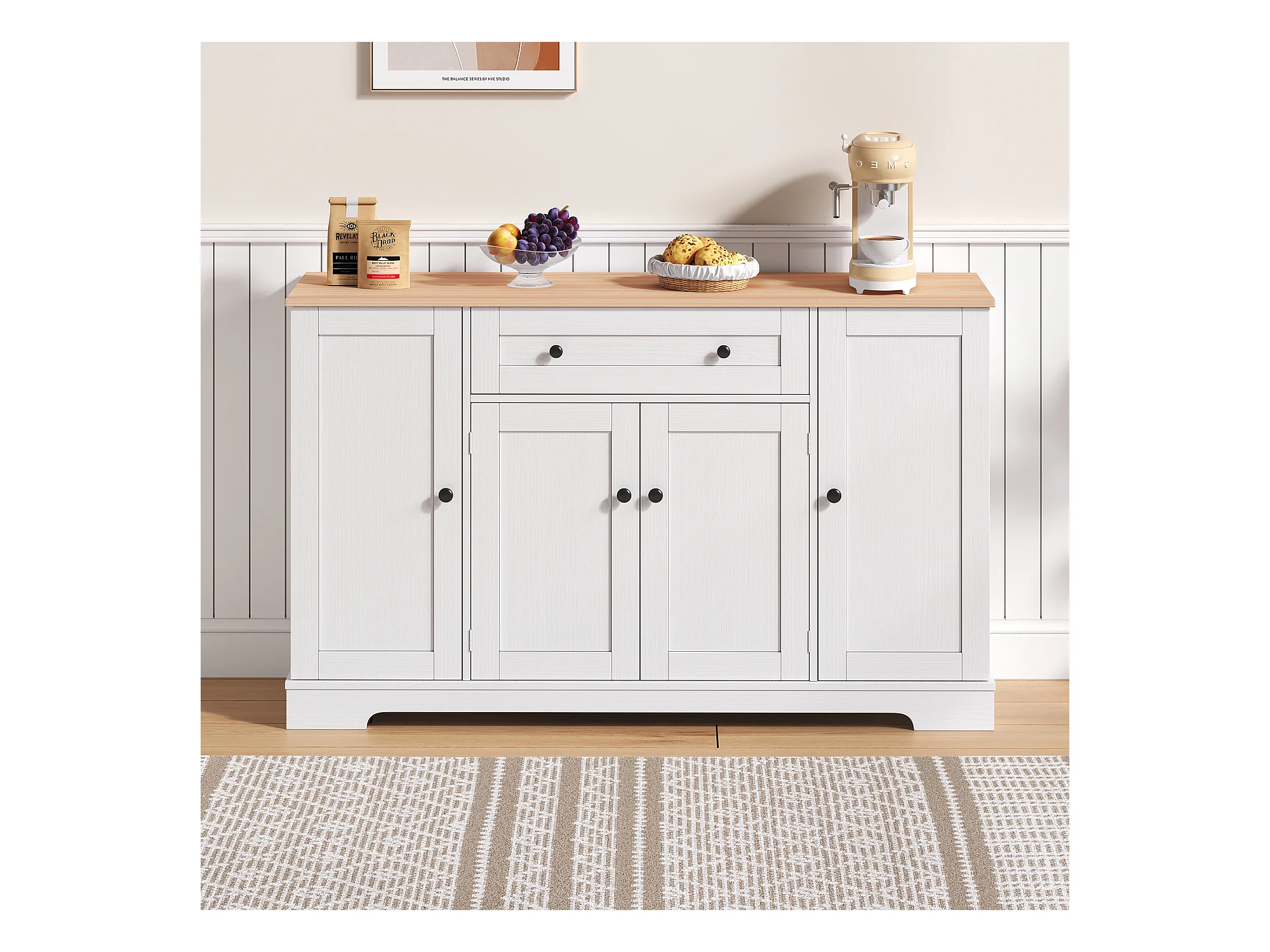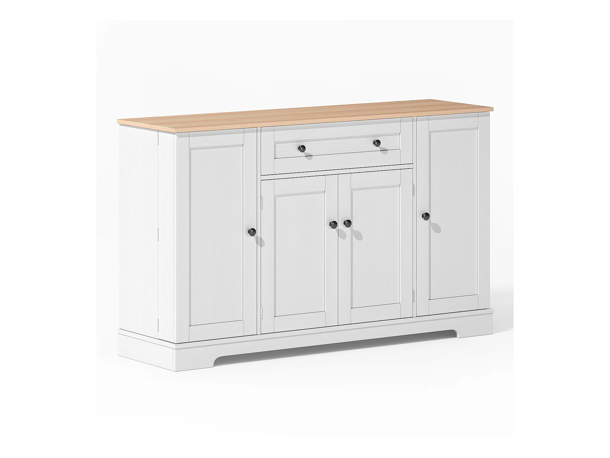 Buffet moderne 138x40x85cm - avec 2 portes et 1 tiroir - 2 portes avec étagères - Blanc + Naturel