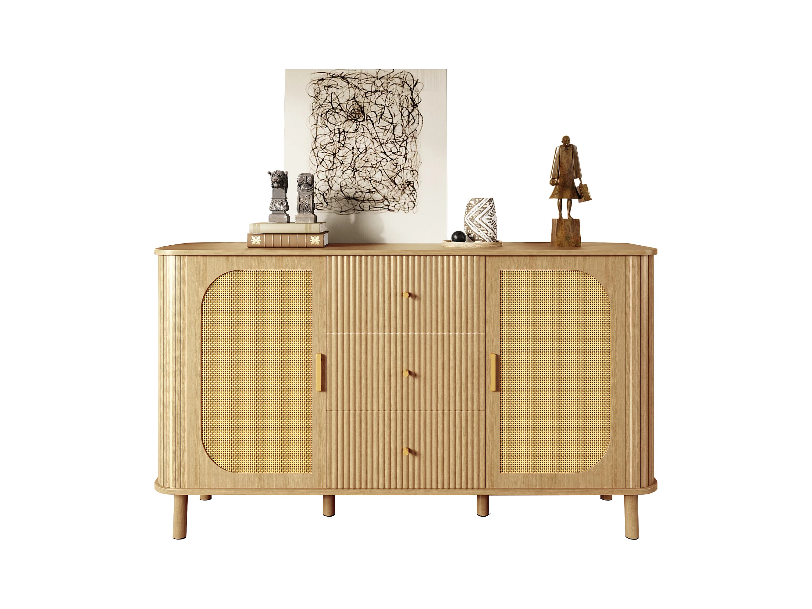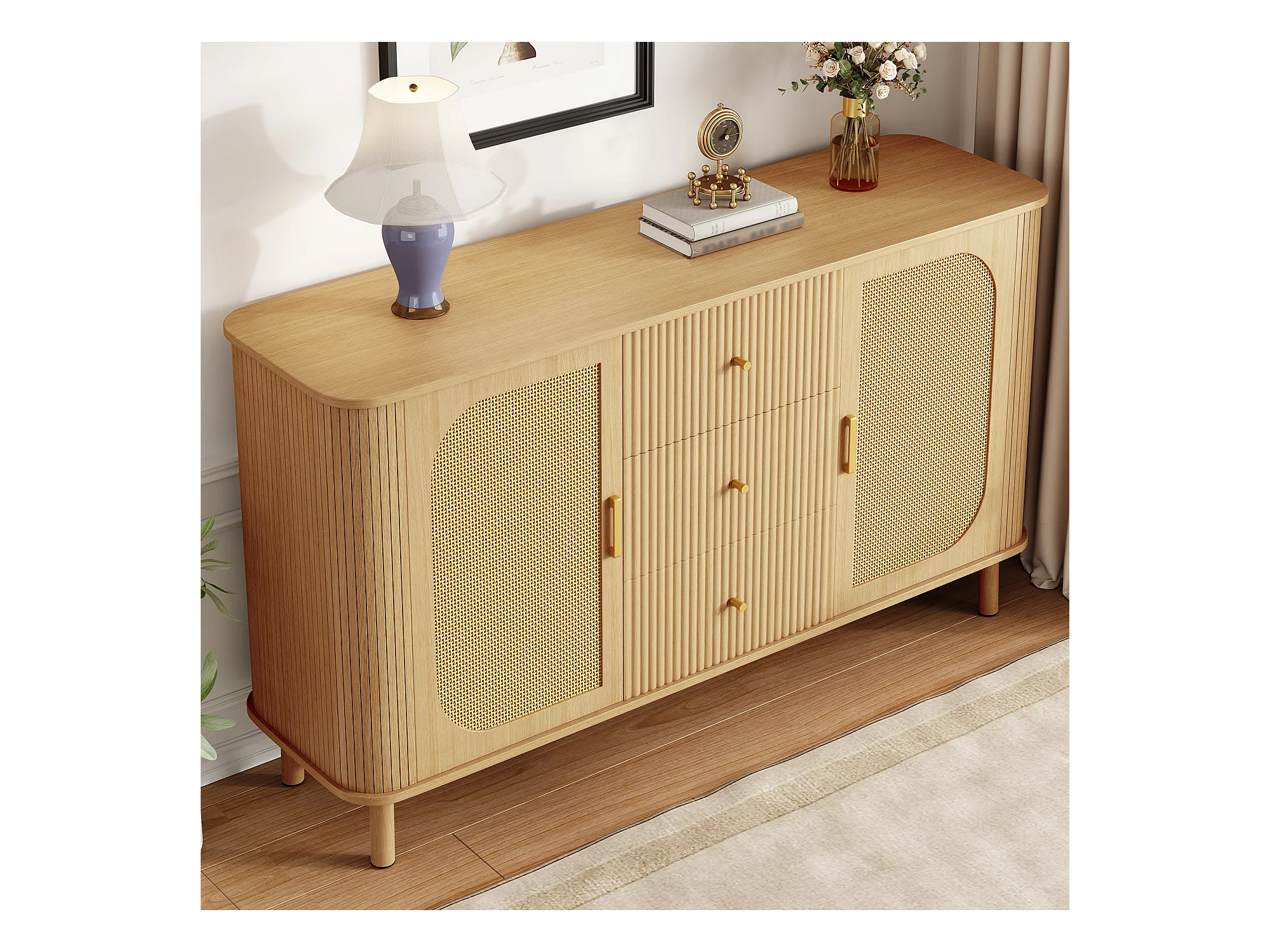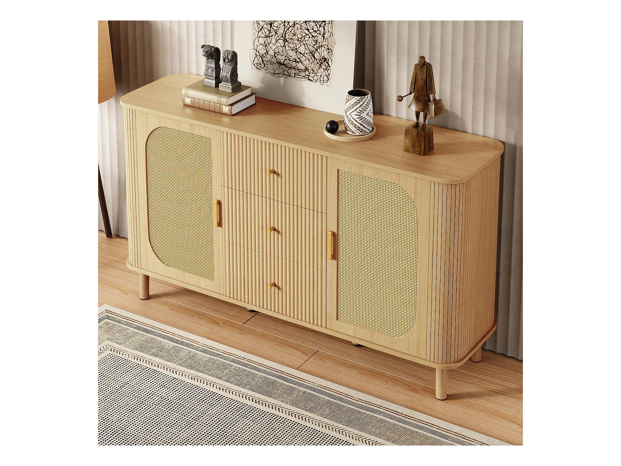 Buffet moderne - 140 x 40 x 80 cm - avec 3 tiroirs + 2 portes - aspect bois - MDF - naturel
