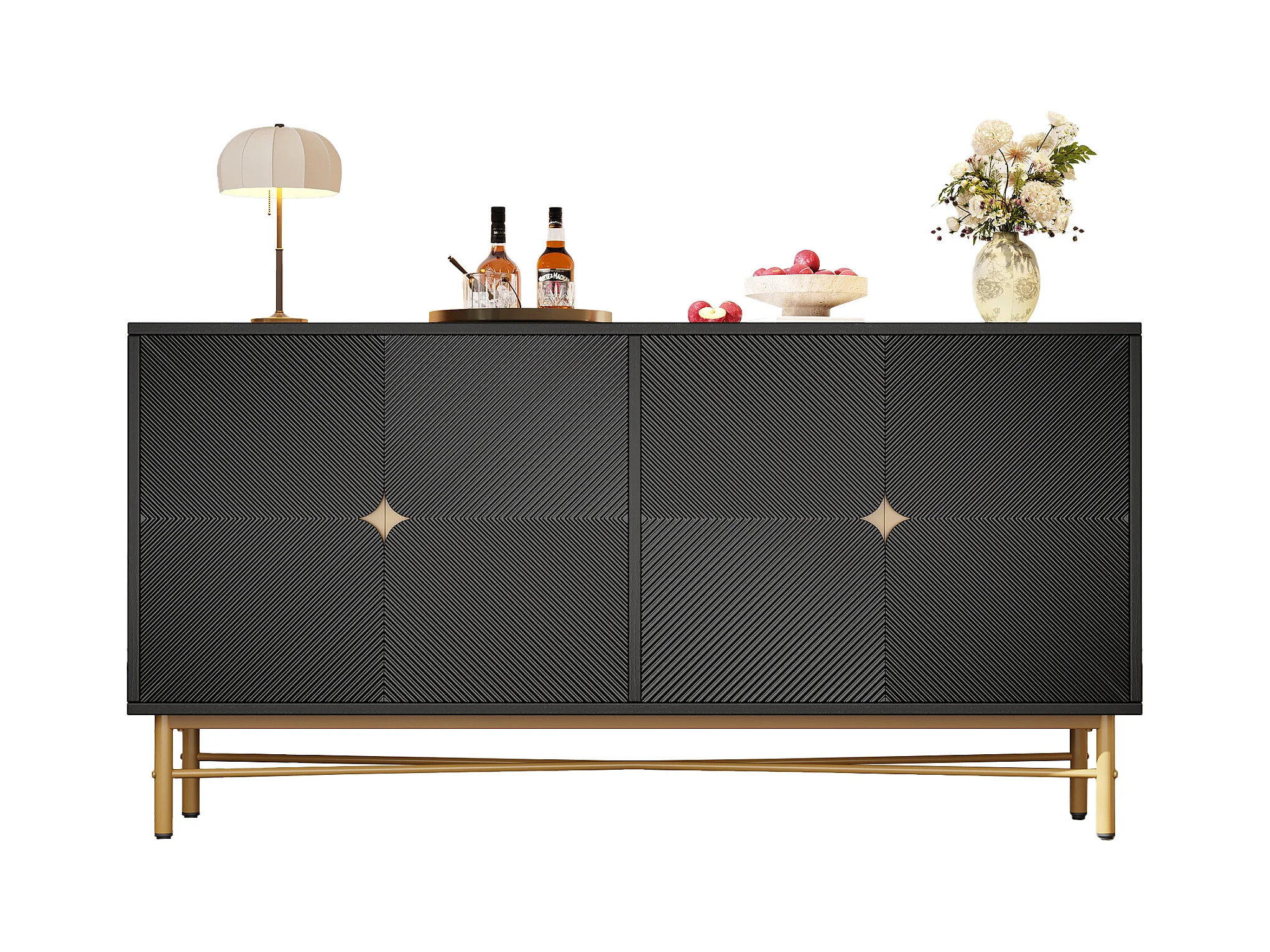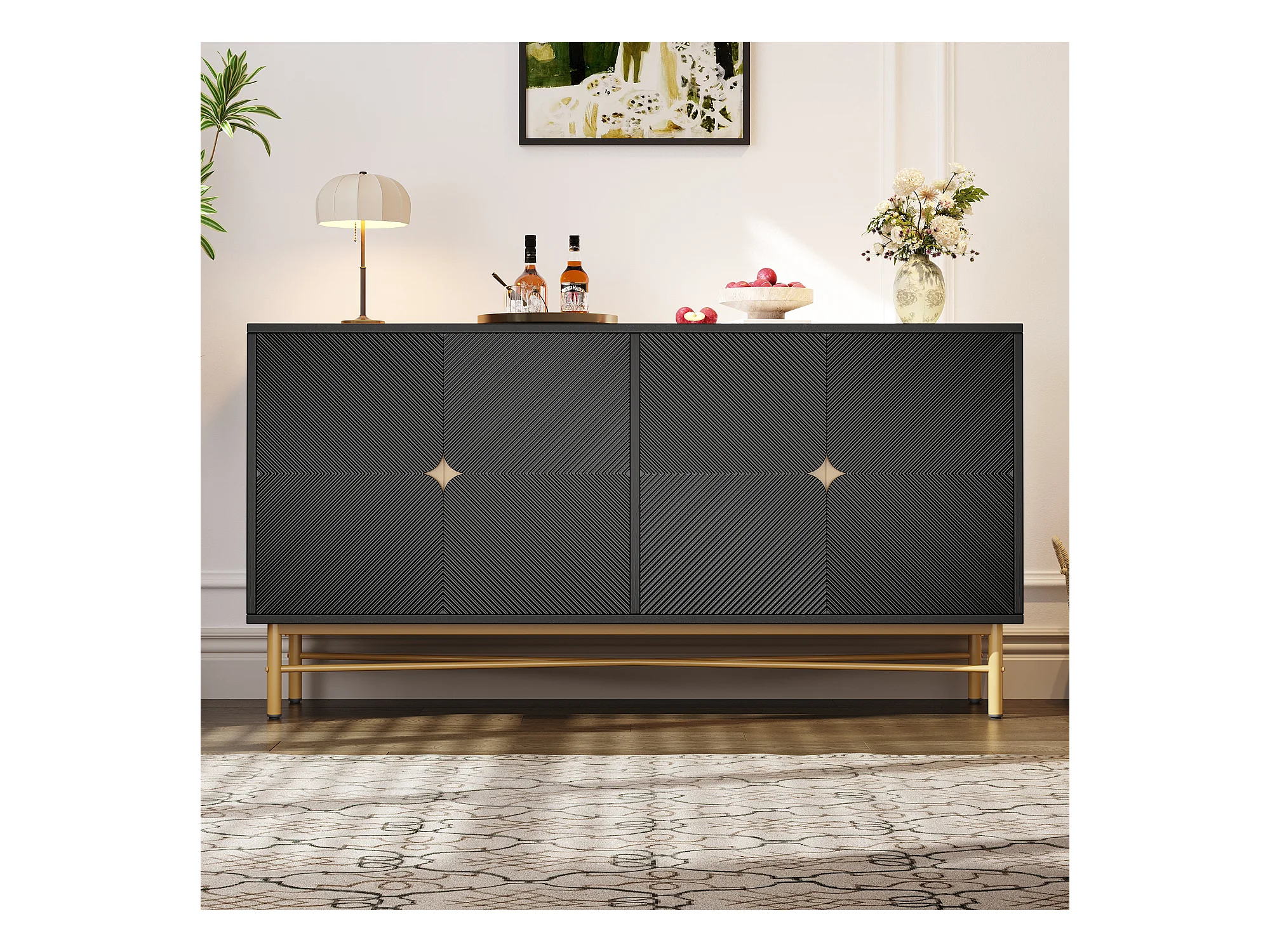 Buffet moderne 160x40x82cm - avec 4 portes - pieds en métal - panneau de particules - Noir
