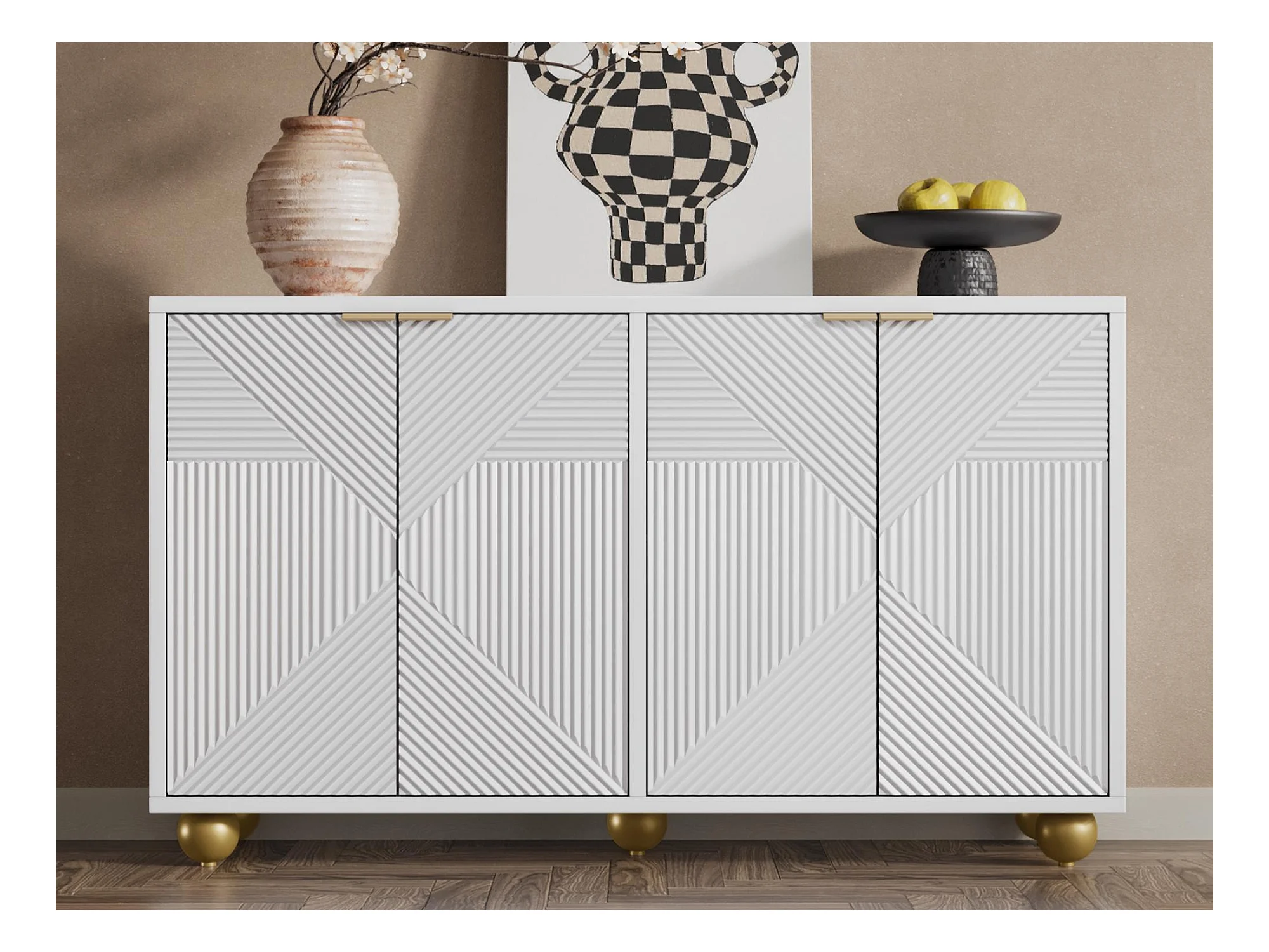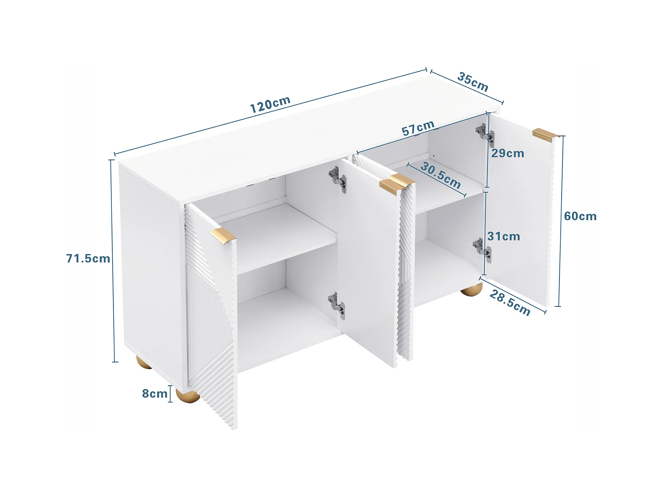 Buffet moderne - 2 portes avec étagères réglables - Blanc