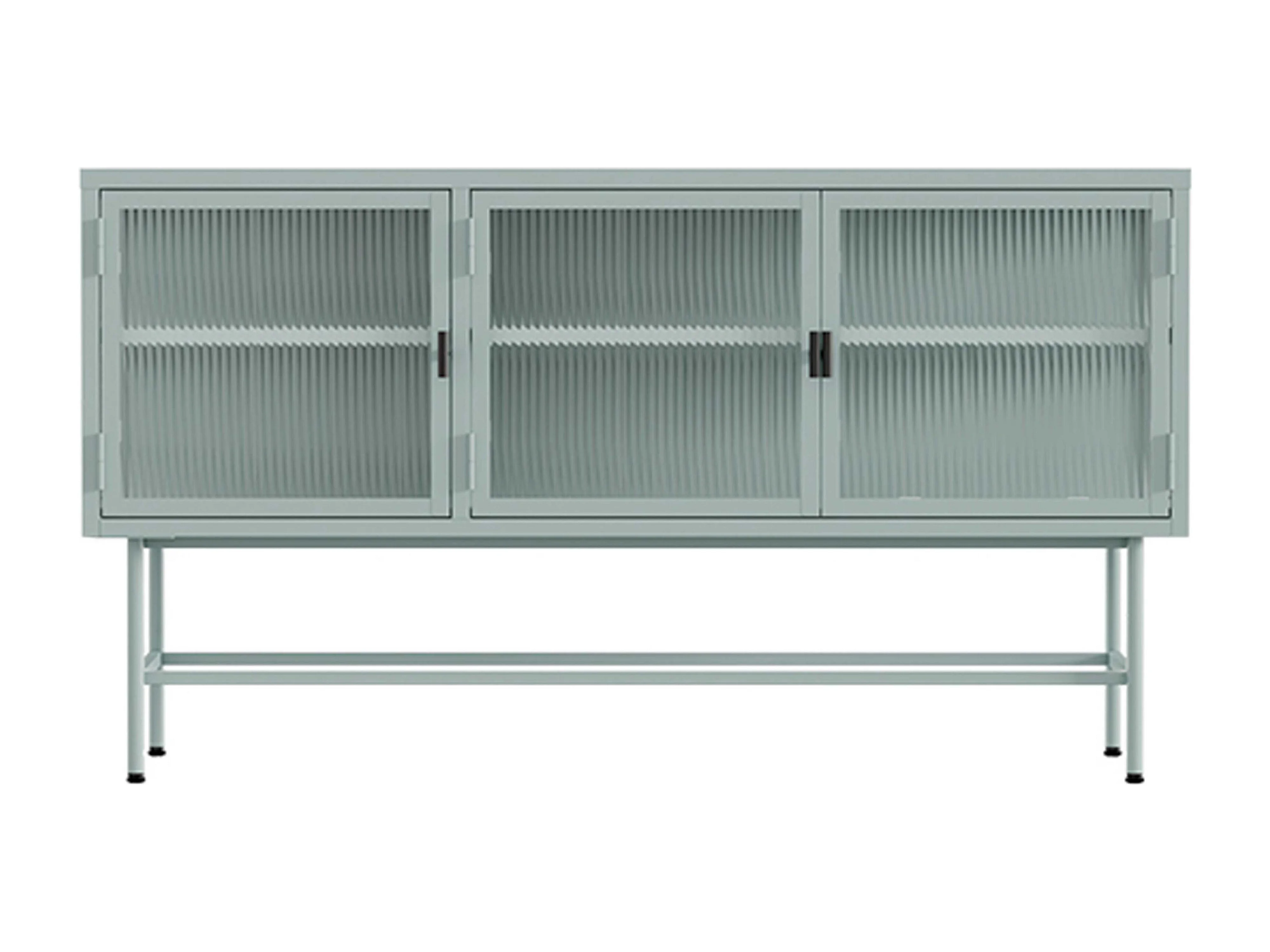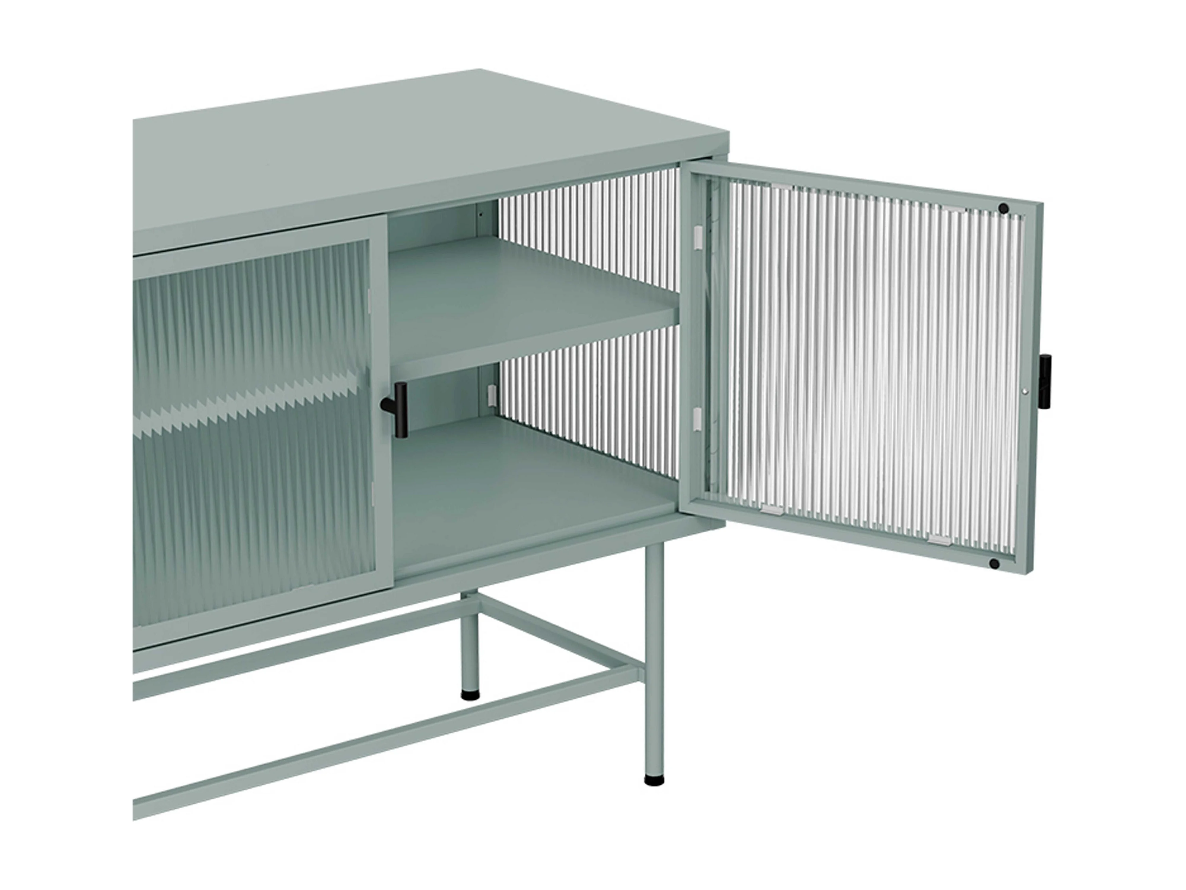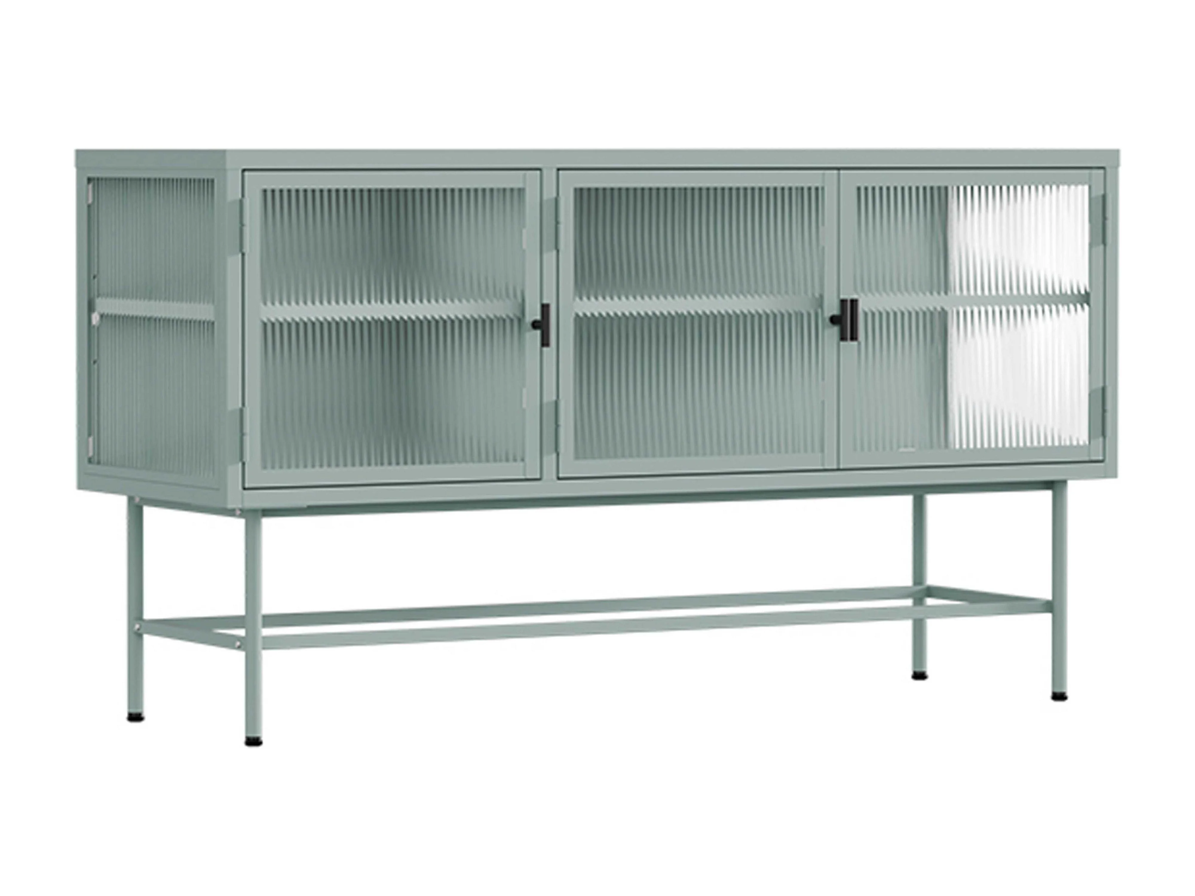 Buffet moderne 3 portes 120 cm en métal et verre vert sauge