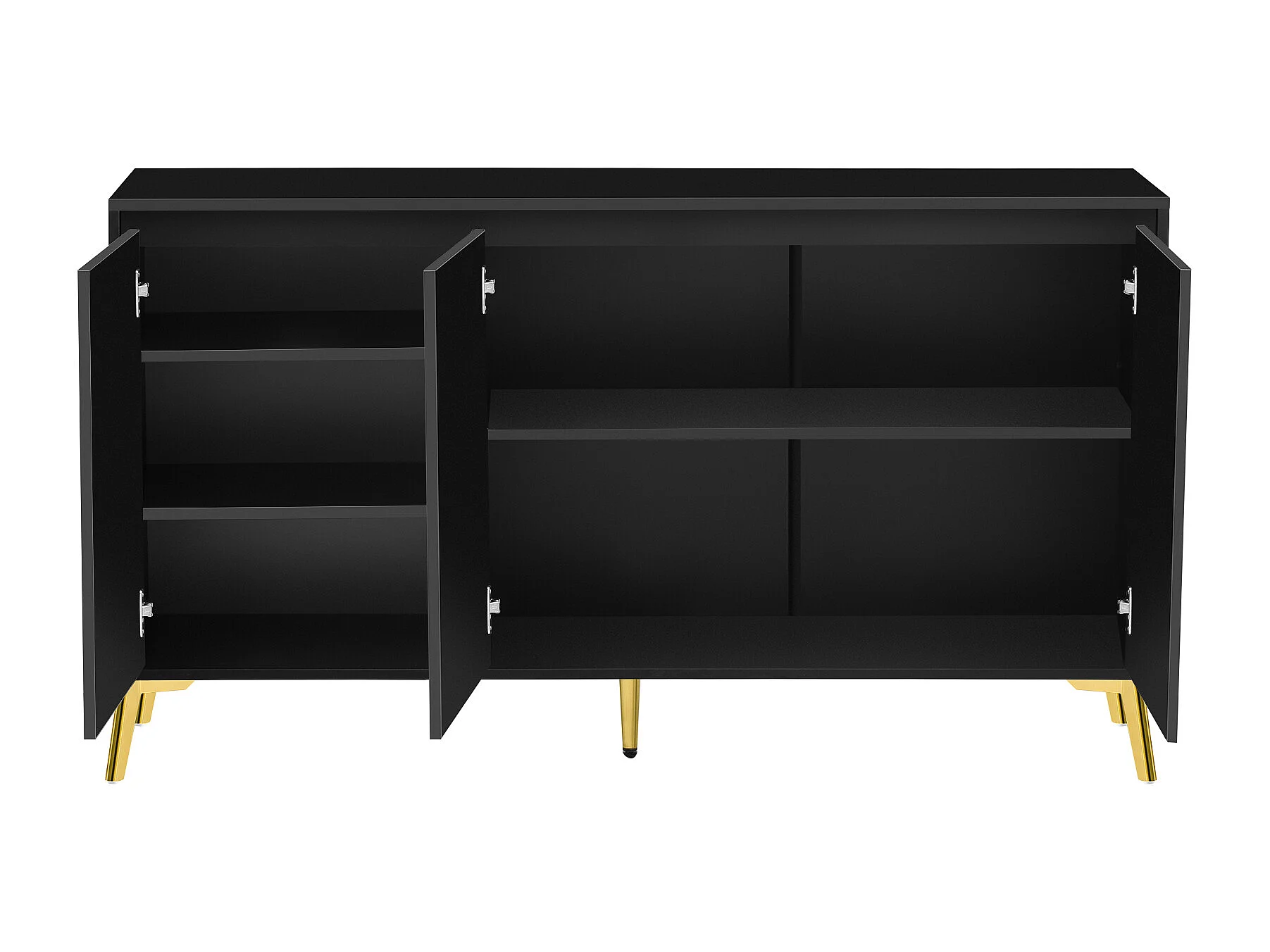 Buffet moderne 3 portes sans poignées avec ligne unique – Meuble élégant pour salle à manger, salon et cuisine – Noir