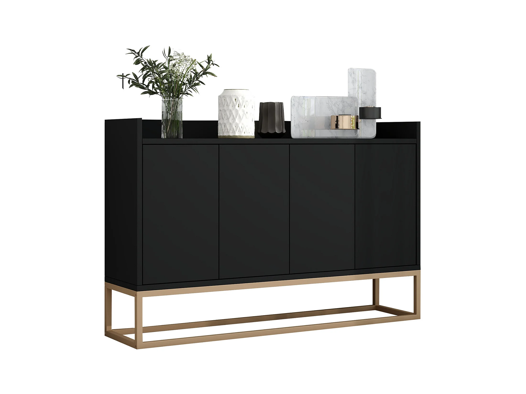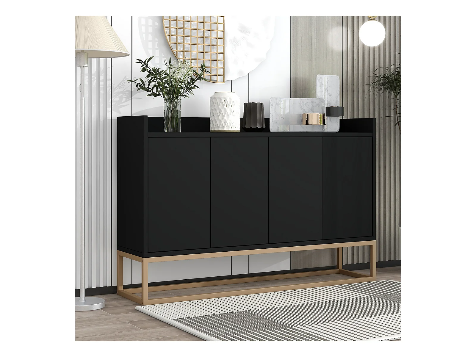 Buffet moderne 4 portes sans poignées – Design minimaliste noir, élégant et pratique pour salle à manger, salon et cuisine