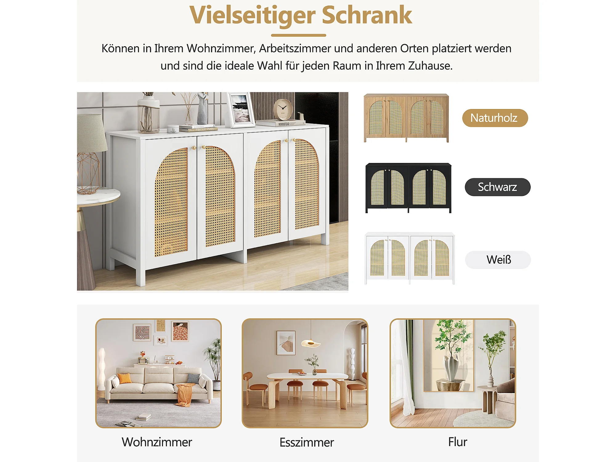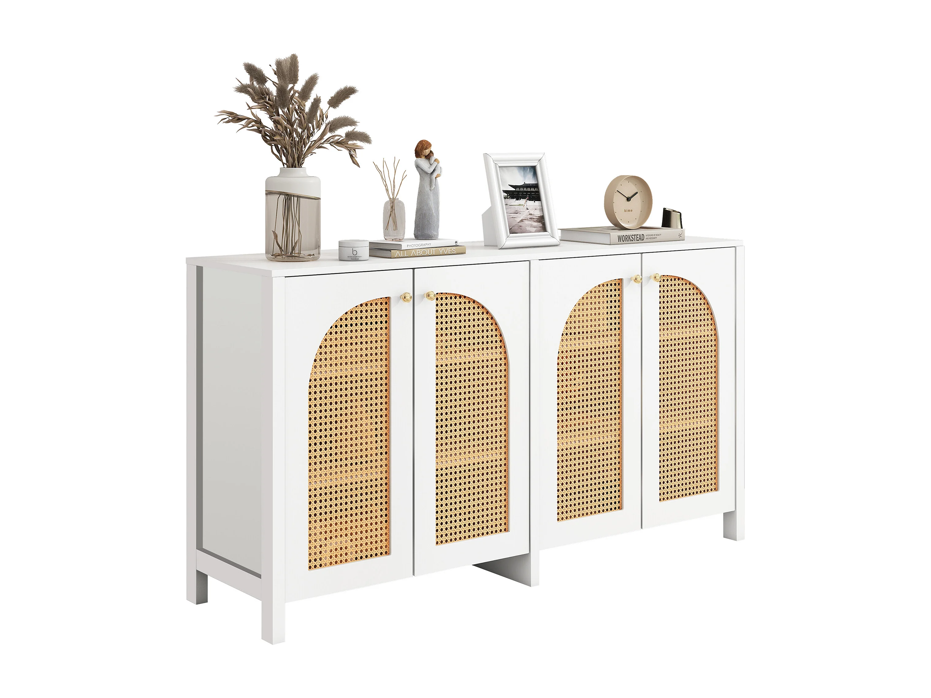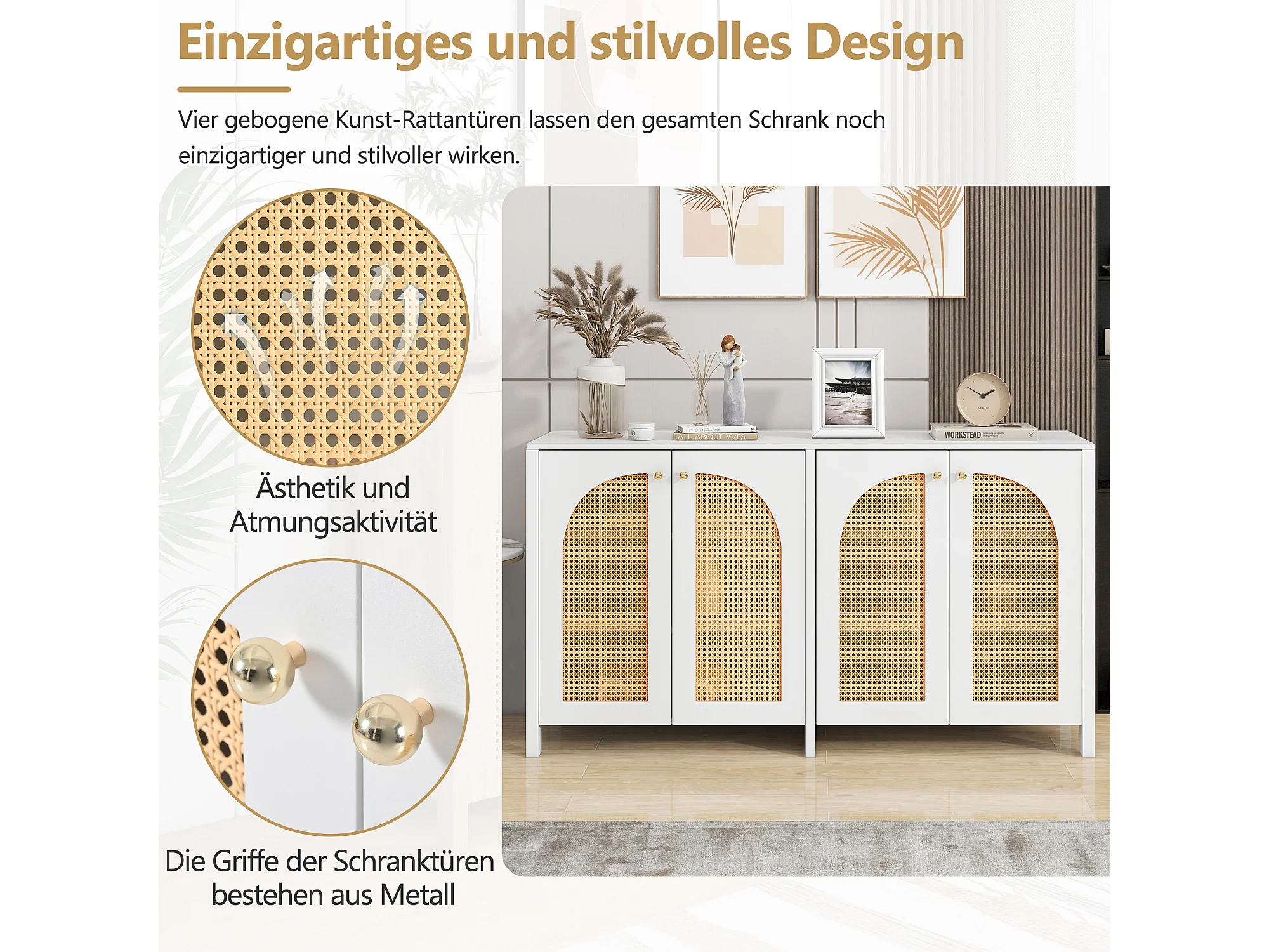 Buffet moderne à 4 portes, design épuré, MDF, blanc (145x80x40 cm)