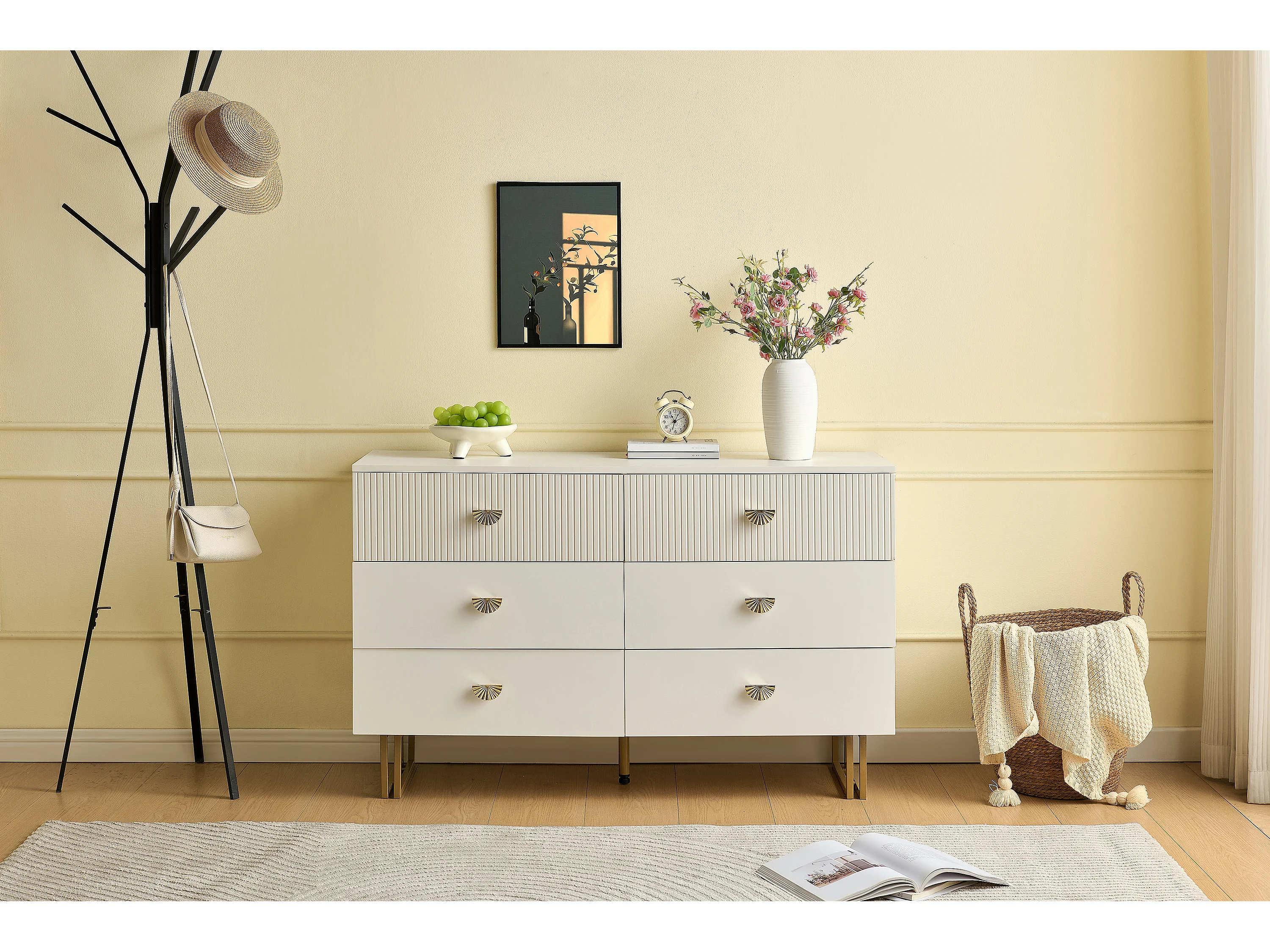 Buffet moderne avec 6 tiroirs aux accents blancs et dorés - 120 x 40 x 75 cm - pour chambres - MDF - blanc