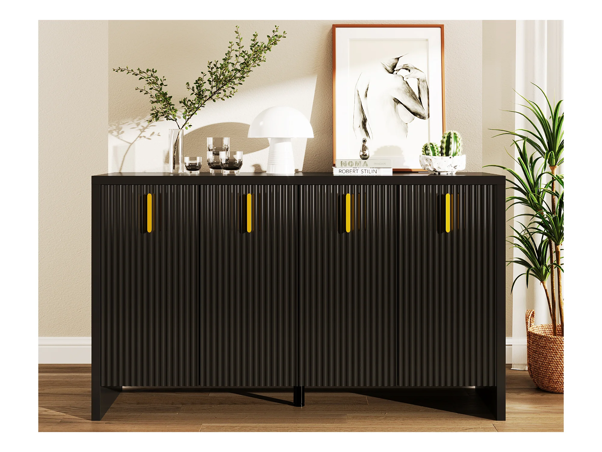 Buffet moderne - avec étagères réglables - poignées dorées - Noir