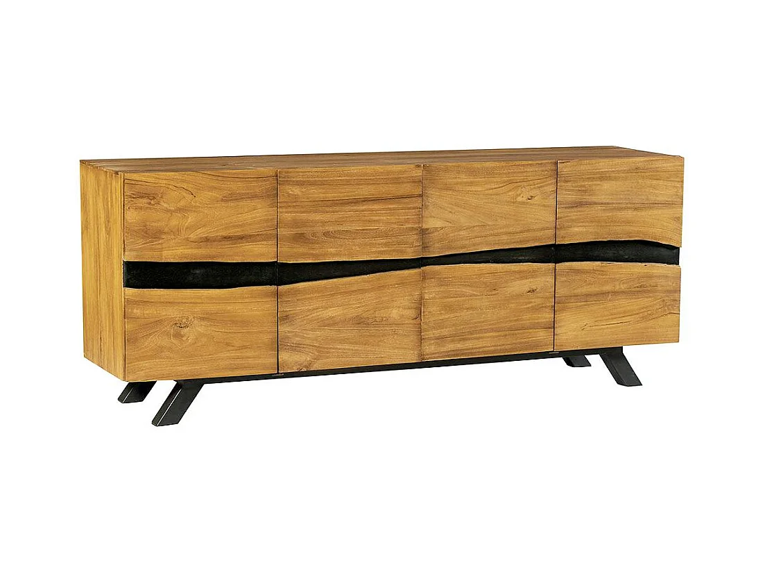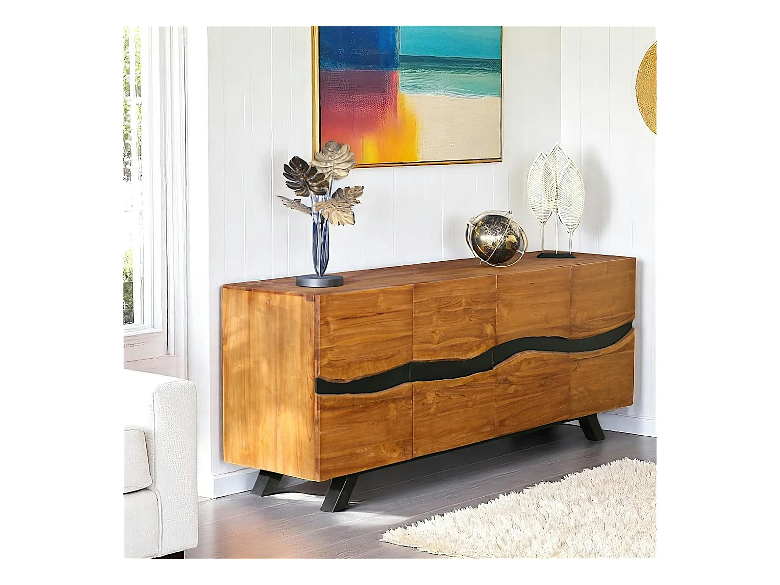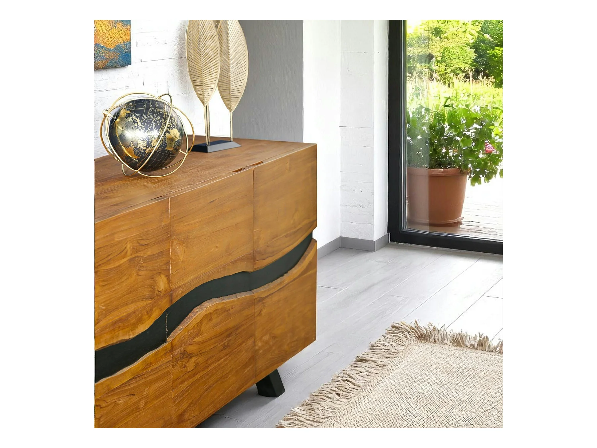 Buffet moderne bois recyclé teck laque noire 200 cm BARBADE
