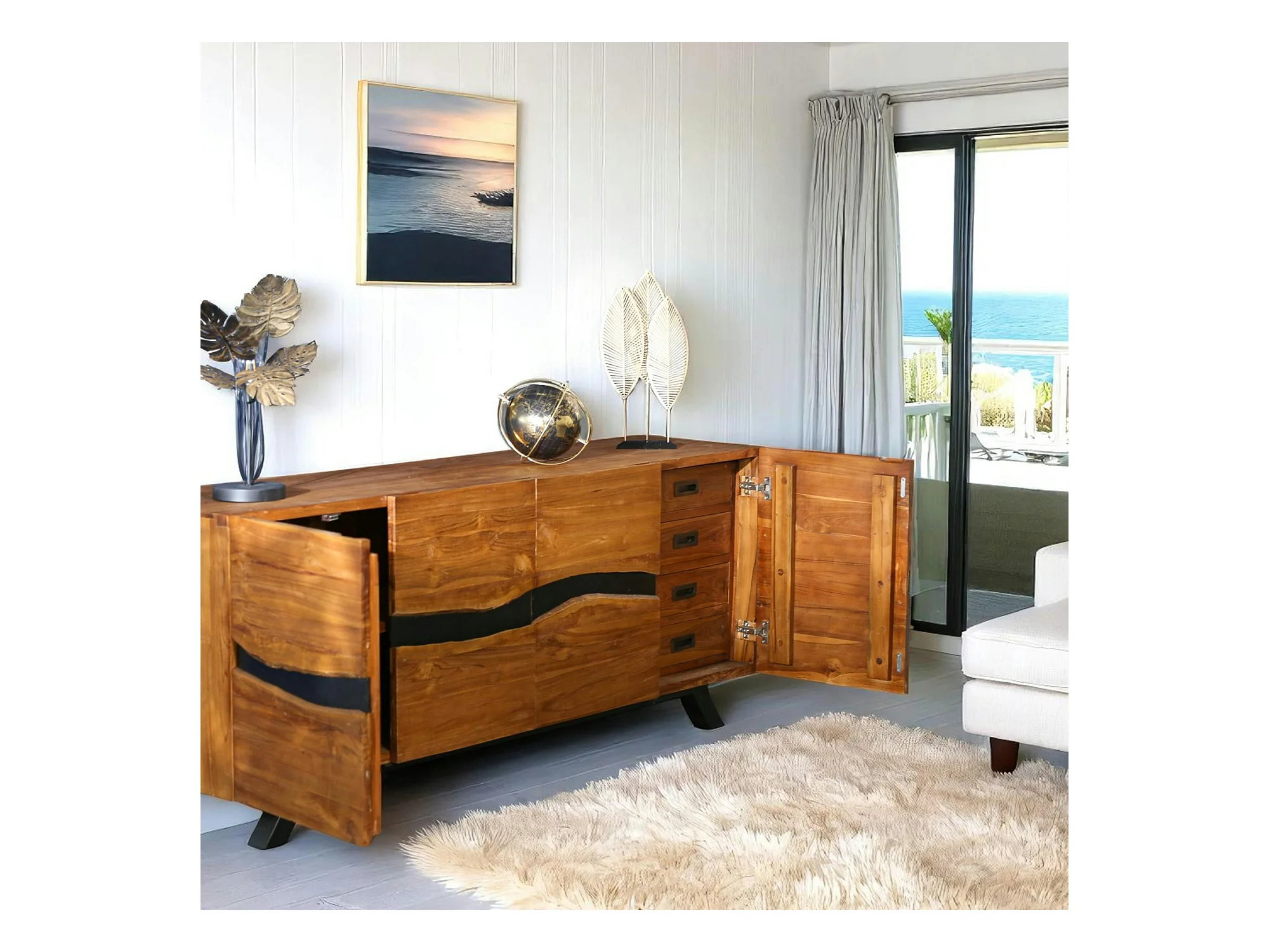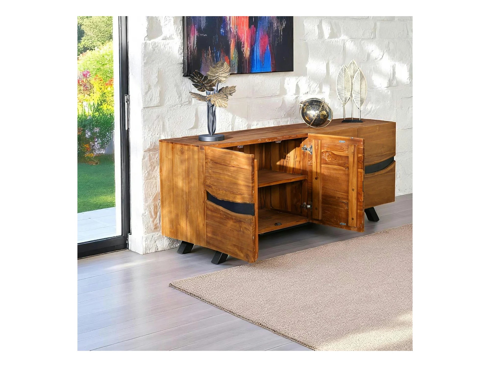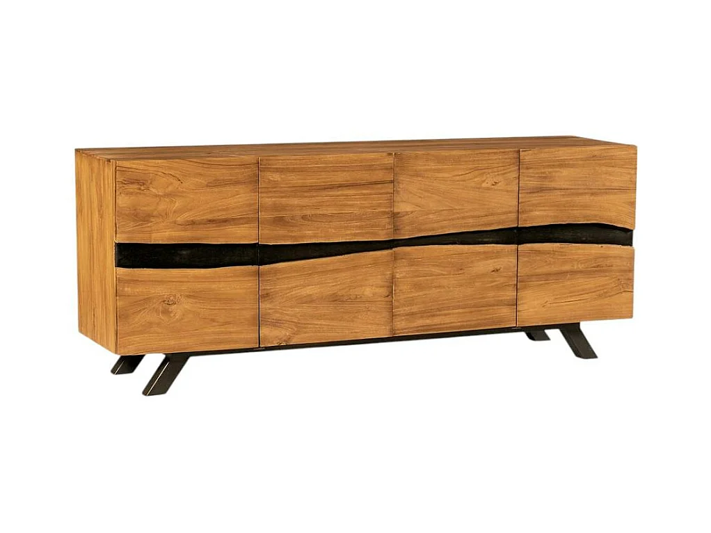 Buffet moderne bois recyclé teck laque noire 200 cm BARBADE