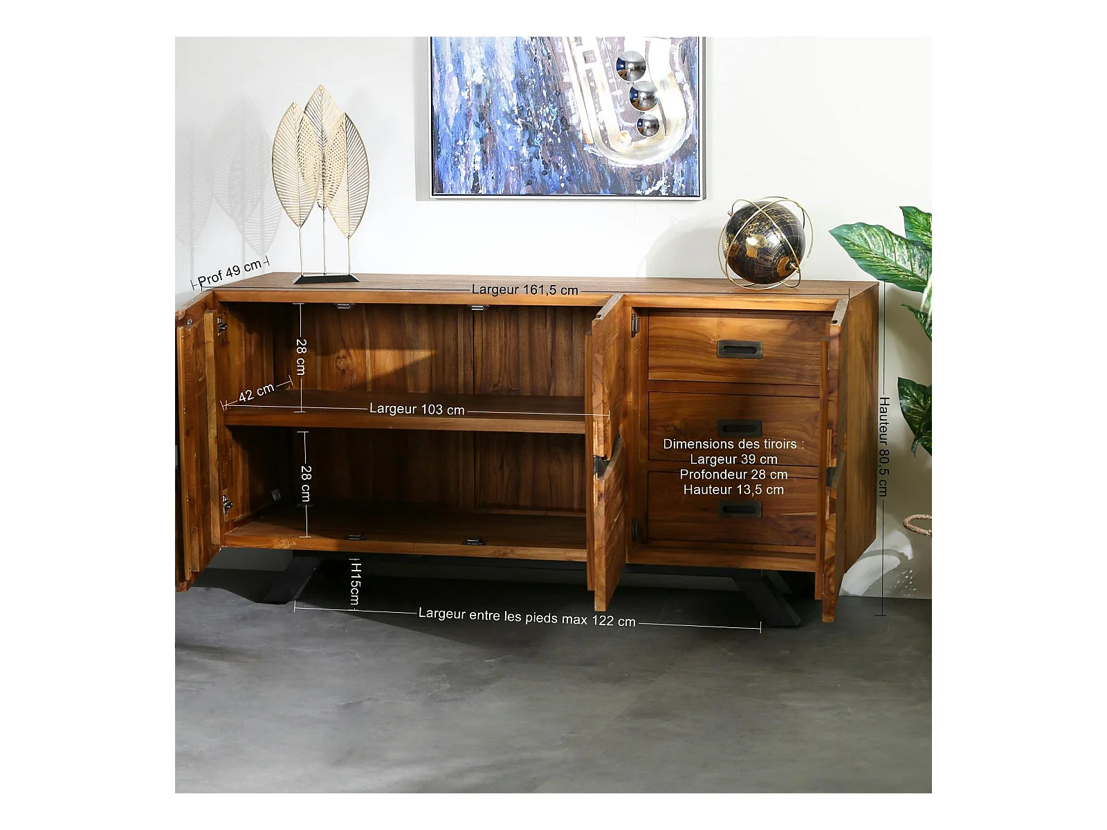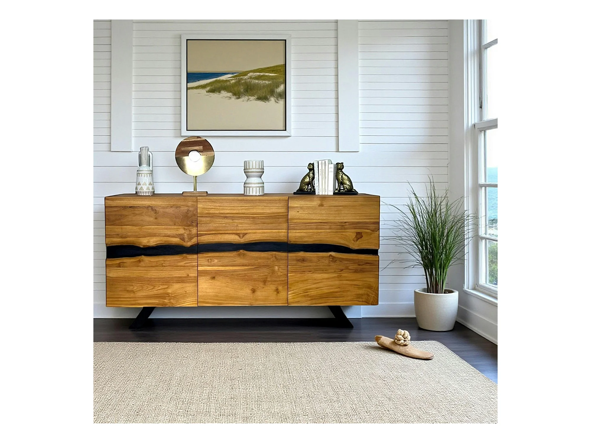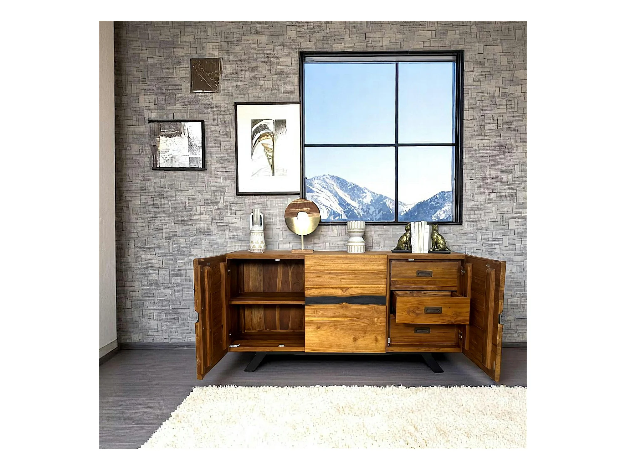 Buffet moderne bois recyclé teck laque noire BARBADE