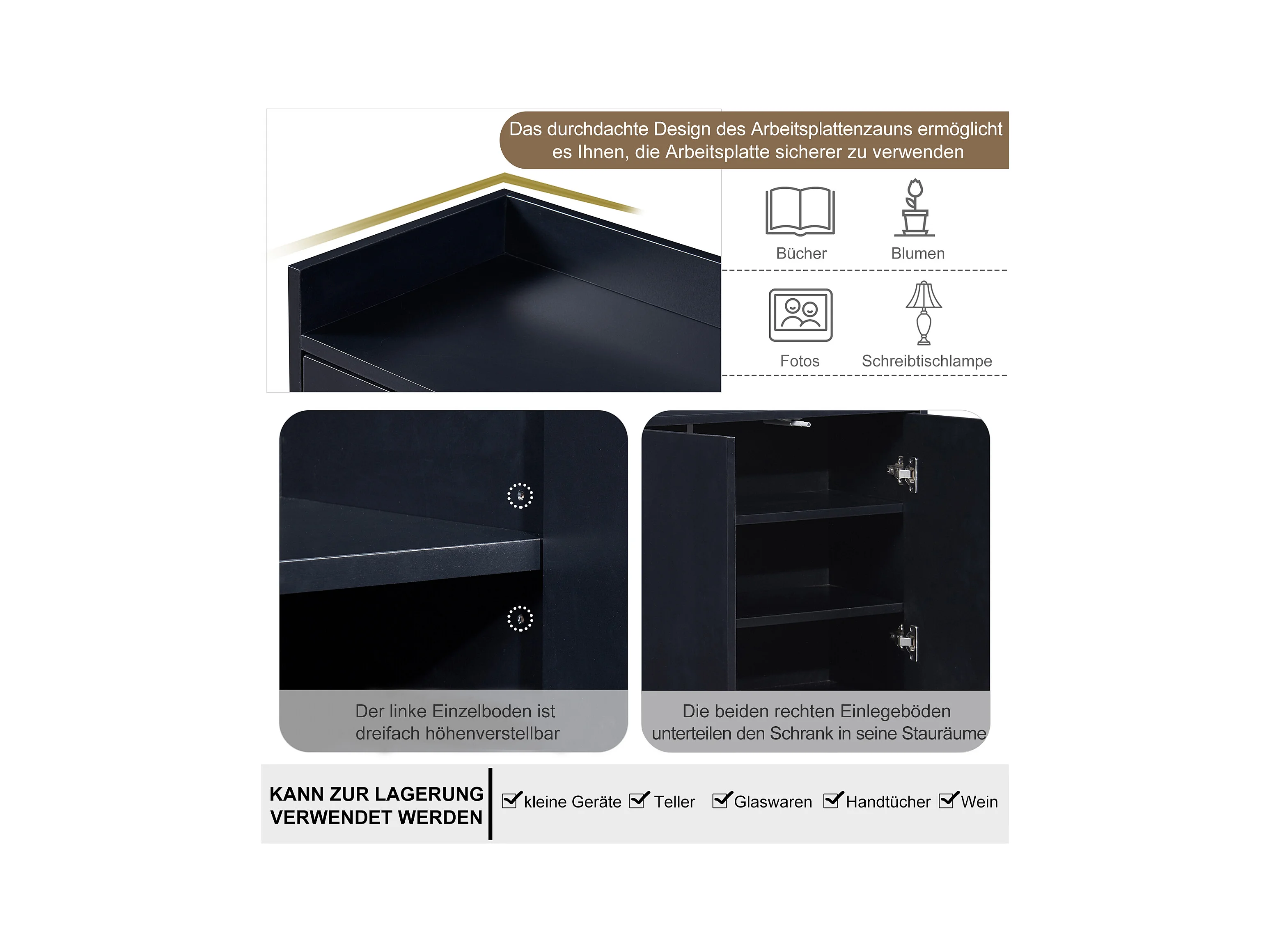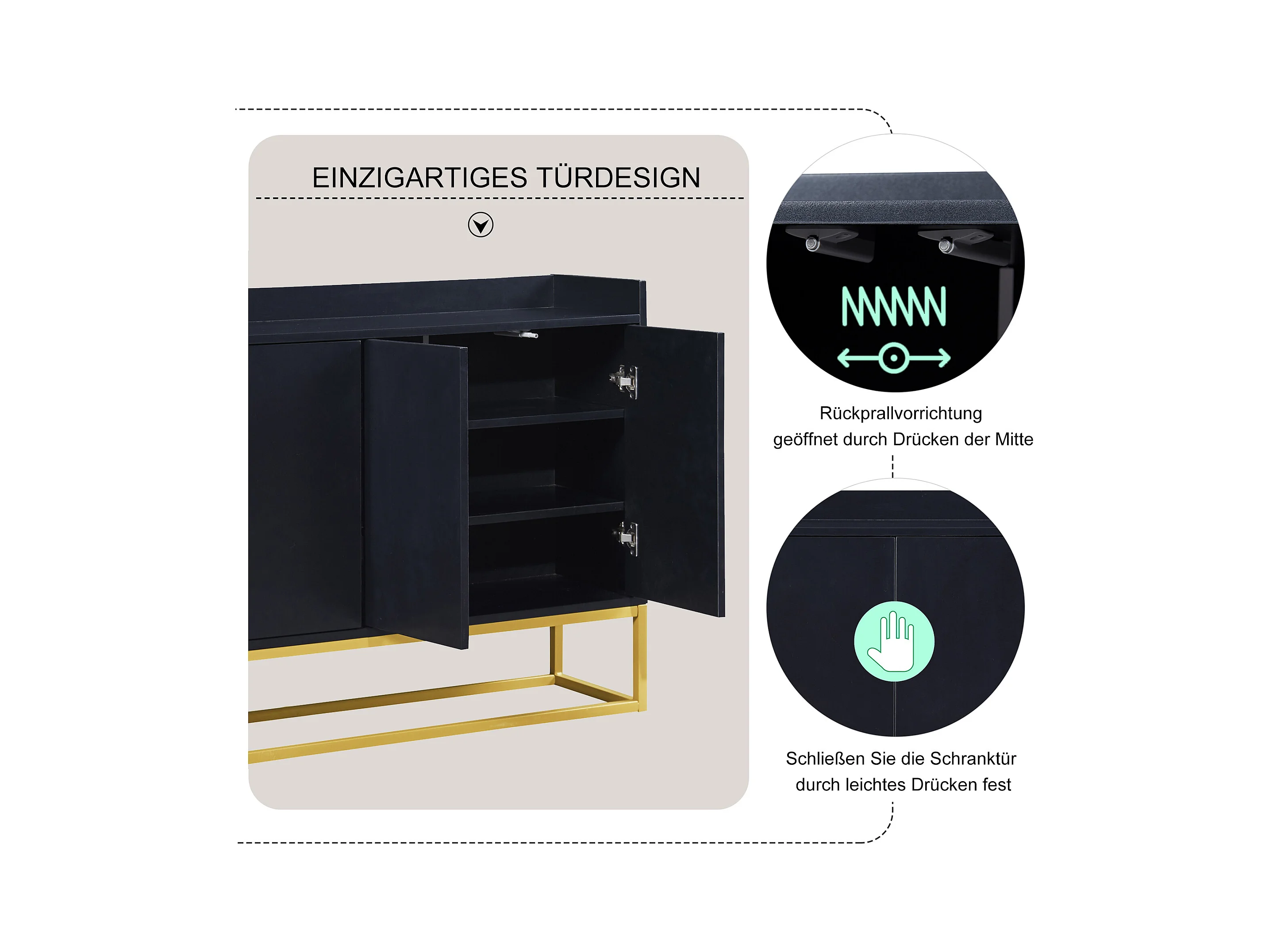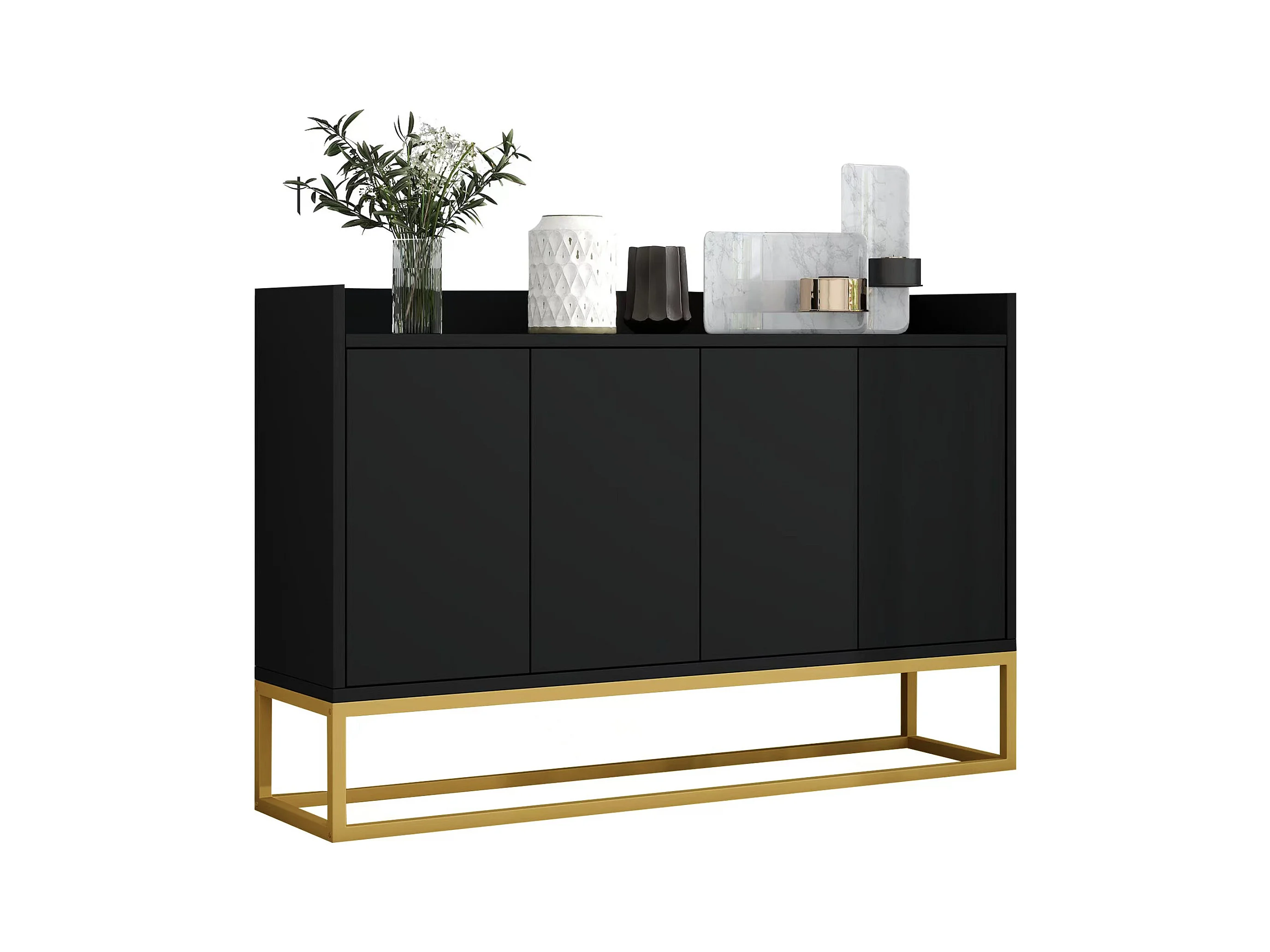Buffet moderne minimaliste à 4 portes, sans poignées, pour salle à manger, salon, cuisine, MDF, noir (120x30x80 cm)