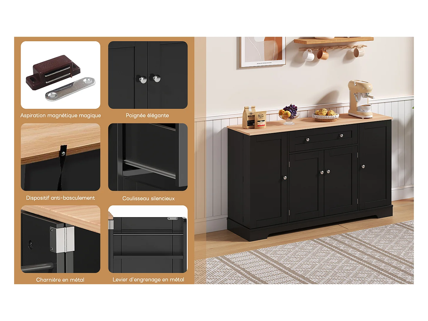 Buffet multifonction avec tiroir, portes et étagères réglables – Design moderne avec protection anti-basculement, idéal cuisine, salon