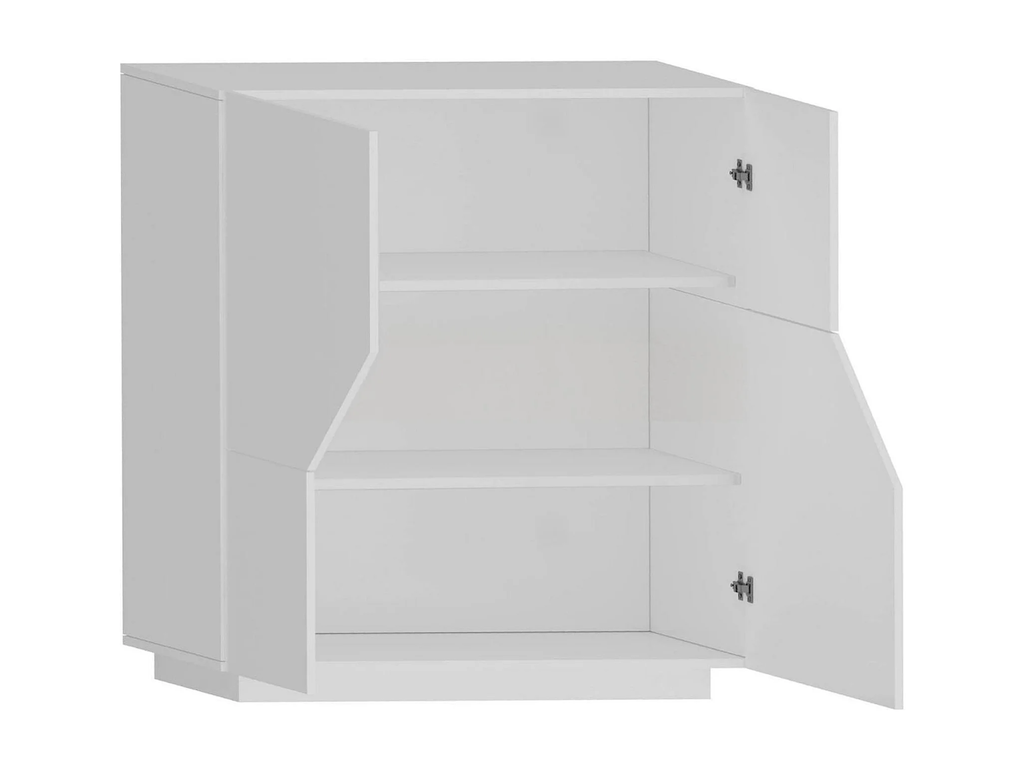 Buffet Nathan, Buffet de cuisine 2 portes, Buffet de salon, 100% Made in Italy, 100x43h106 cm, Blanc brillant