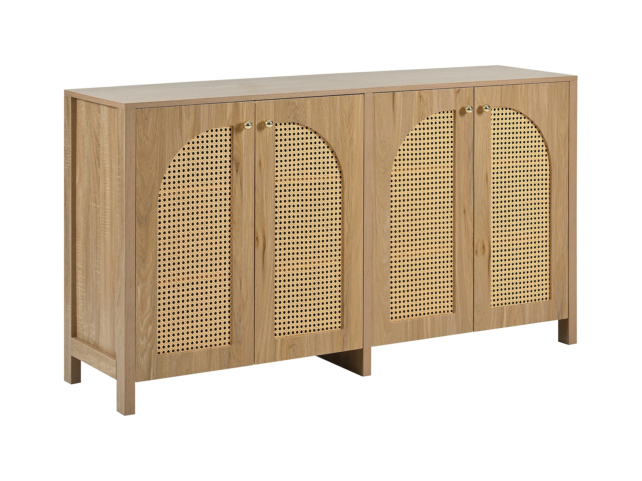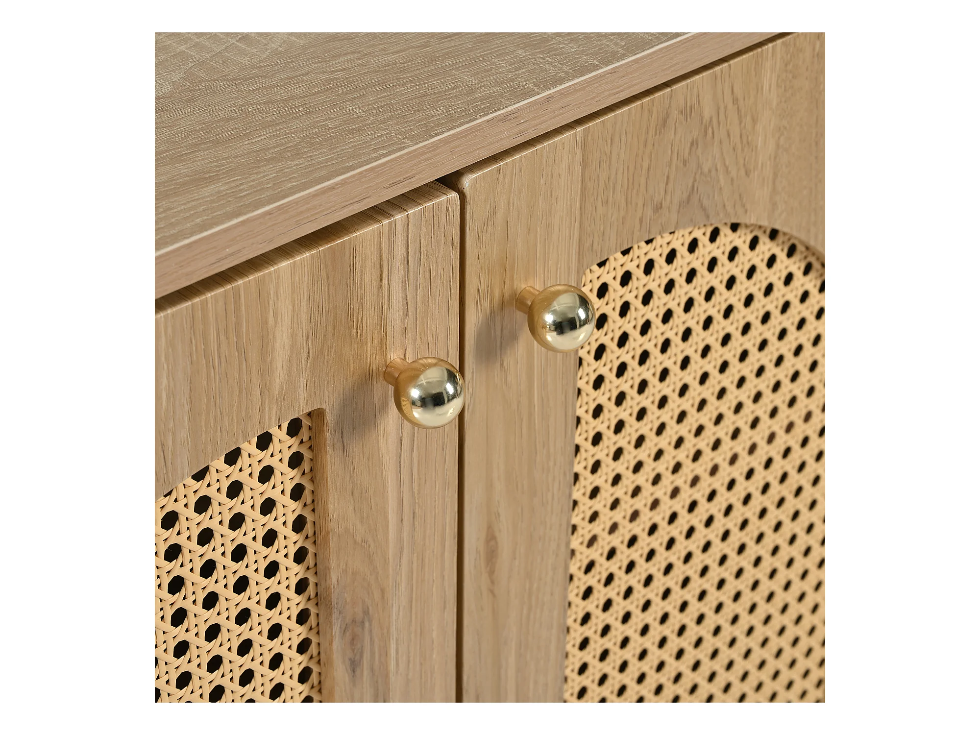 Buffet naturel - Buffet avec 4 portes en rotin et poignées en métal - pour salle à manger et salon