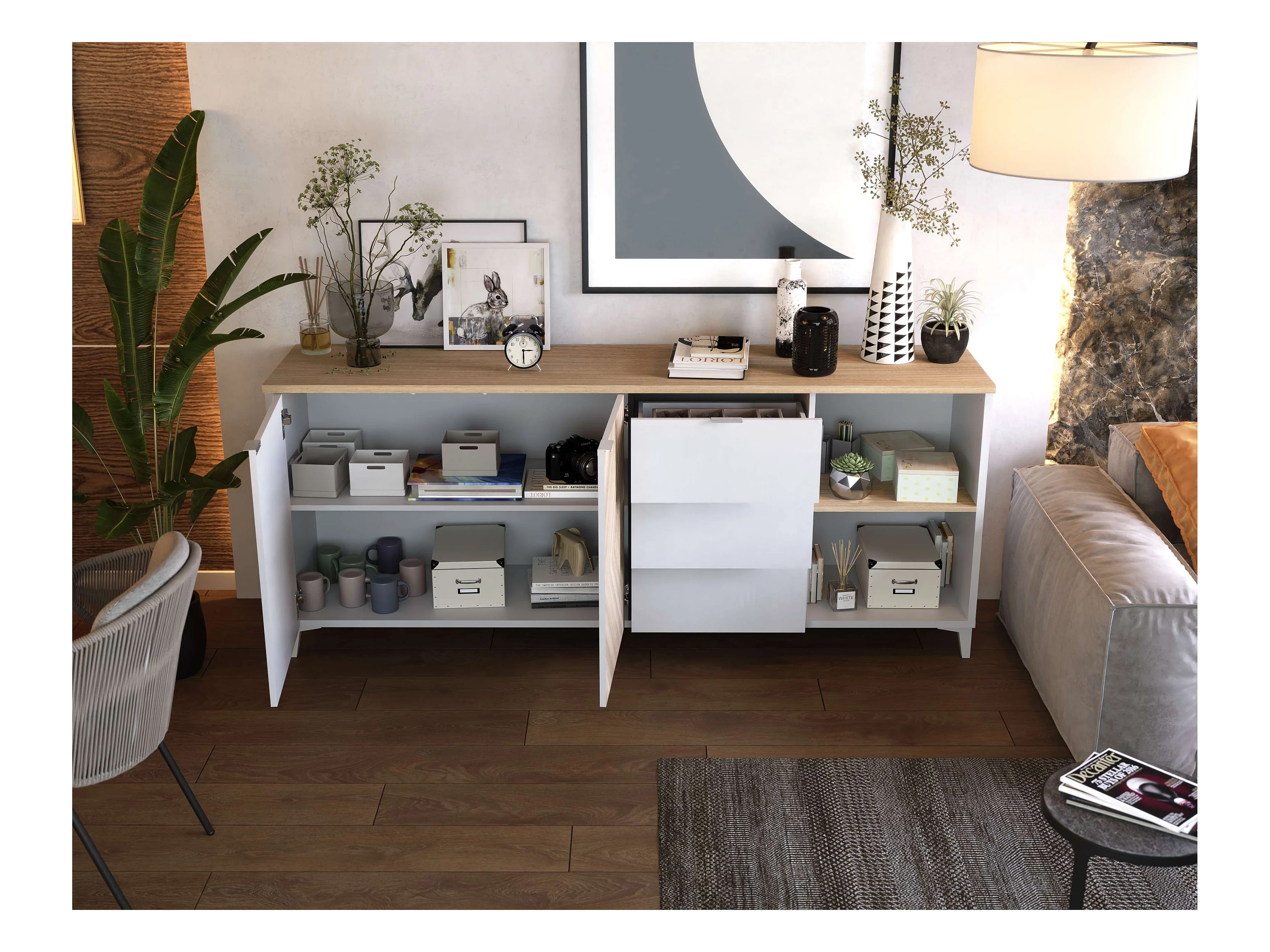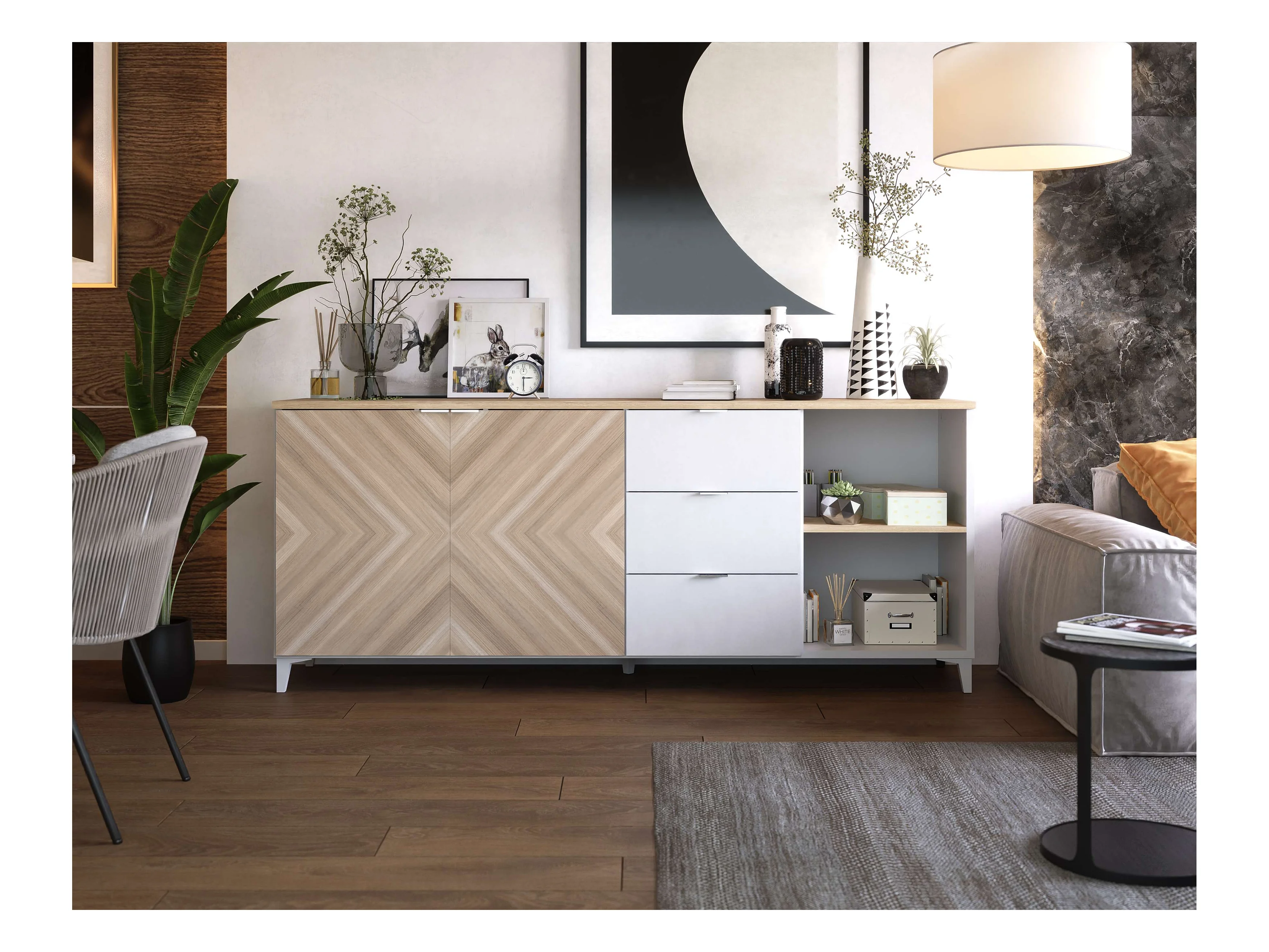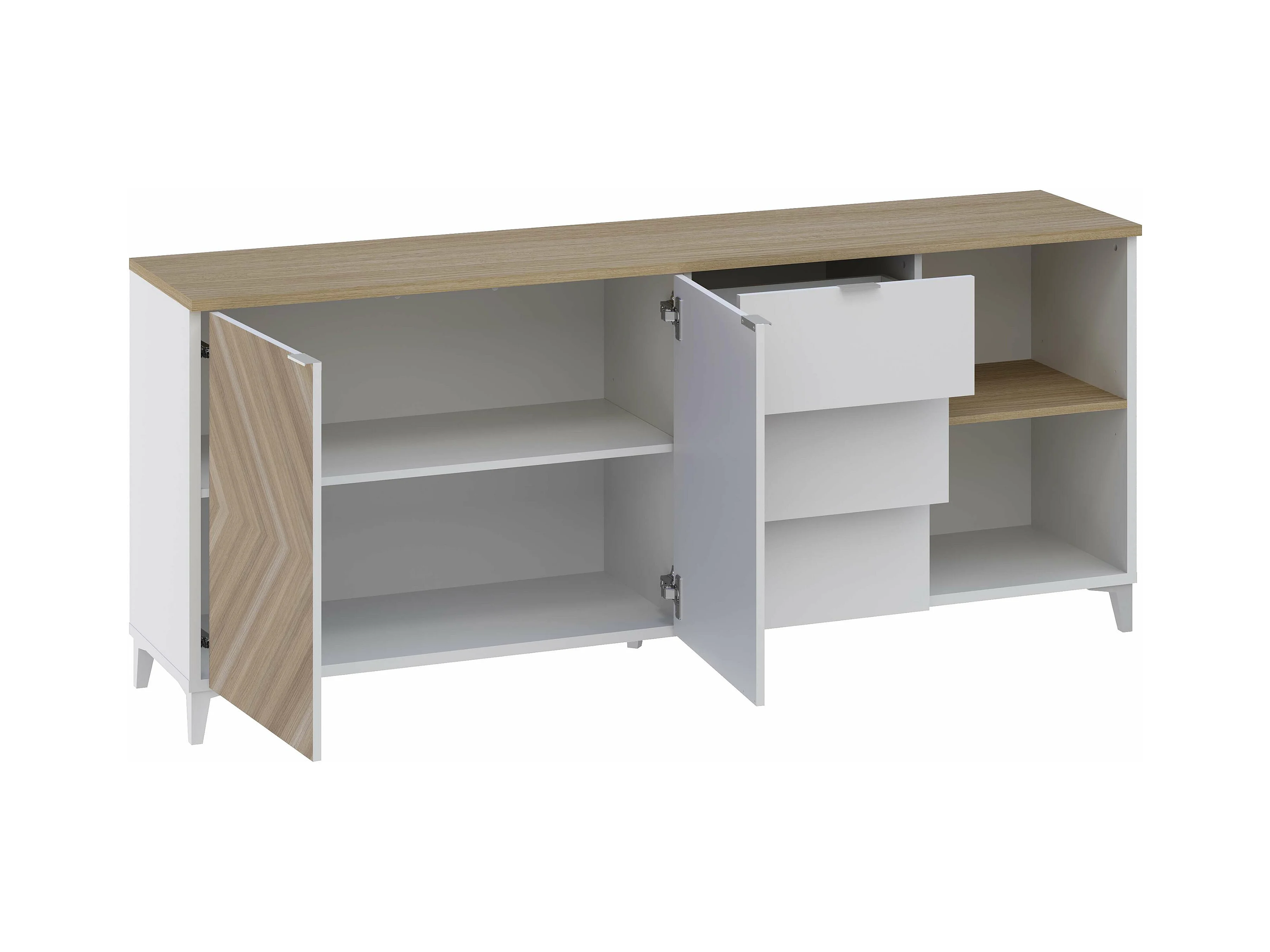 Buffet Neo 2 portes 3 tiroirs 83,5x180x44 cm noir et chêne TALESA