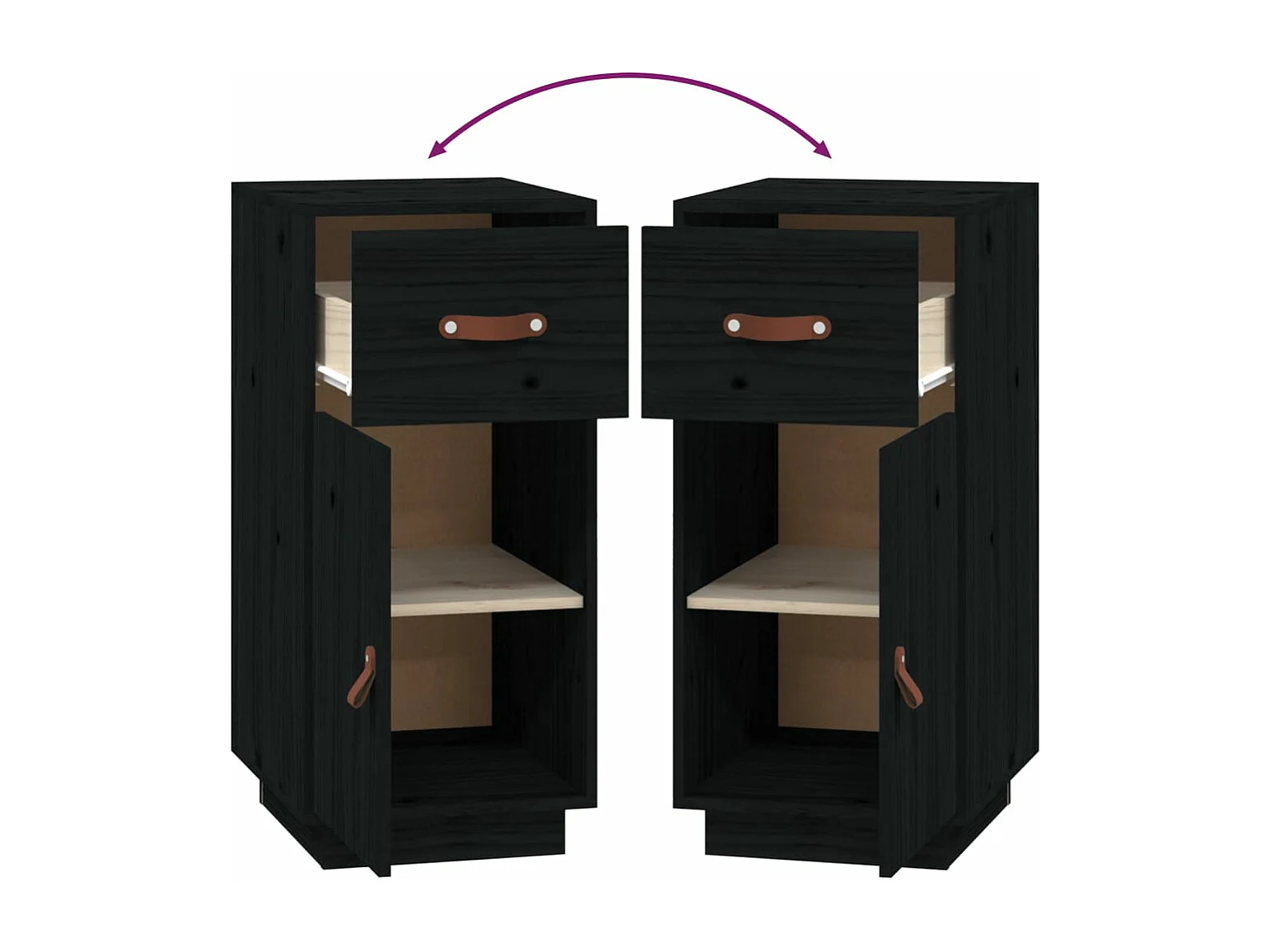 Buffet Noir 34x40x75 cm Bois massif de pin
