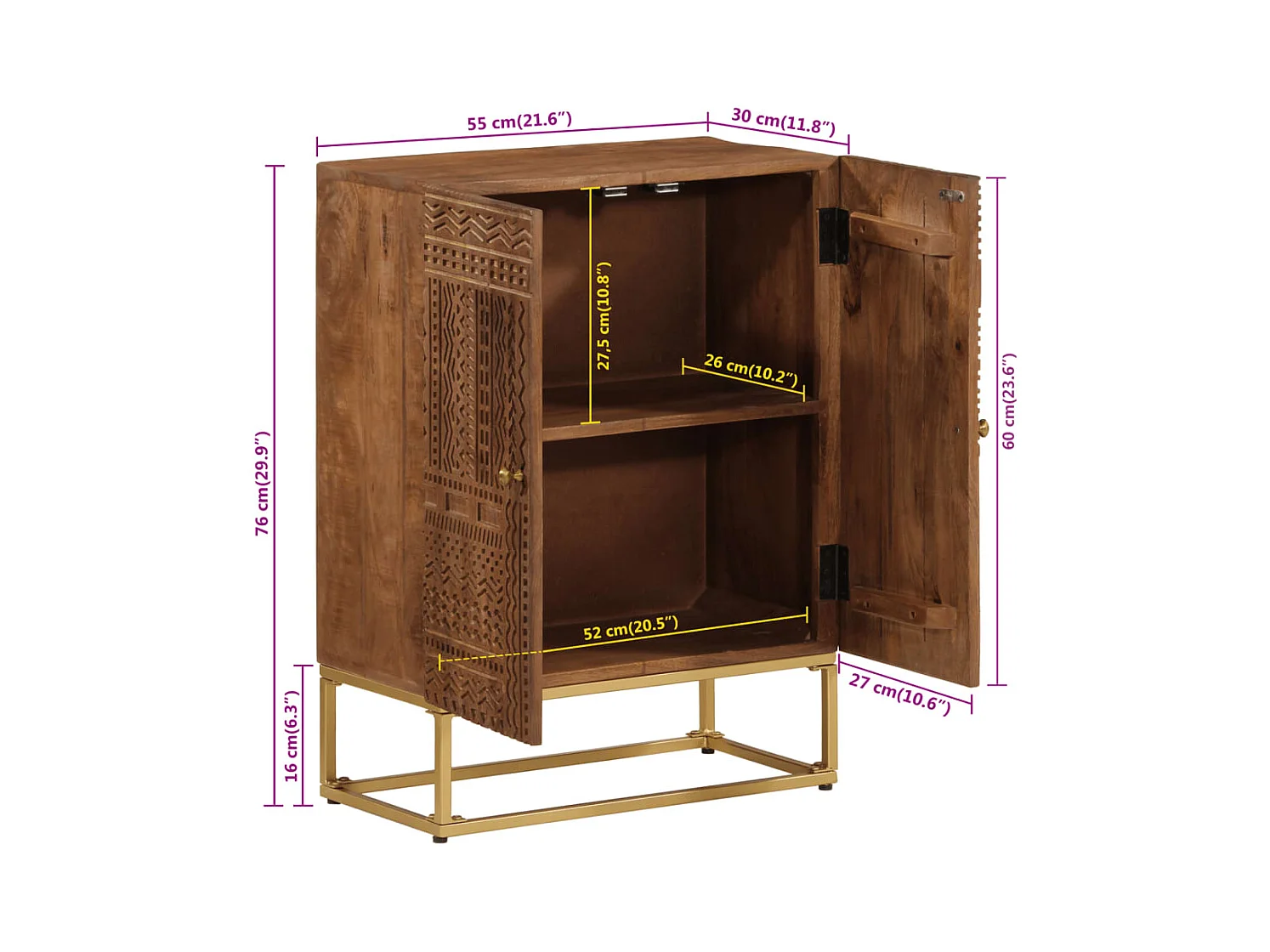 Buffet noir 55x30x76 bois massif de manguier et fer