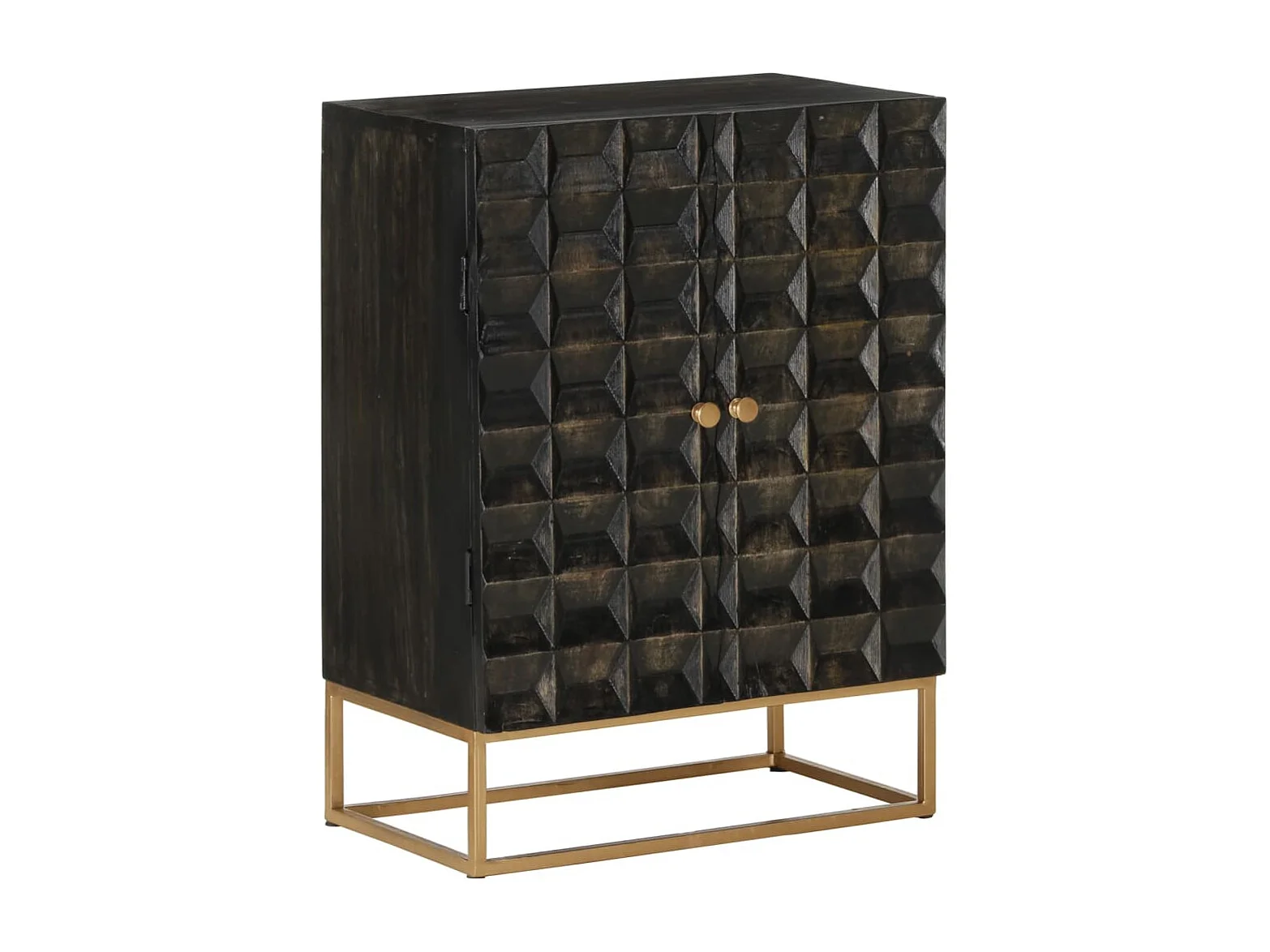 Buffet Noir 55x34x75 Bois massif de manguier et fer