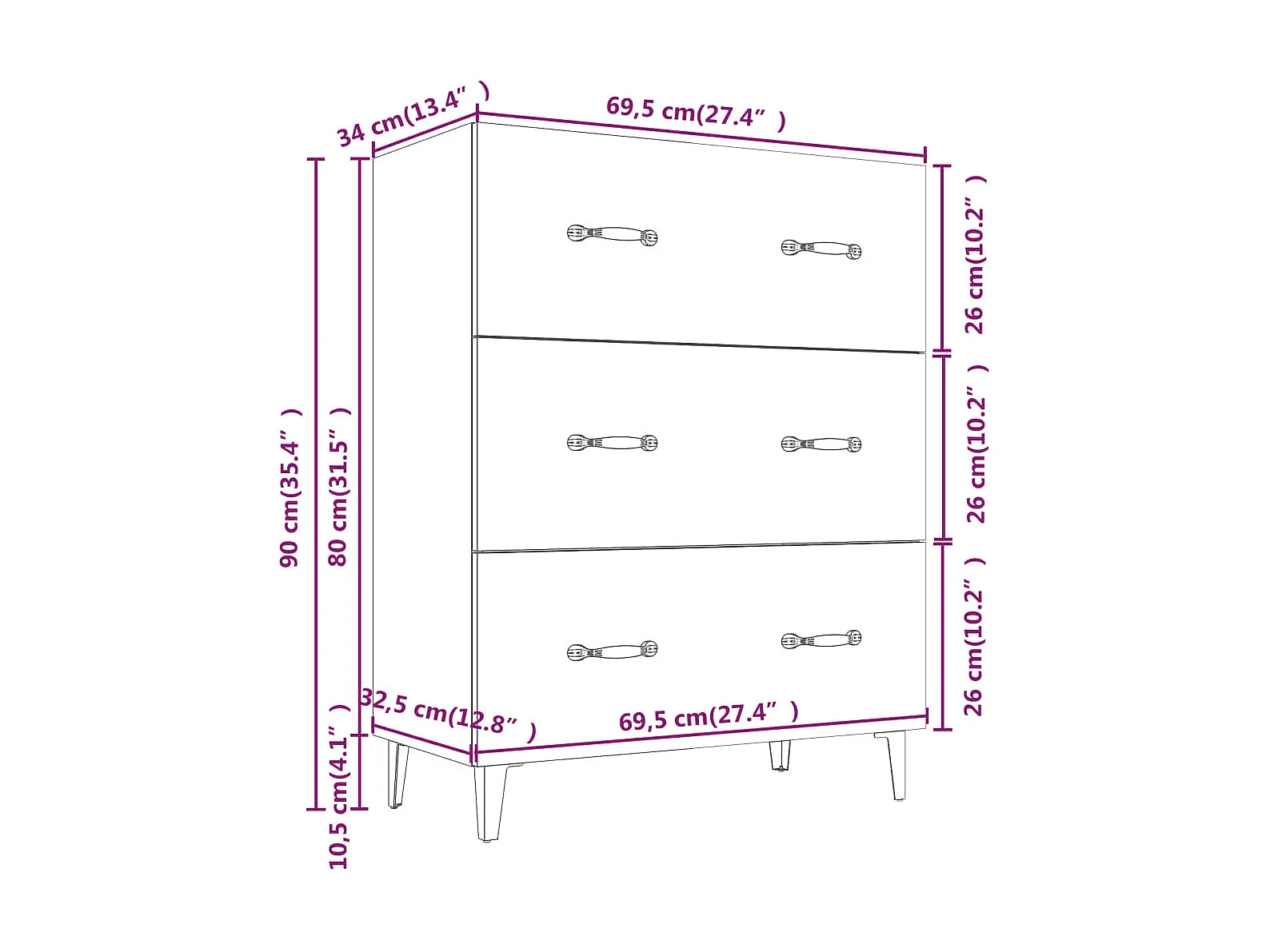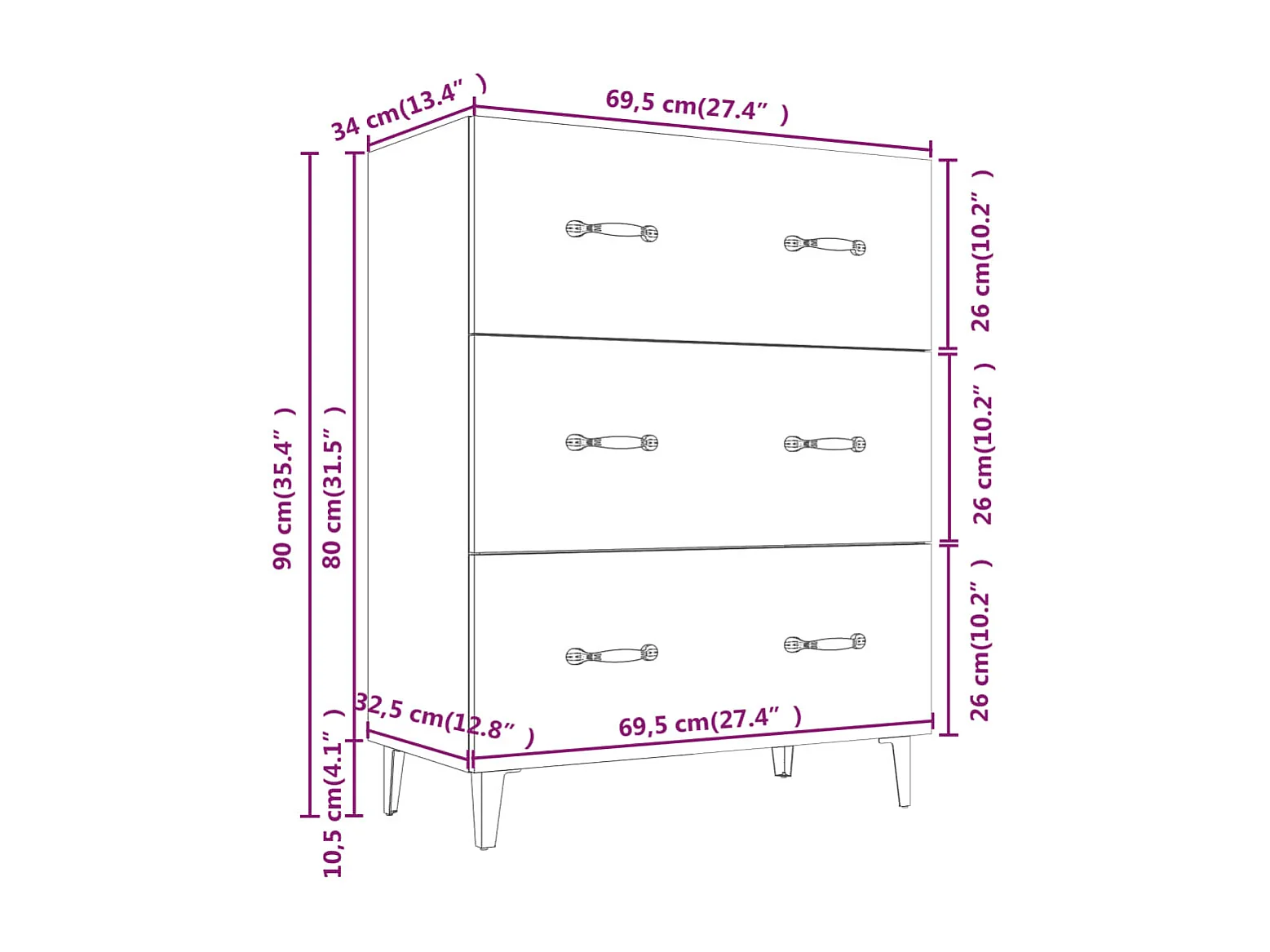 Buffet Noir 69,5x34x90 cm Bois d'ingénierie