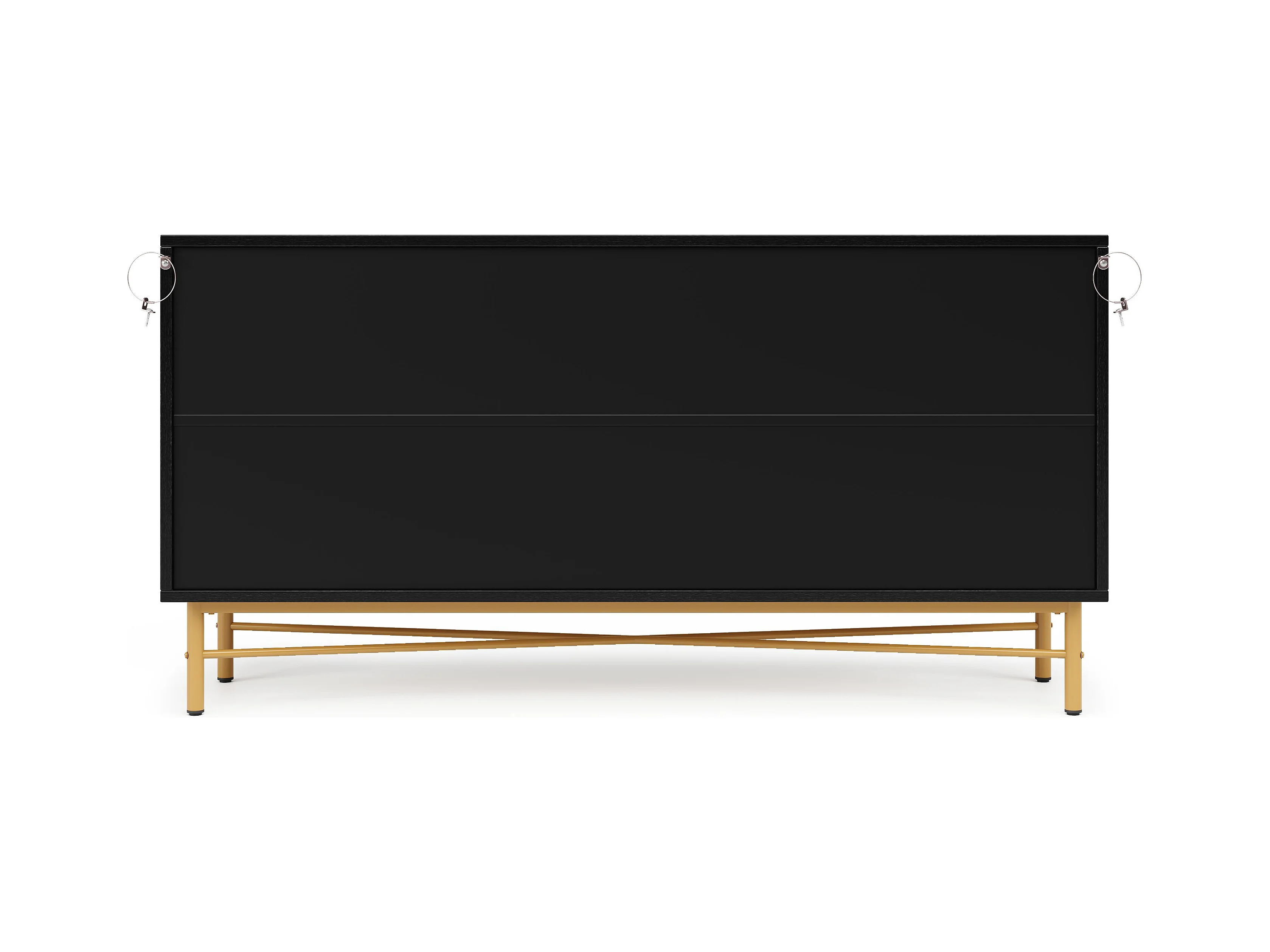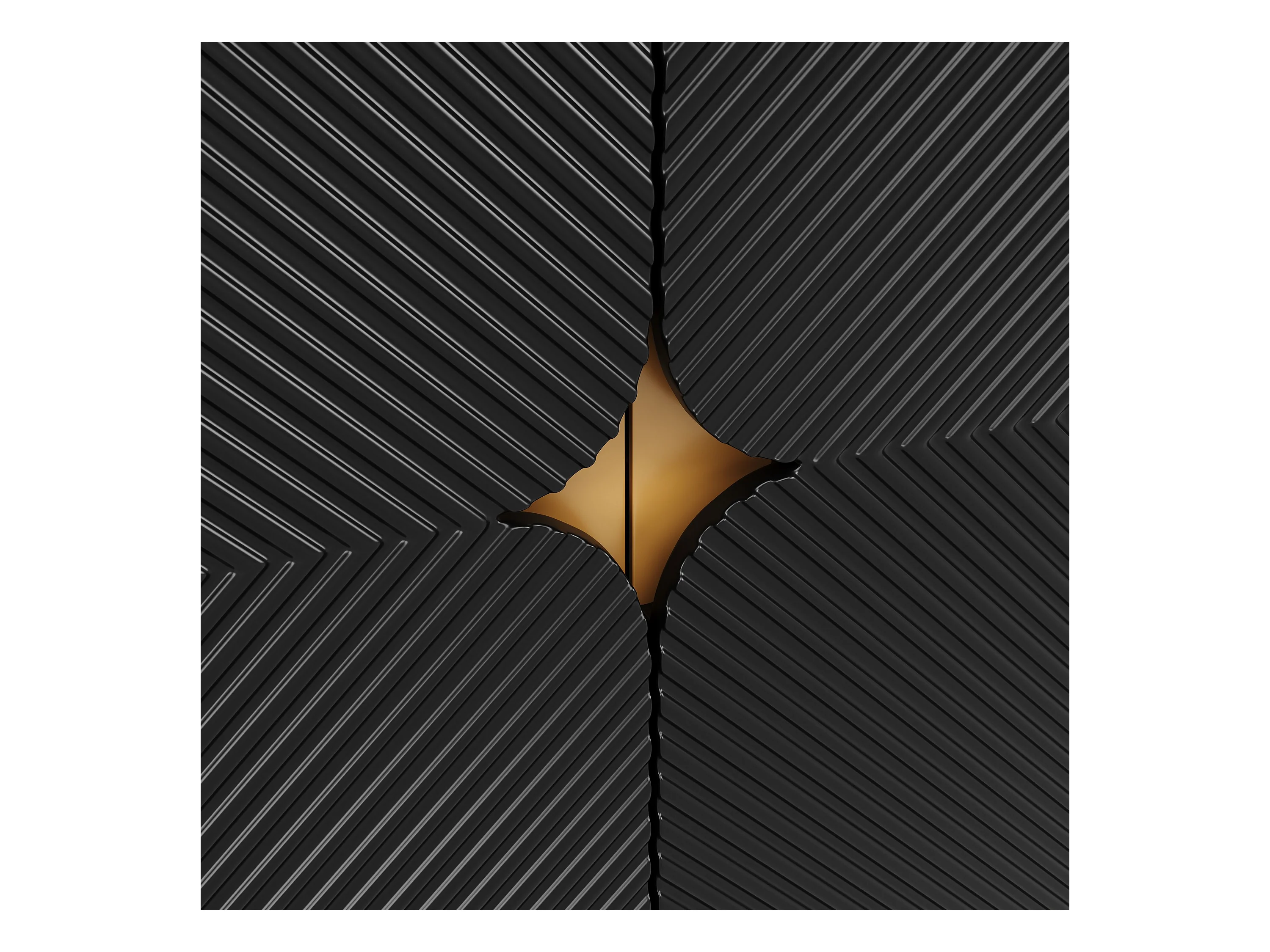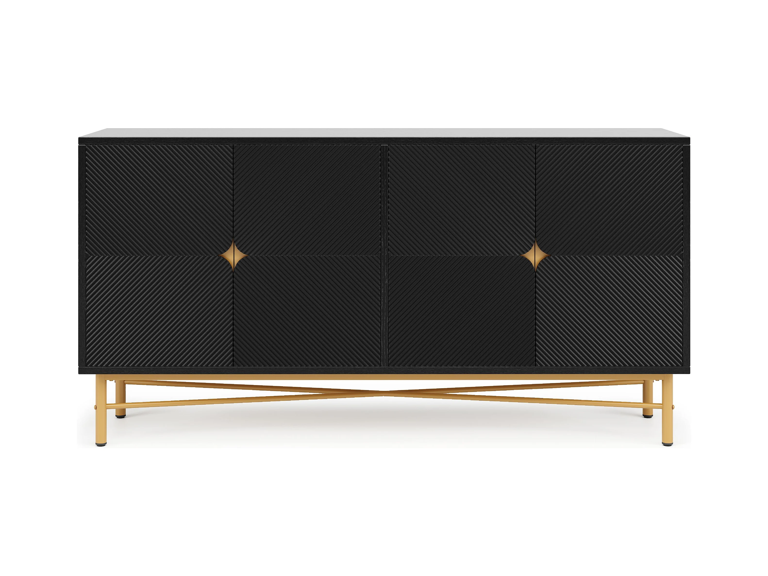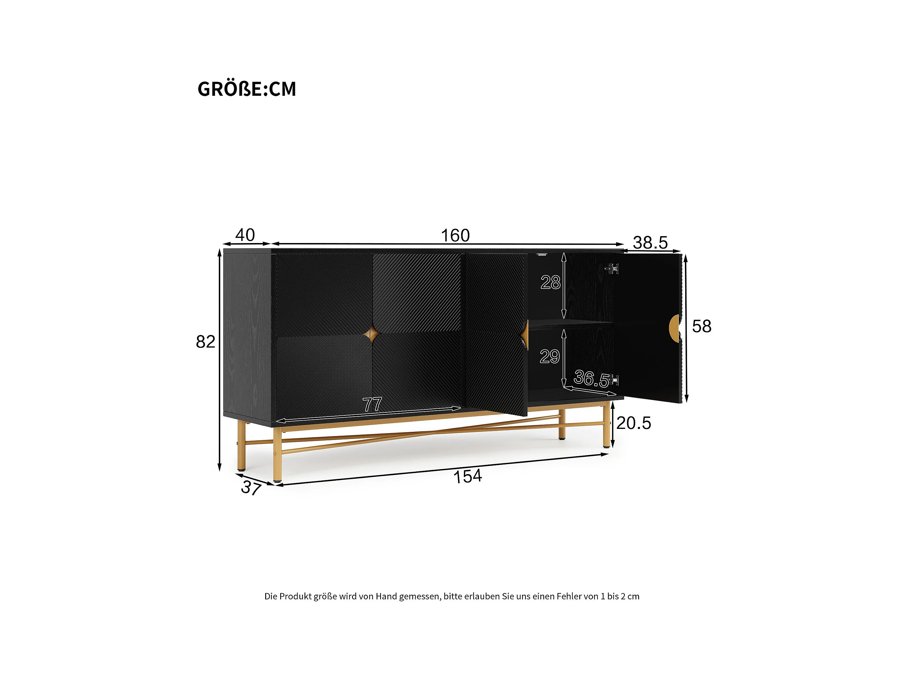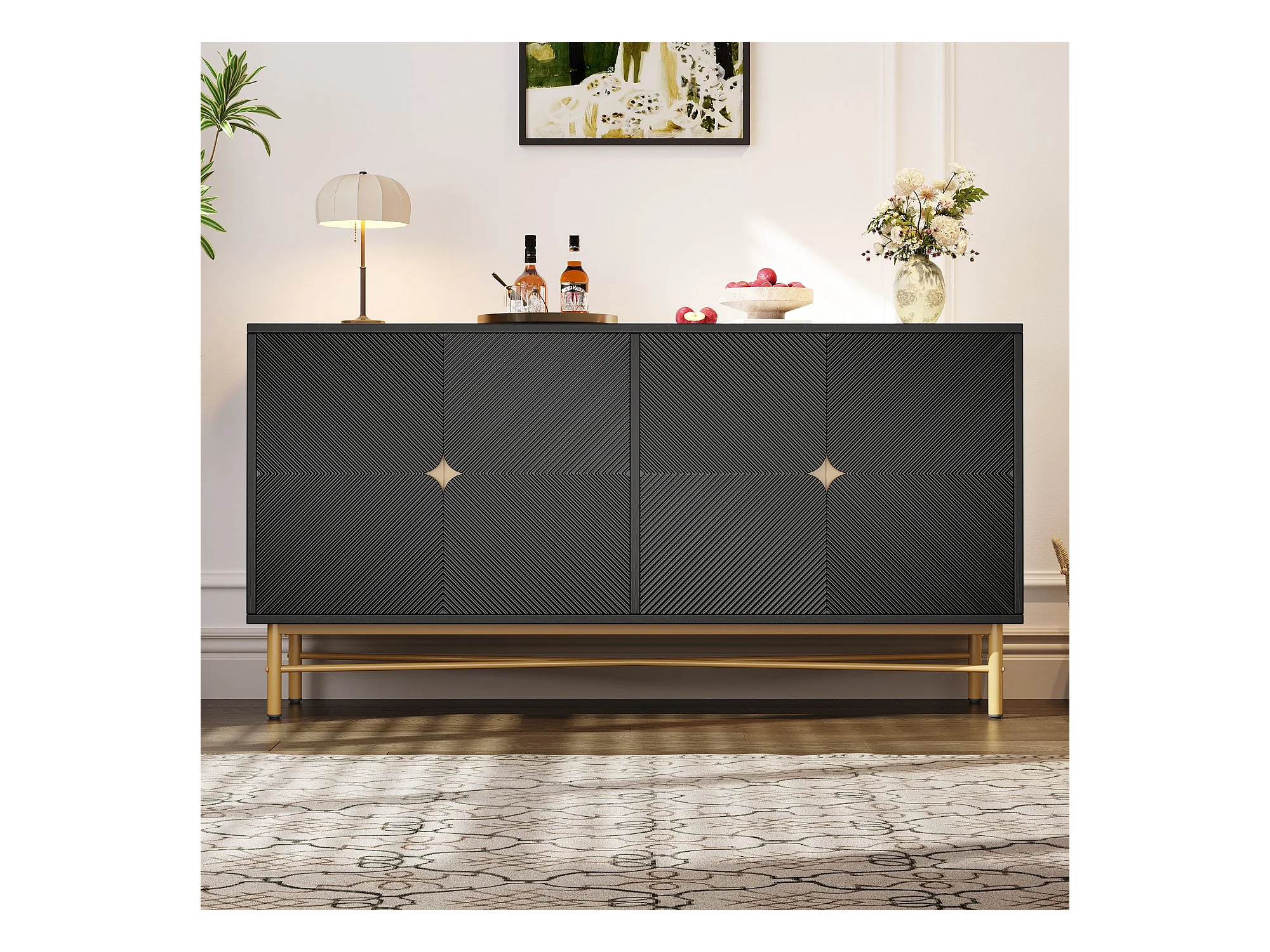 Buffet noir avec 4 portes, poignées et pieds dorés - pour salon et salle à manger