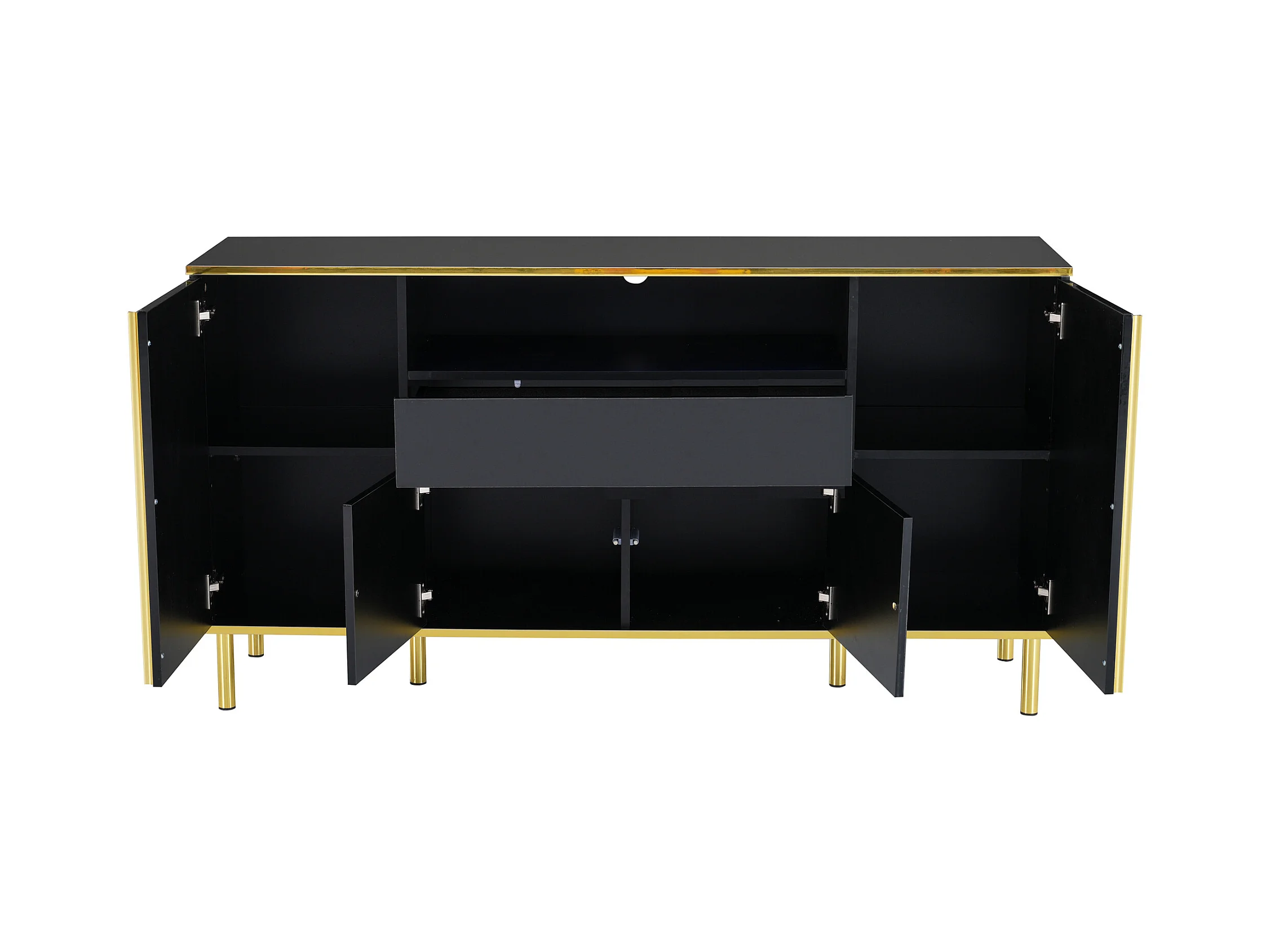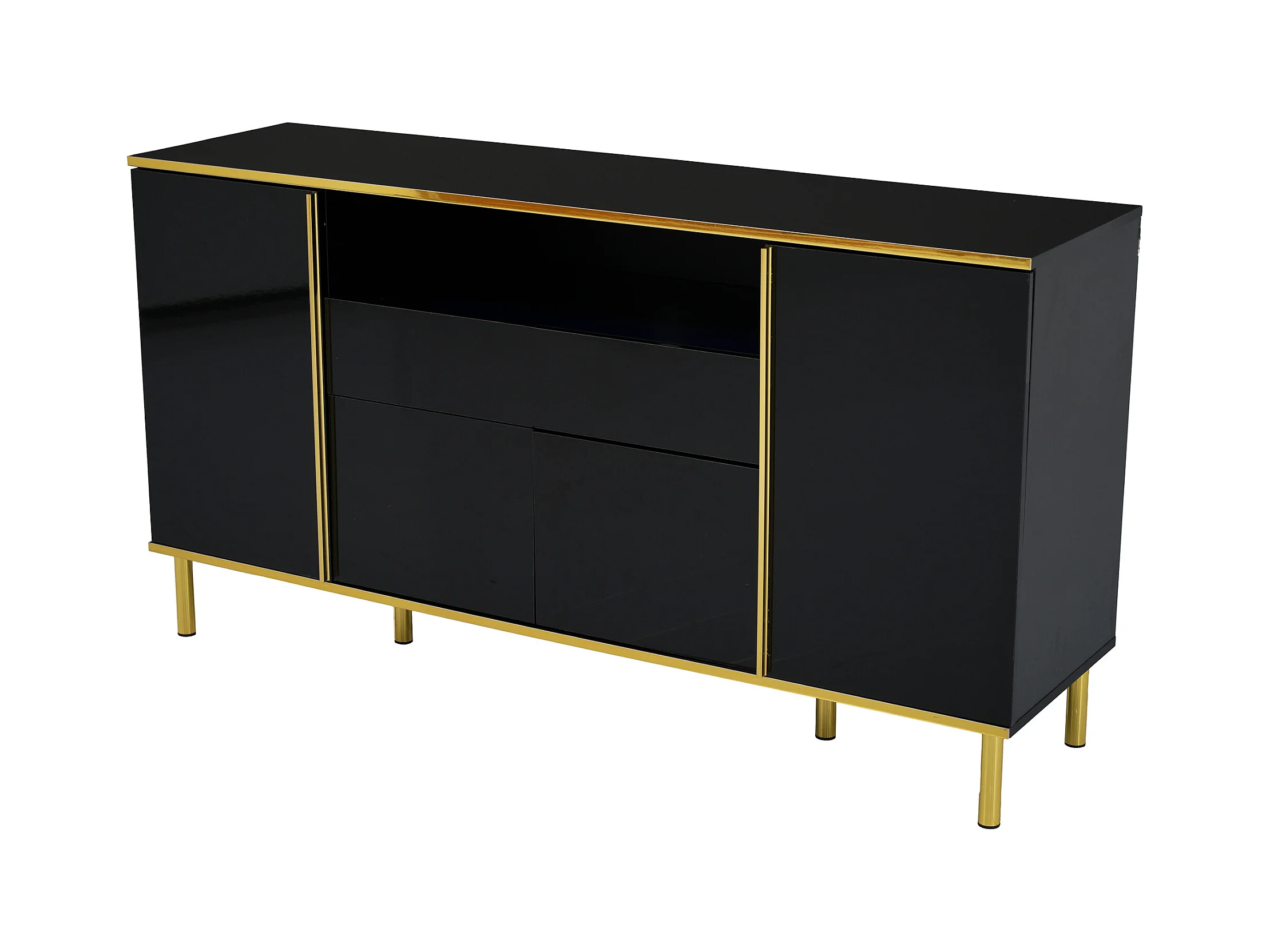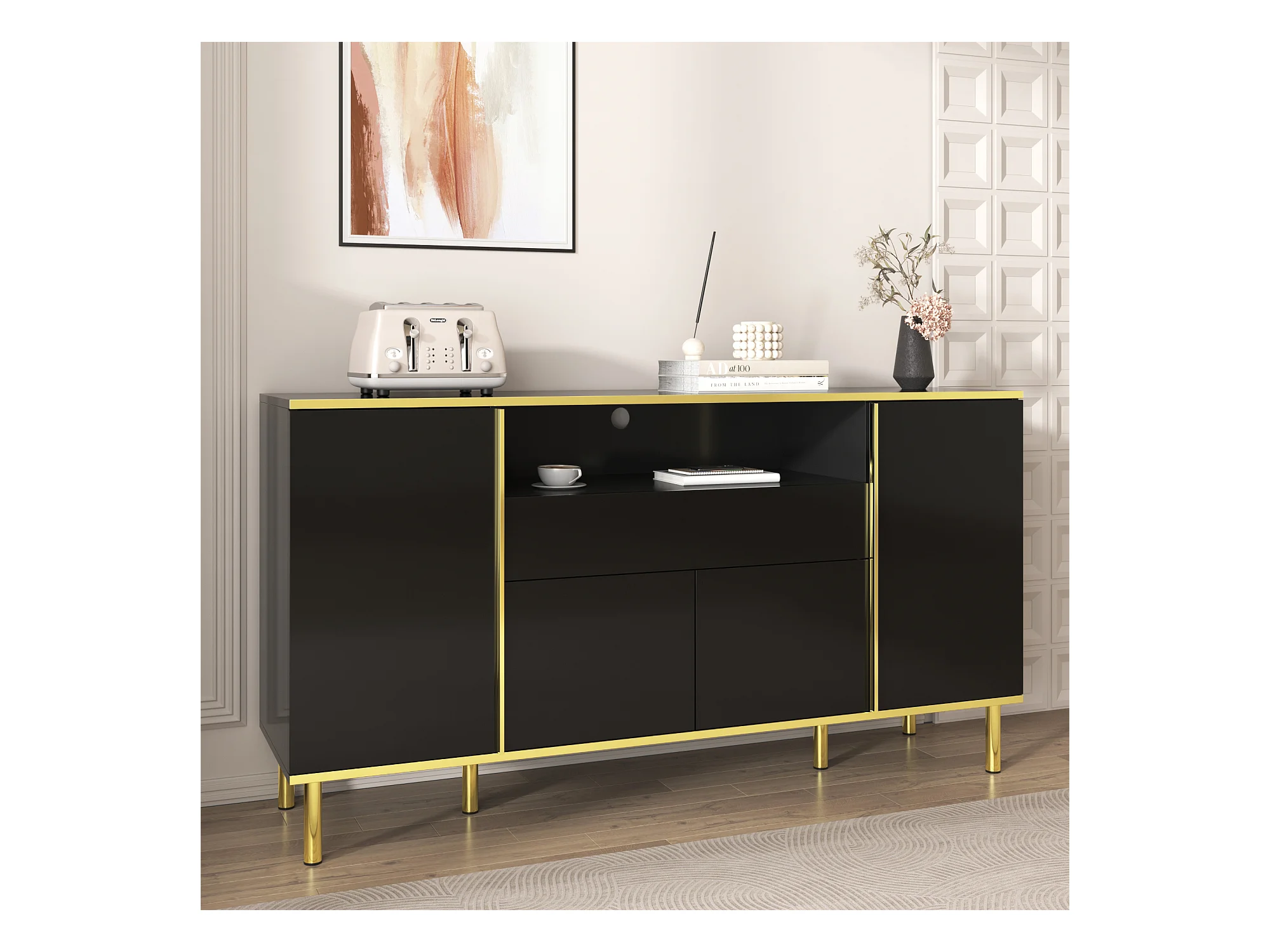 Buffet noir, Buffet brillant avec 4 portes et 1 tiroir, éclairage LED, pour salon et salle à manger