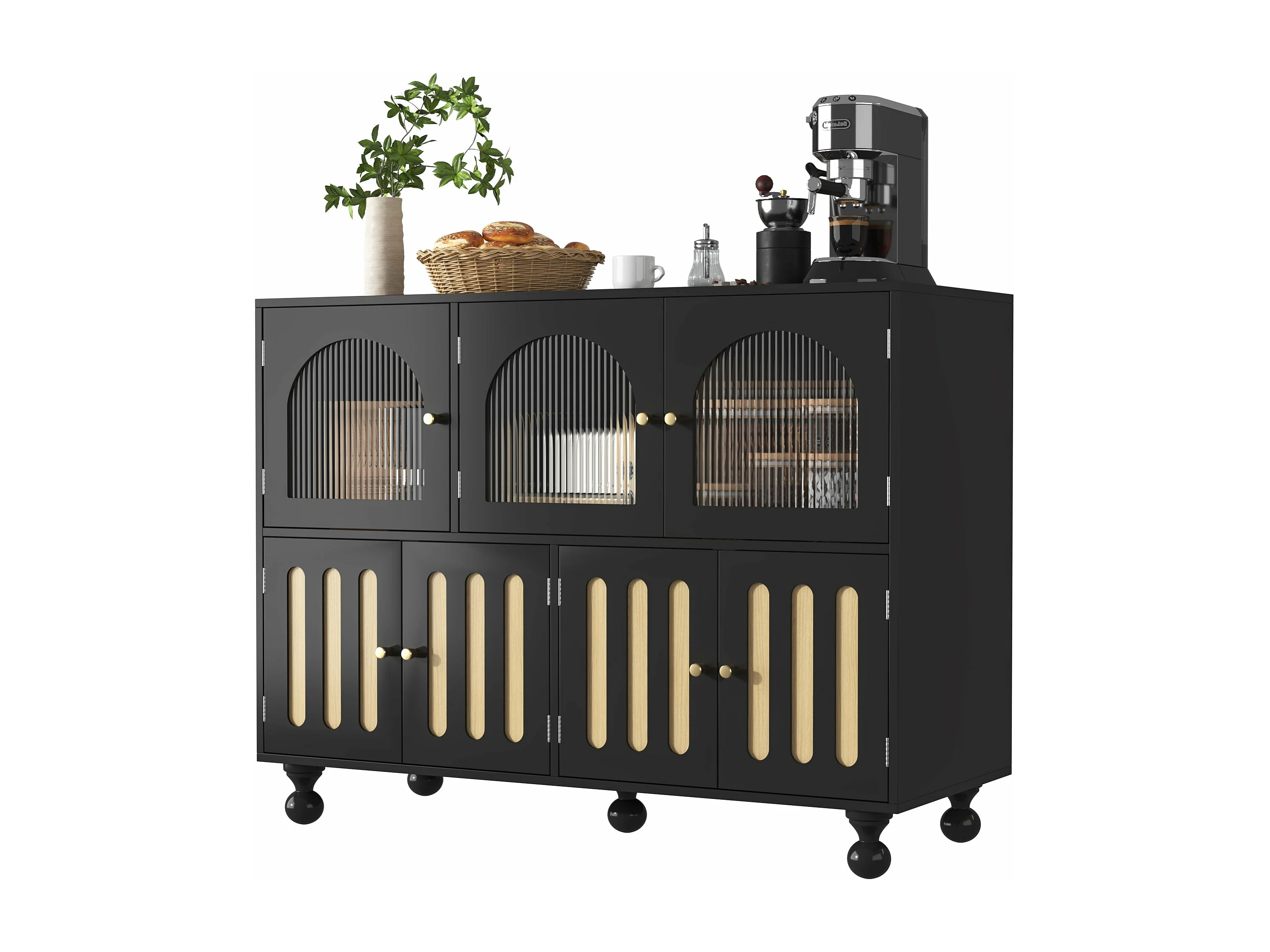 Buffet noir contemporain avec verre changhong,d120cm×h90cm