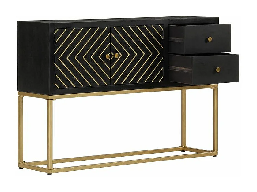 Buffet noir et doré 110x30x75 bois massif de manguier