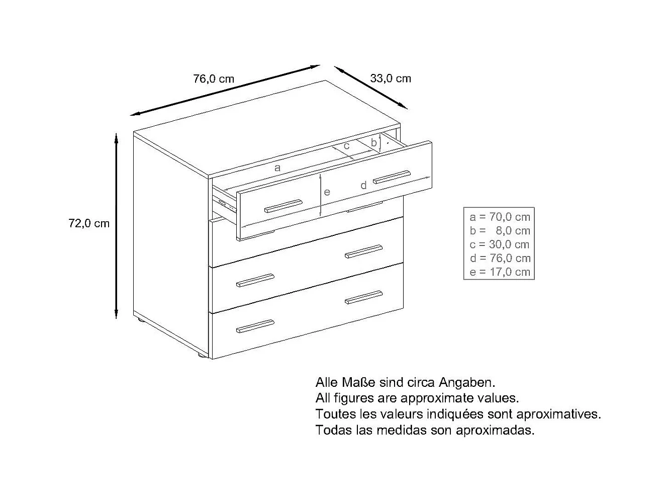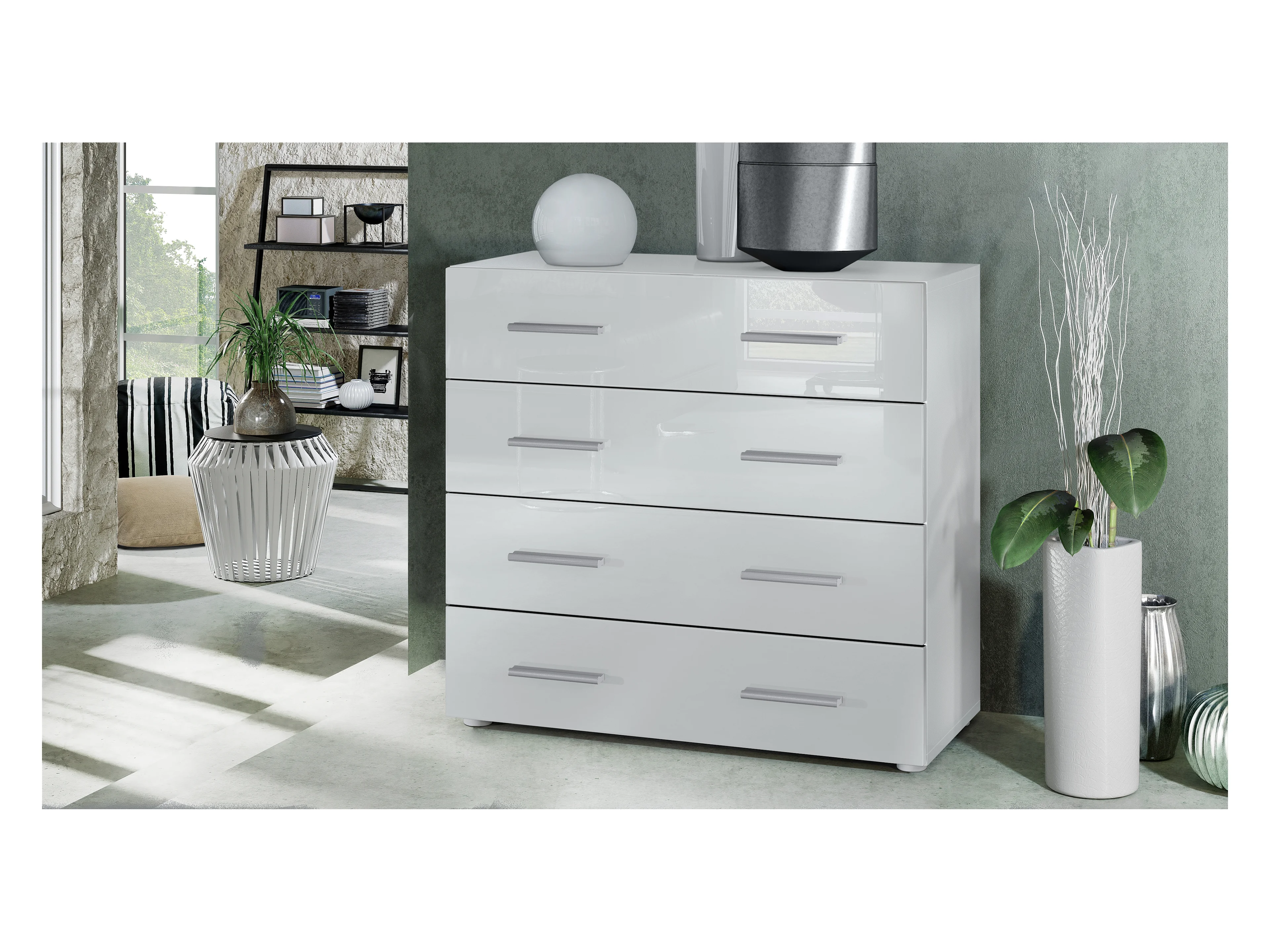 Buffet Pavos, Commode avec 4 tiroirs, blanc mat/blanc haute brillance (76 x 72 x 35 cm)