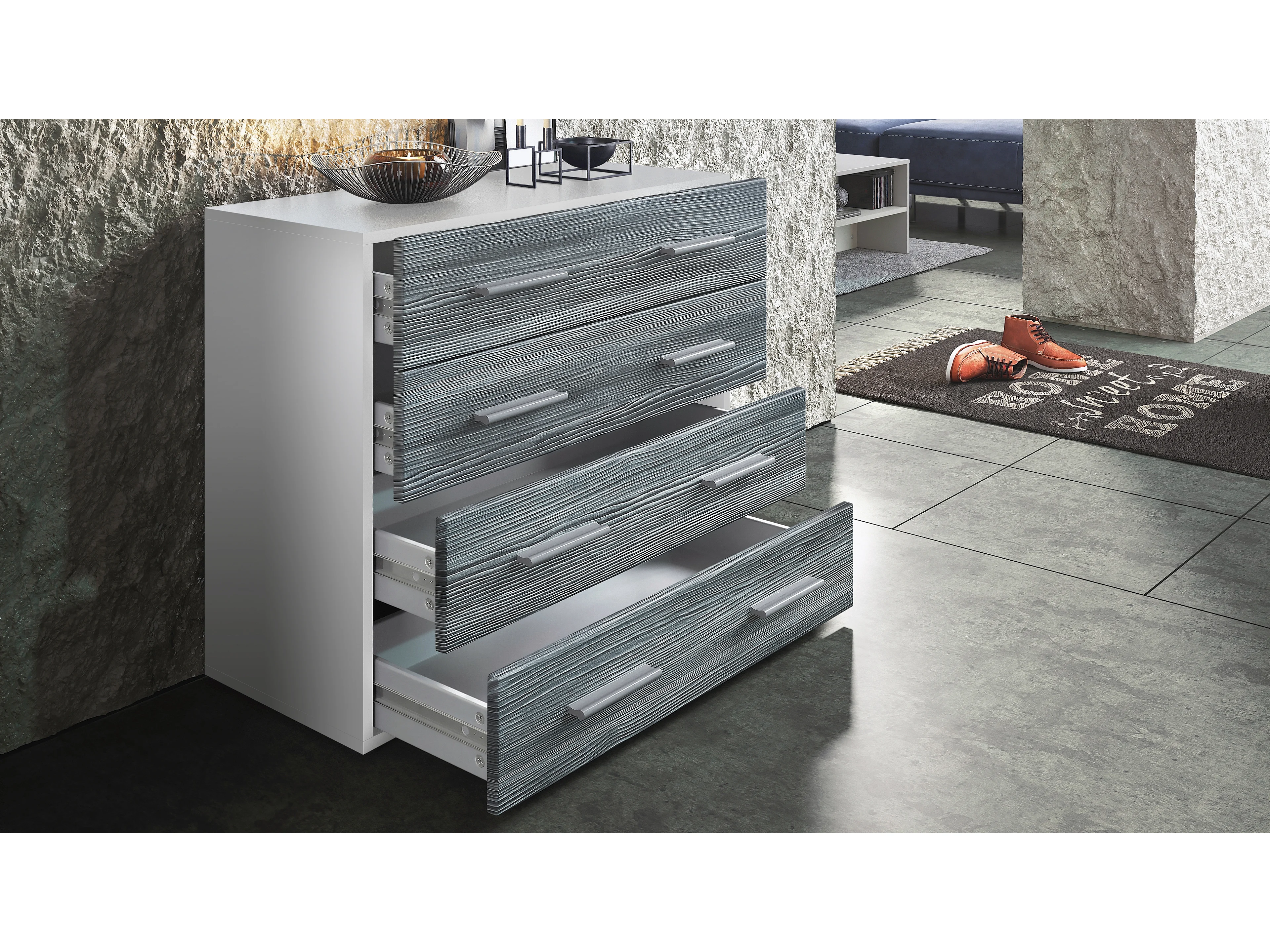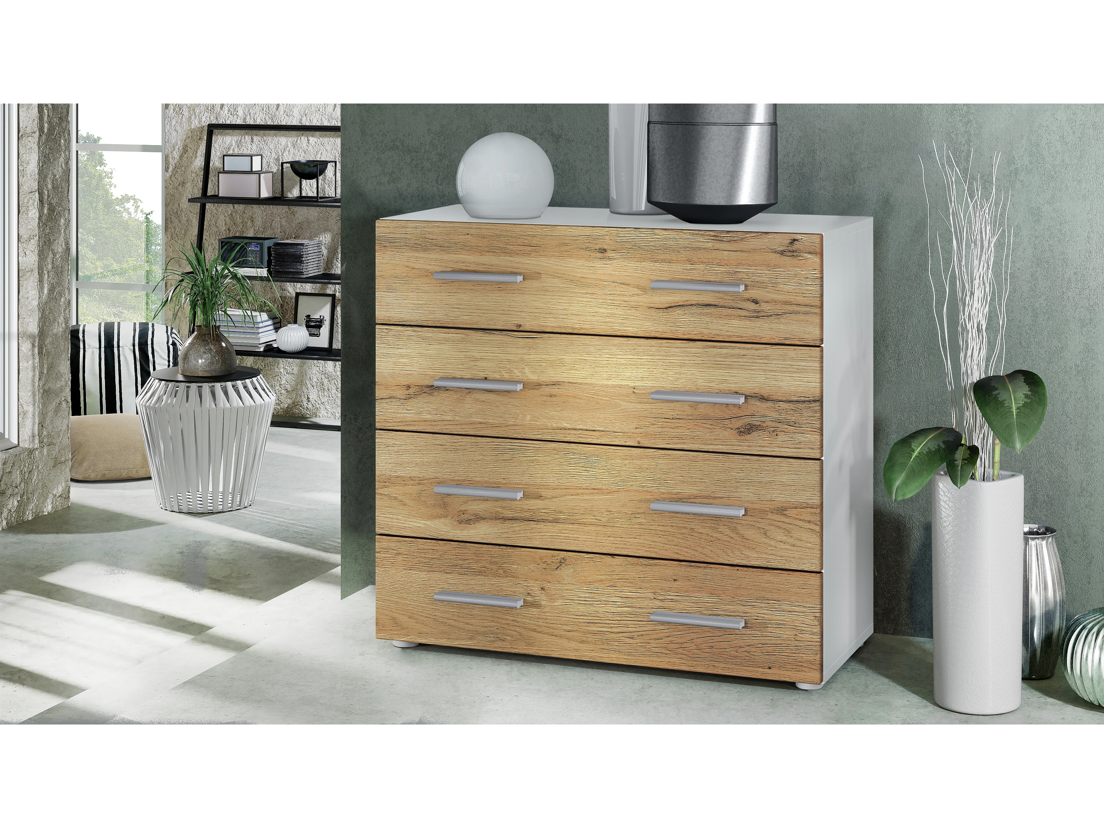 Buffet Pavos, Commode avec 4 tiroirs, blanc mat/chêne nature (76 x 72 x 35 cm)