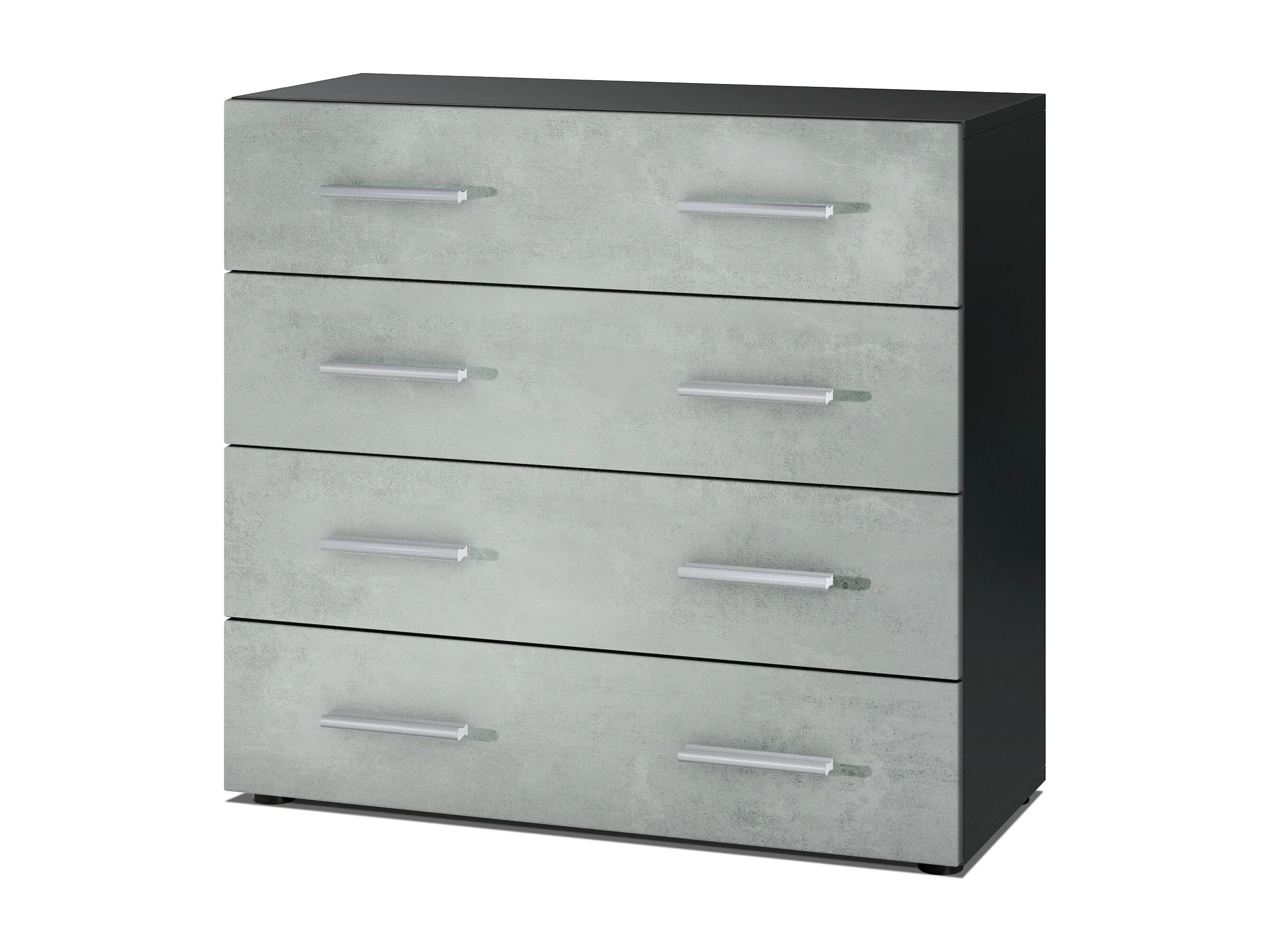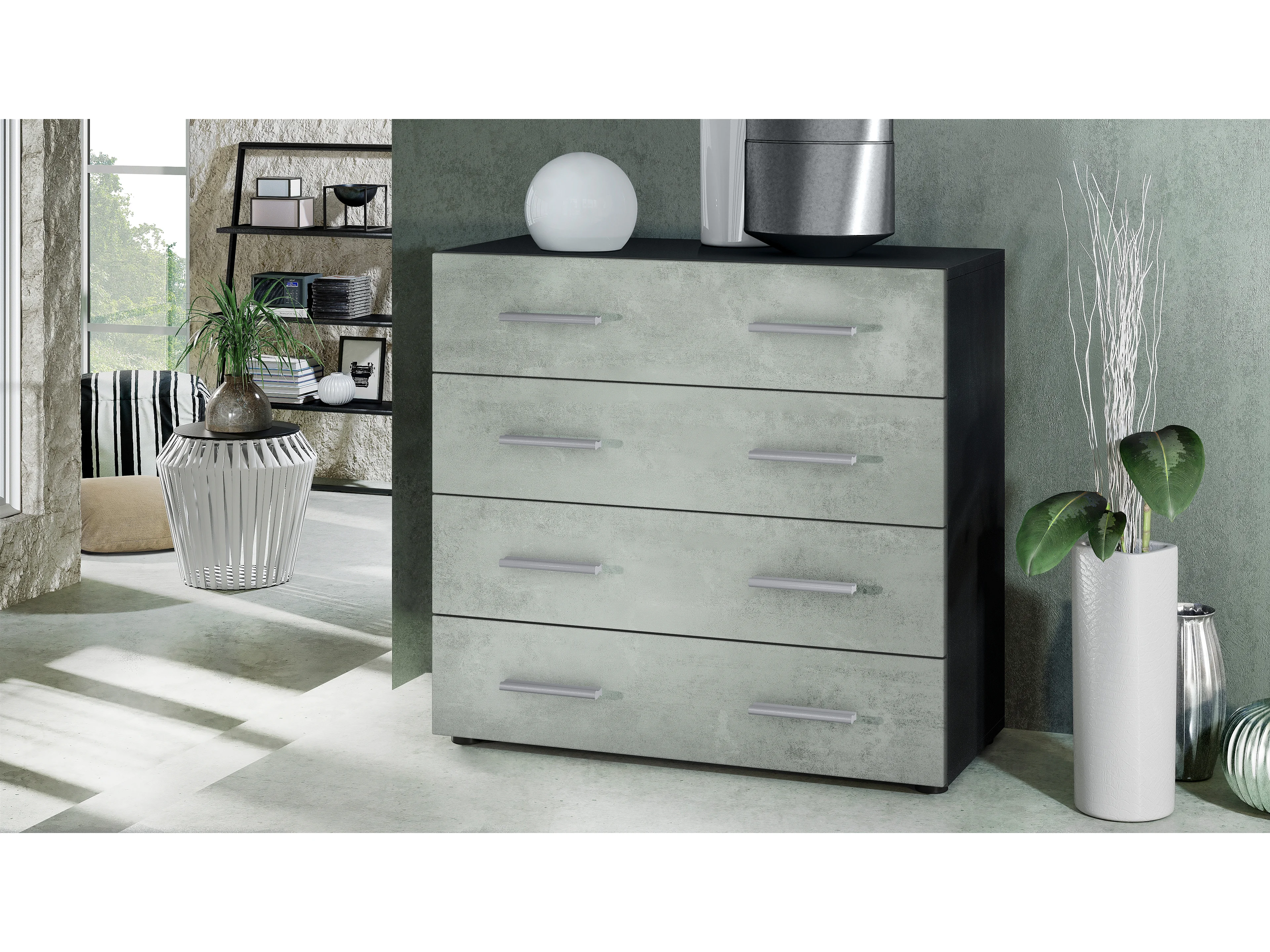 Buffet Pavos, Commode avec 4 tiroirs, noir mat/aspect béton oxyde (76 x 72 x 35 cm)