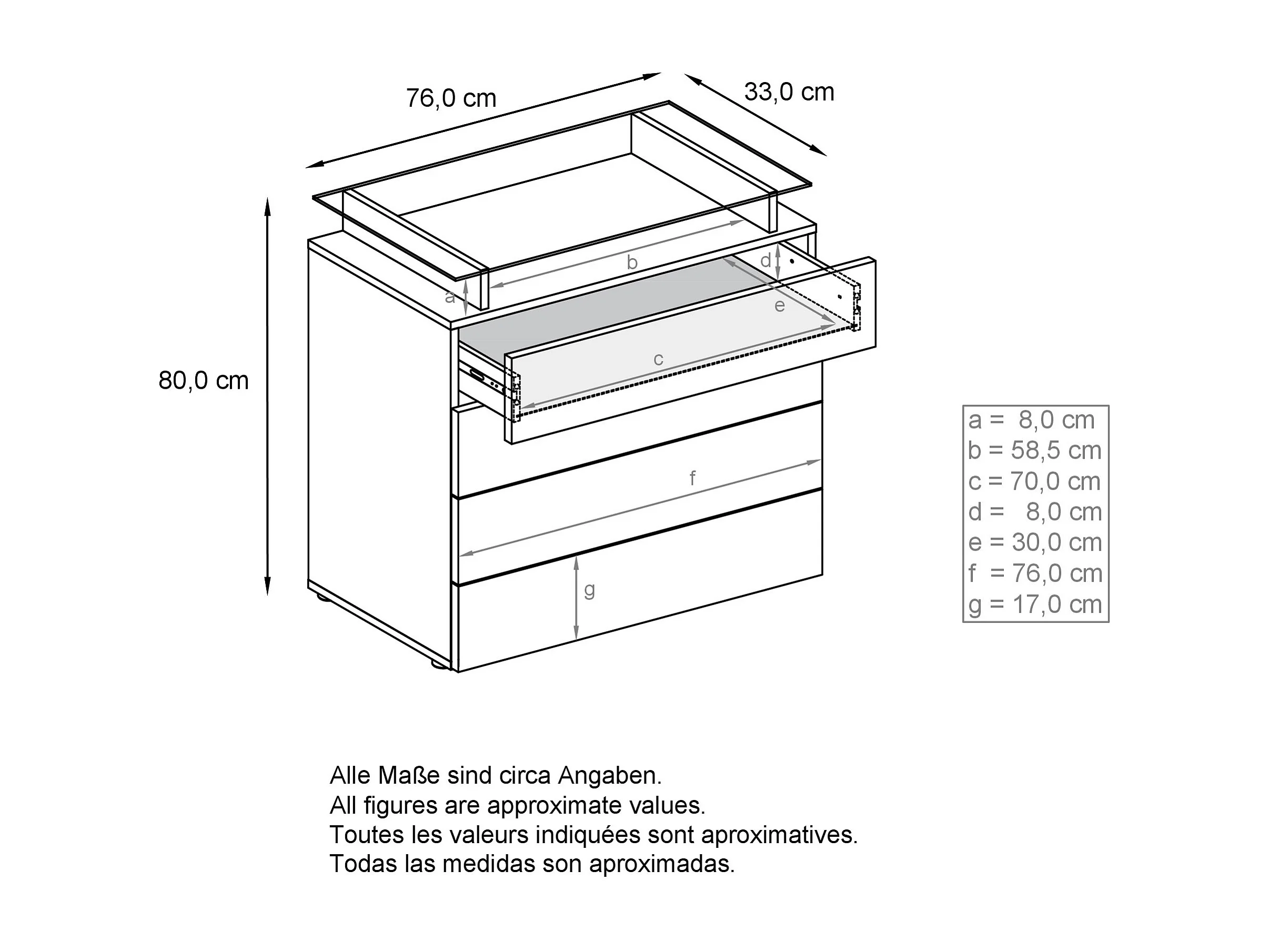 Buffet Pavos V2, Commode avec 4 tiroirs et mini-étagère en verre, anthracite mat/blanc mat (76 x 81 x 35 cm)