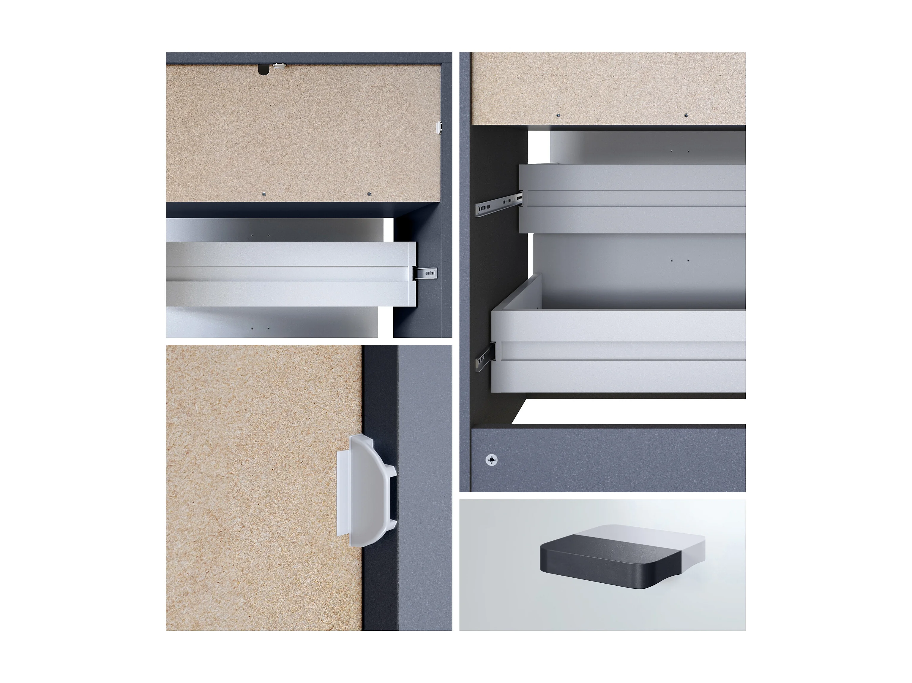 Commode Buffet Pino V2, avec 3 tiroirs & 1 compartiment ouvert, Anthracite mat /Chêne Nature sans LED (56 x 86,5 x 36 cm)