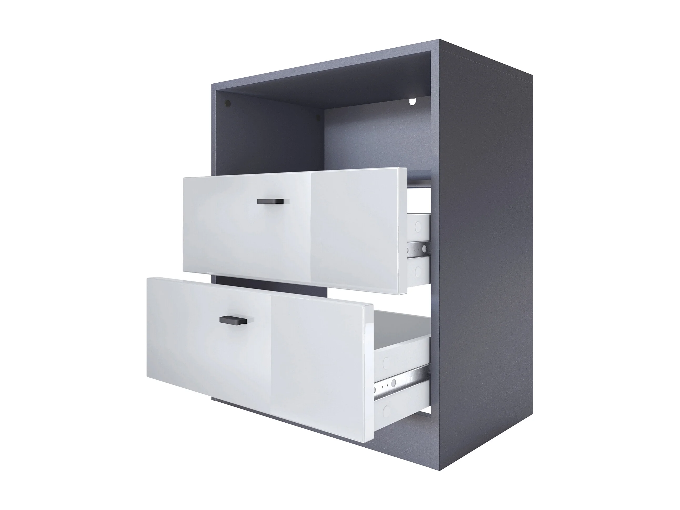 Buffet Pino V1, table de chevet avec 2 tiroirs & 1 compartiment ouvert, Anthracite mat/Gris haute brillance sans LED (56 x 67,5 x 36 cm)