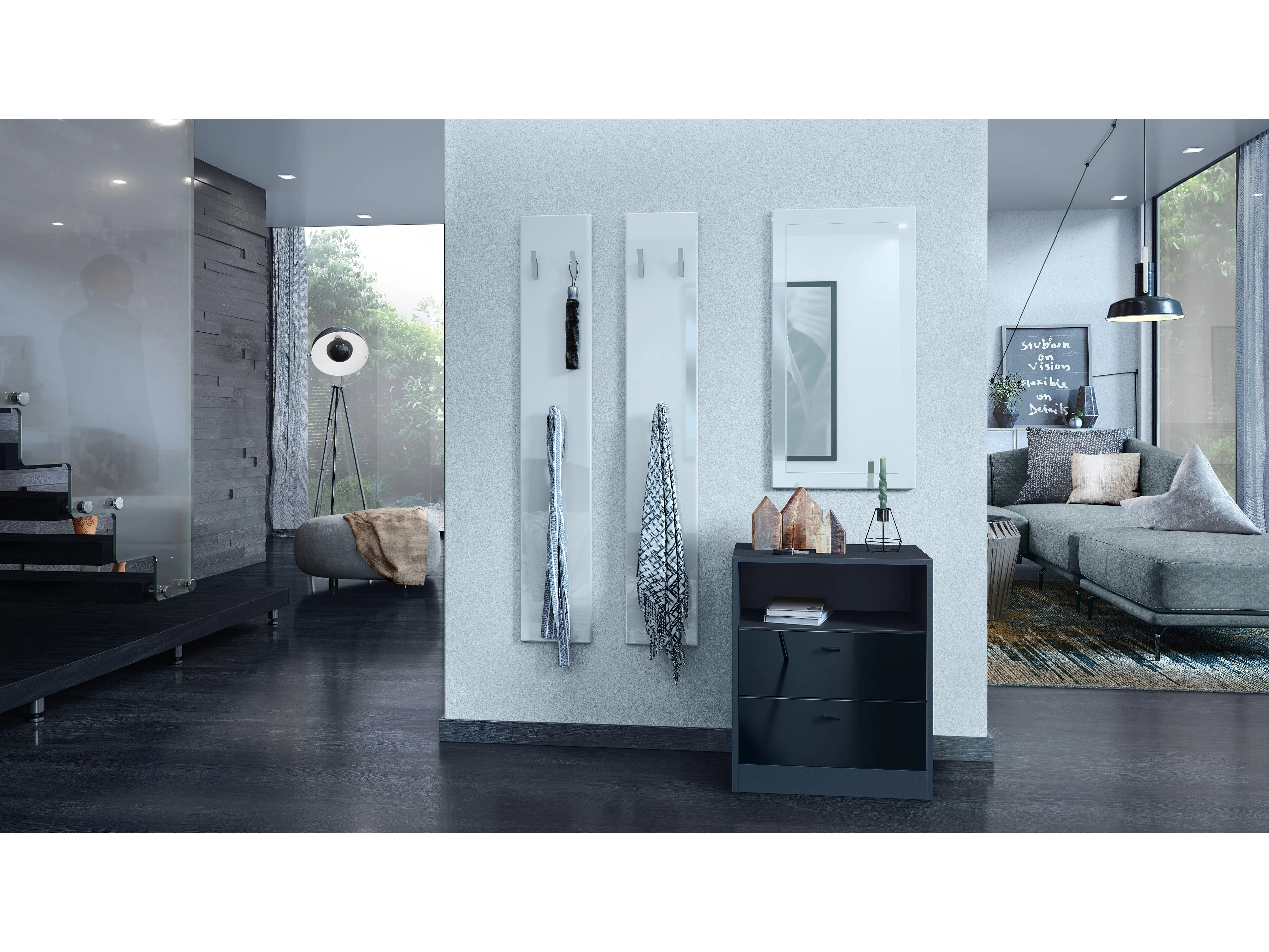 Commode Buffet Pino V2, avec 3 tiroirs & 1 compartiment ouvert, Anthracite mat /Noir haute brillance sans LED (56 x 86,5 x 36 cm)