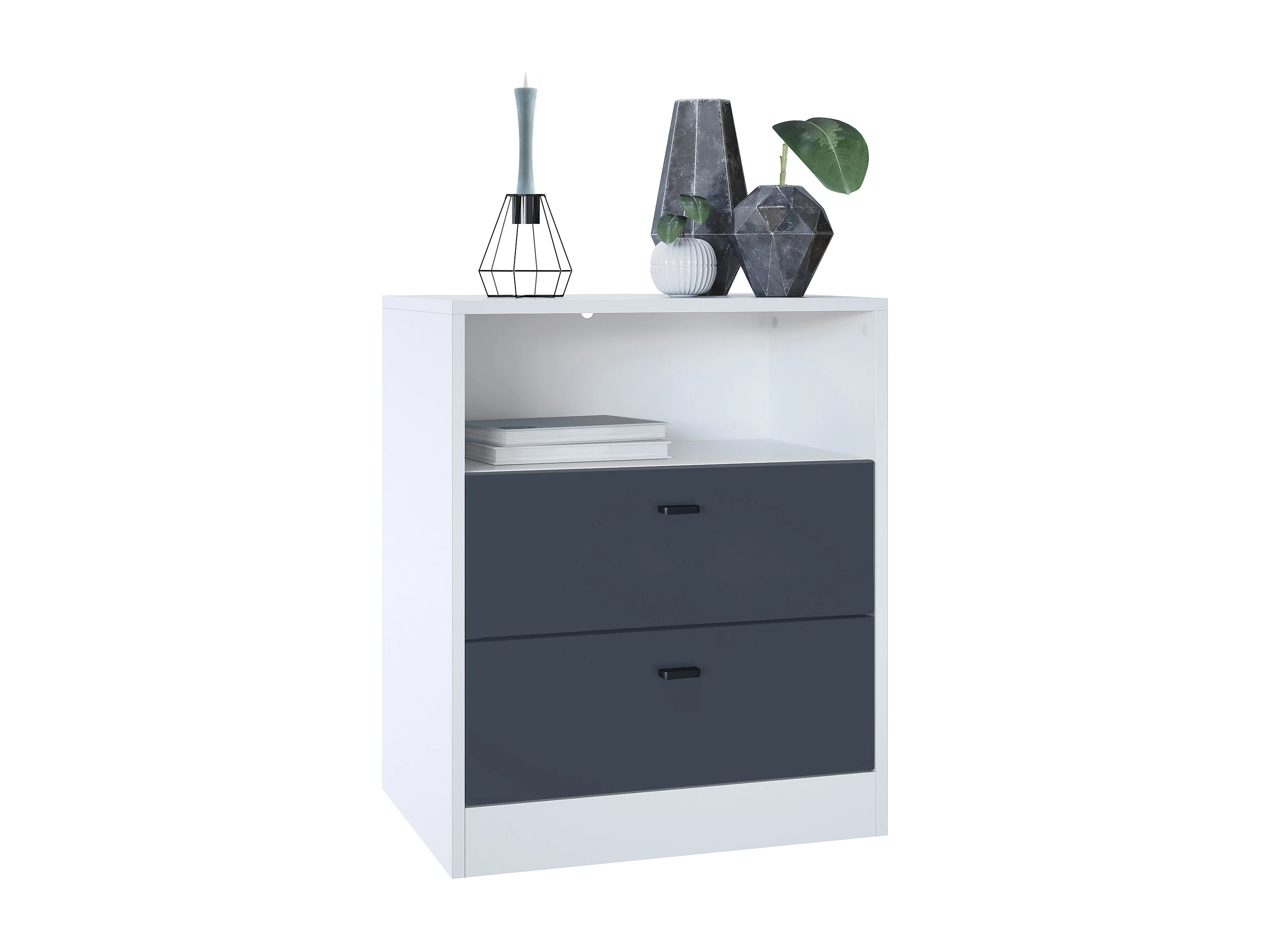 Buffet Pino V1, table de chevet avec 2 tiroirs & 1 compartiment ouvert,blanche mat/undefined sans LED (56 x 67,5 x 36 cm)