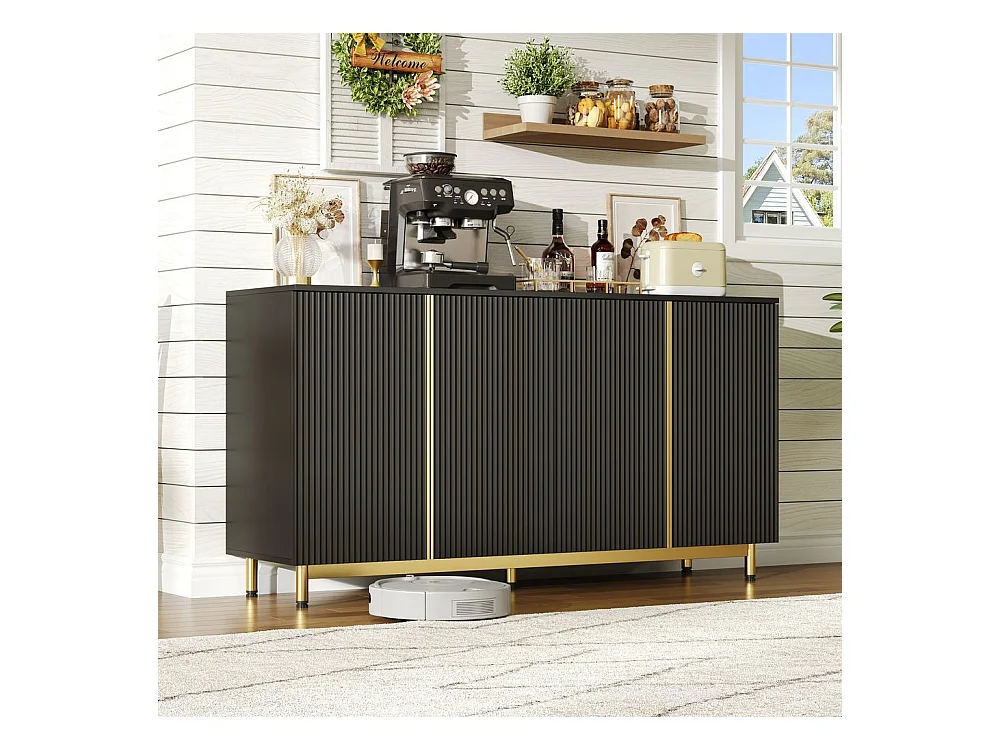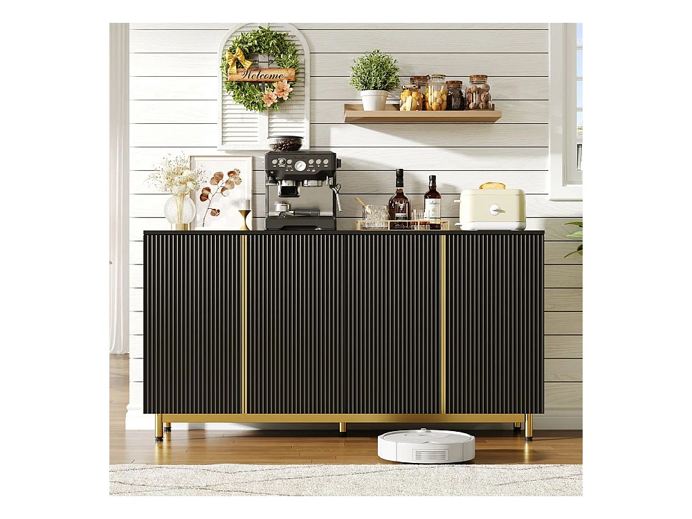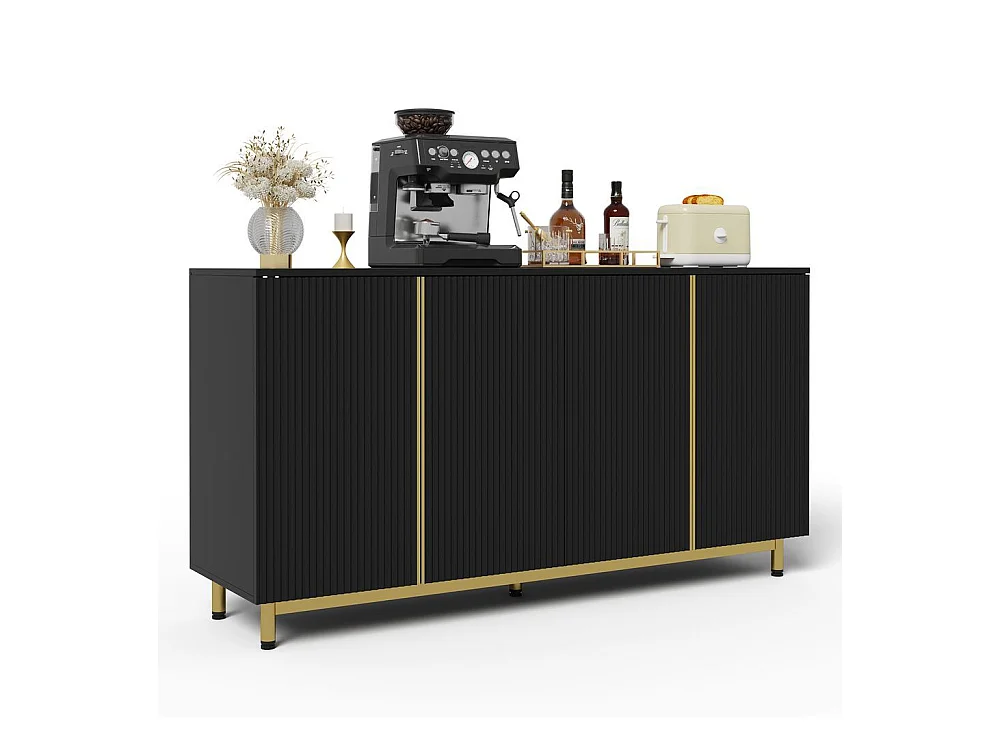 Buffet portes ondulées rainurées pieds métalliques réglables stable adapté salle à manger cuisine salon noir