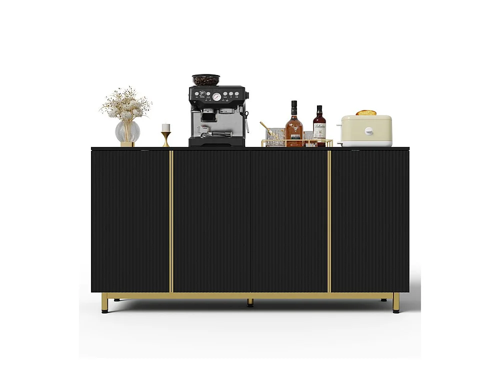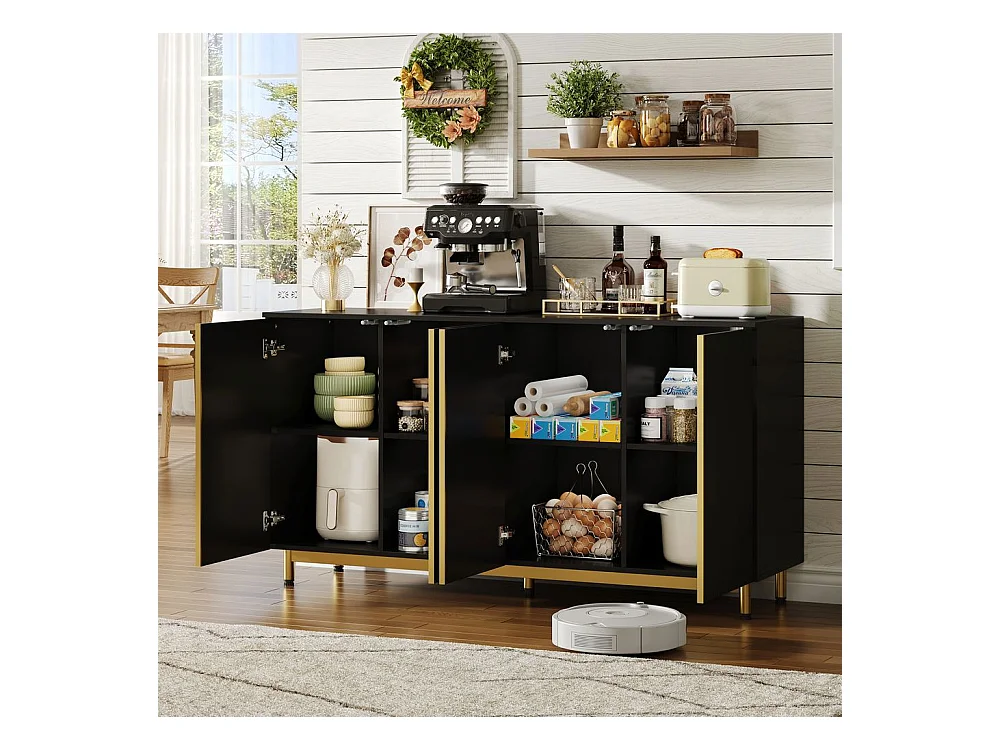 Buffet moderne à 4 portes design élégant en noir et or corps en MDF avec pieds en métal étagères réglables en hauteur