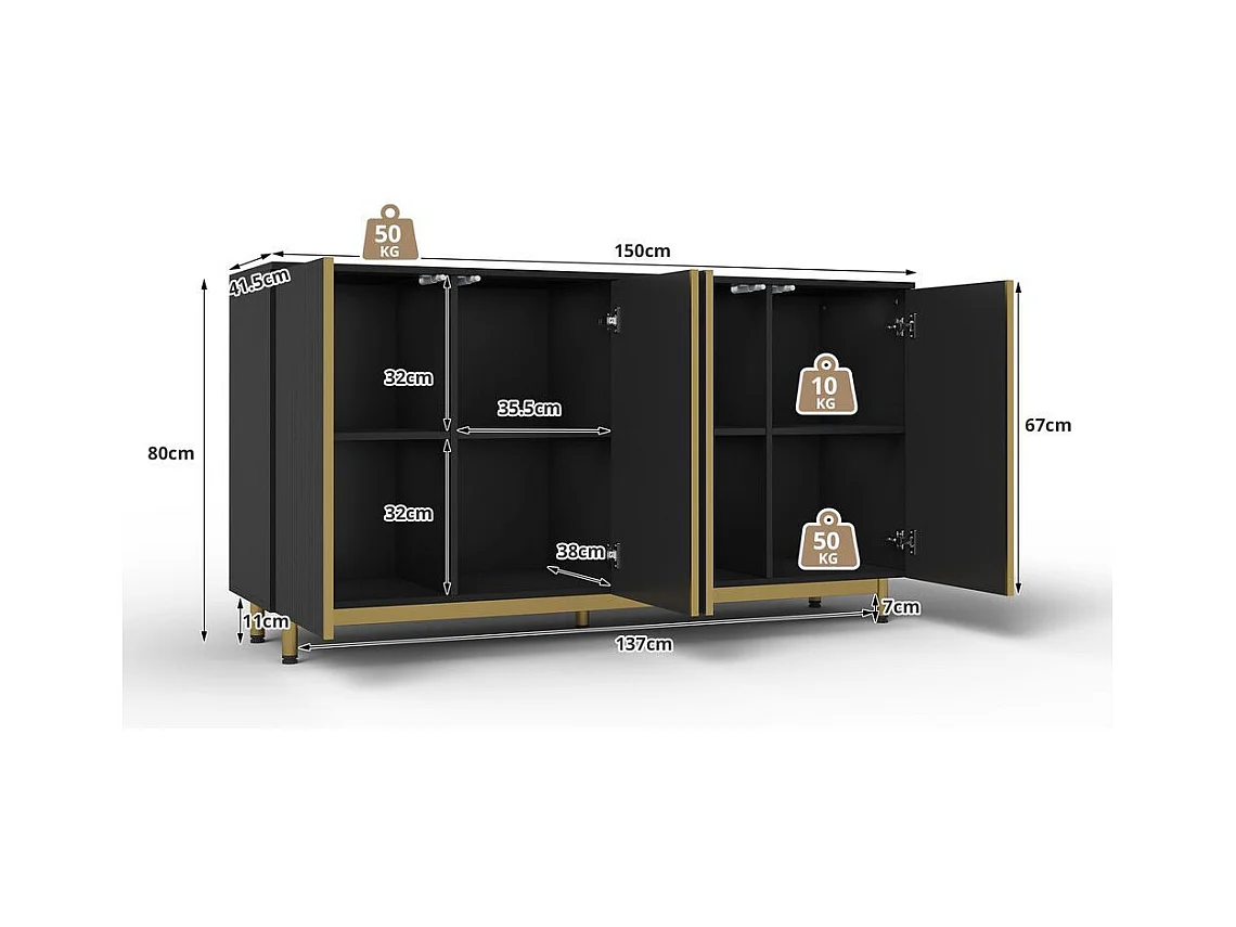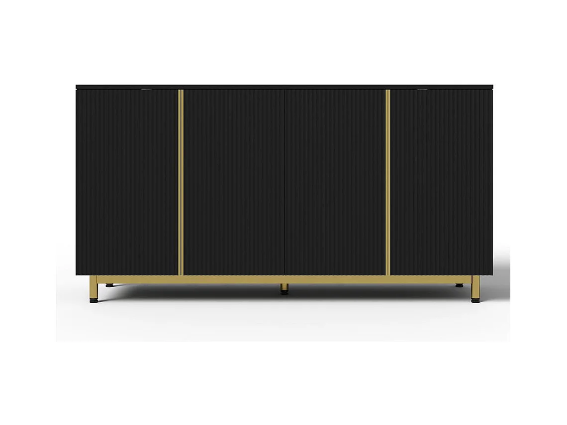 URBAN MEUBLE Buffet moderne noir 4 portes texturés et accents dorés