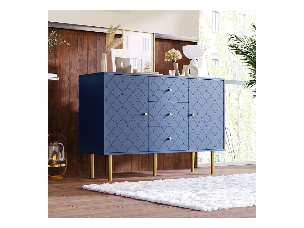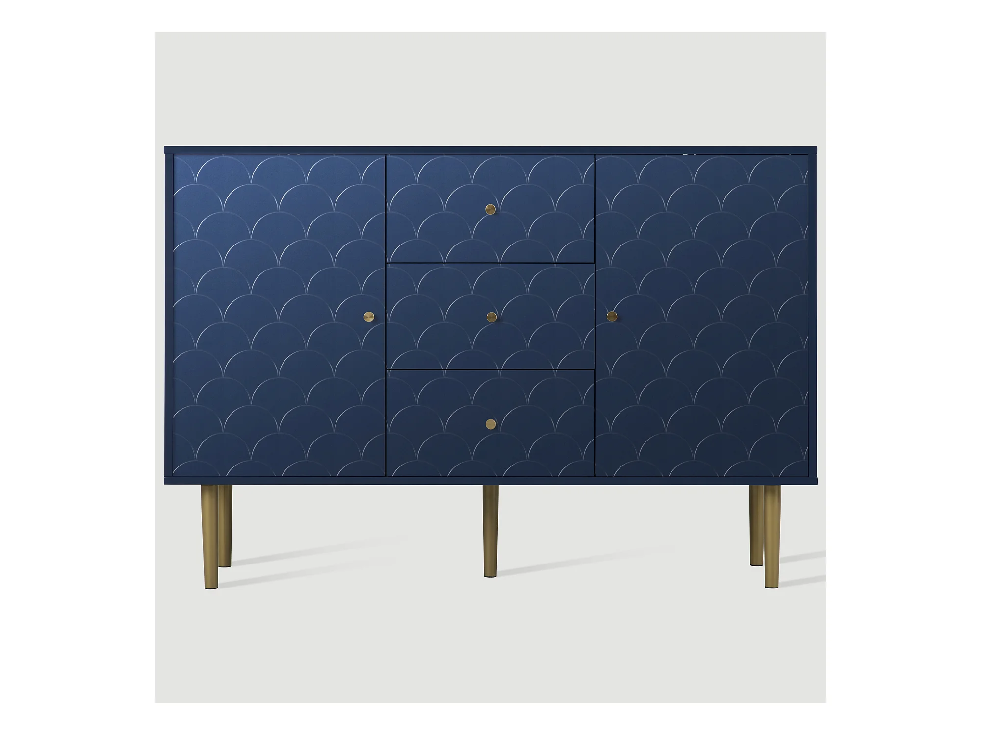 Buffet pour salon chambre - 120 x 40 x 83 cm - avec 2 portes + 3 tiroirs - bois + métal - bleu