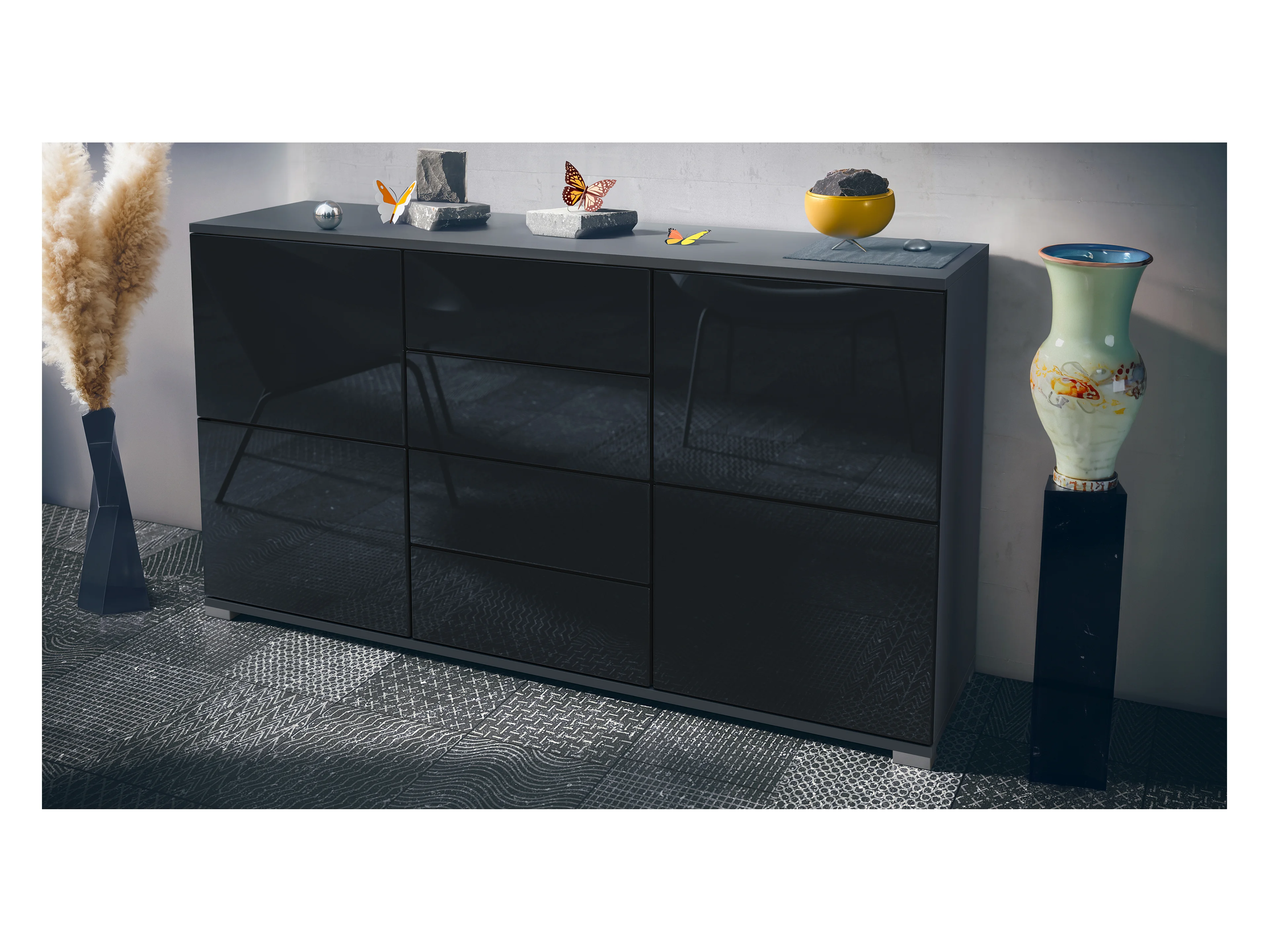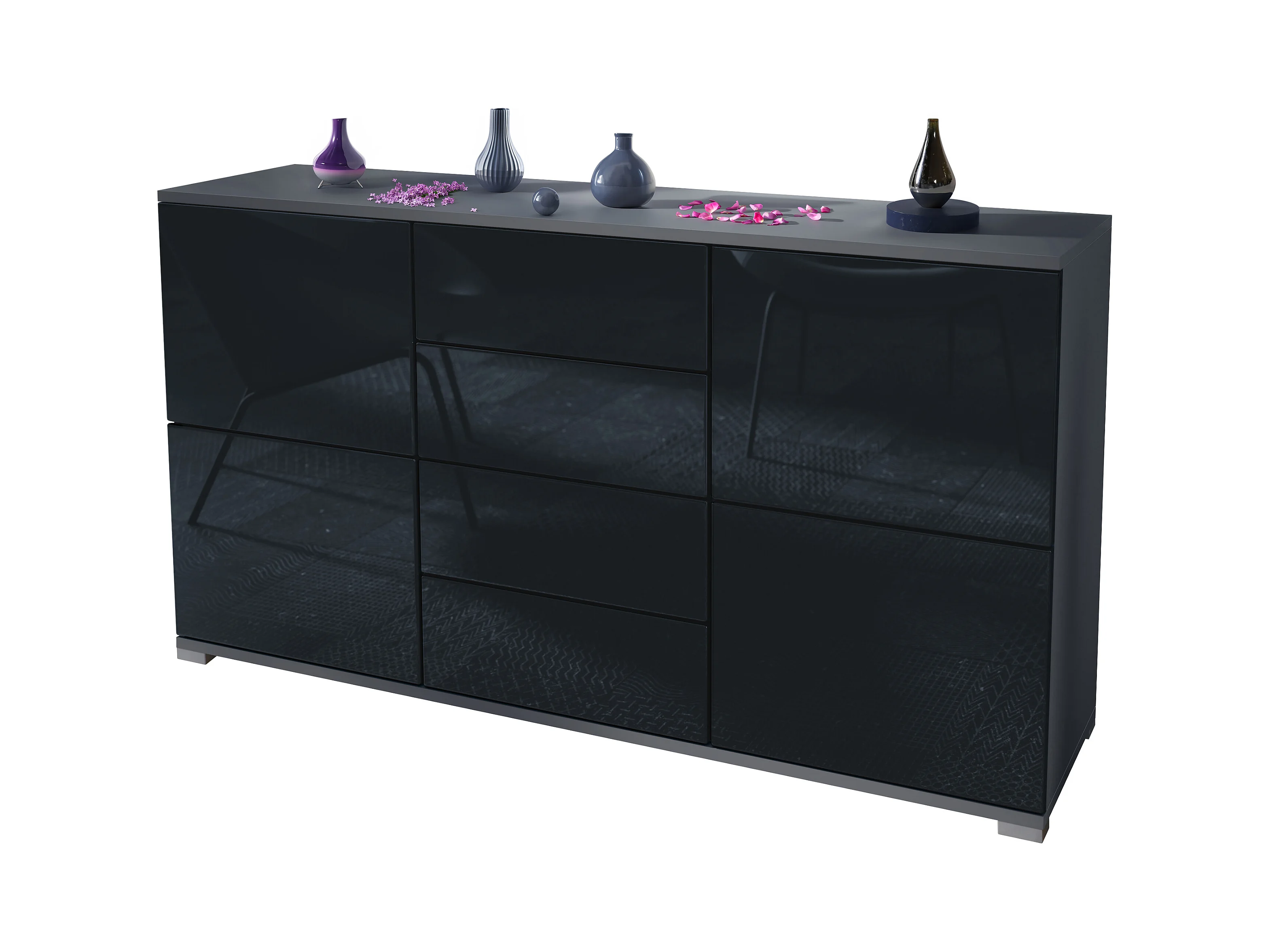 Buffet Rova V1 – Meuble avec 4 Portes et 4 Tiroirs, anthracite mat/noir haute brillance (138,5 x 75,5 x 35)