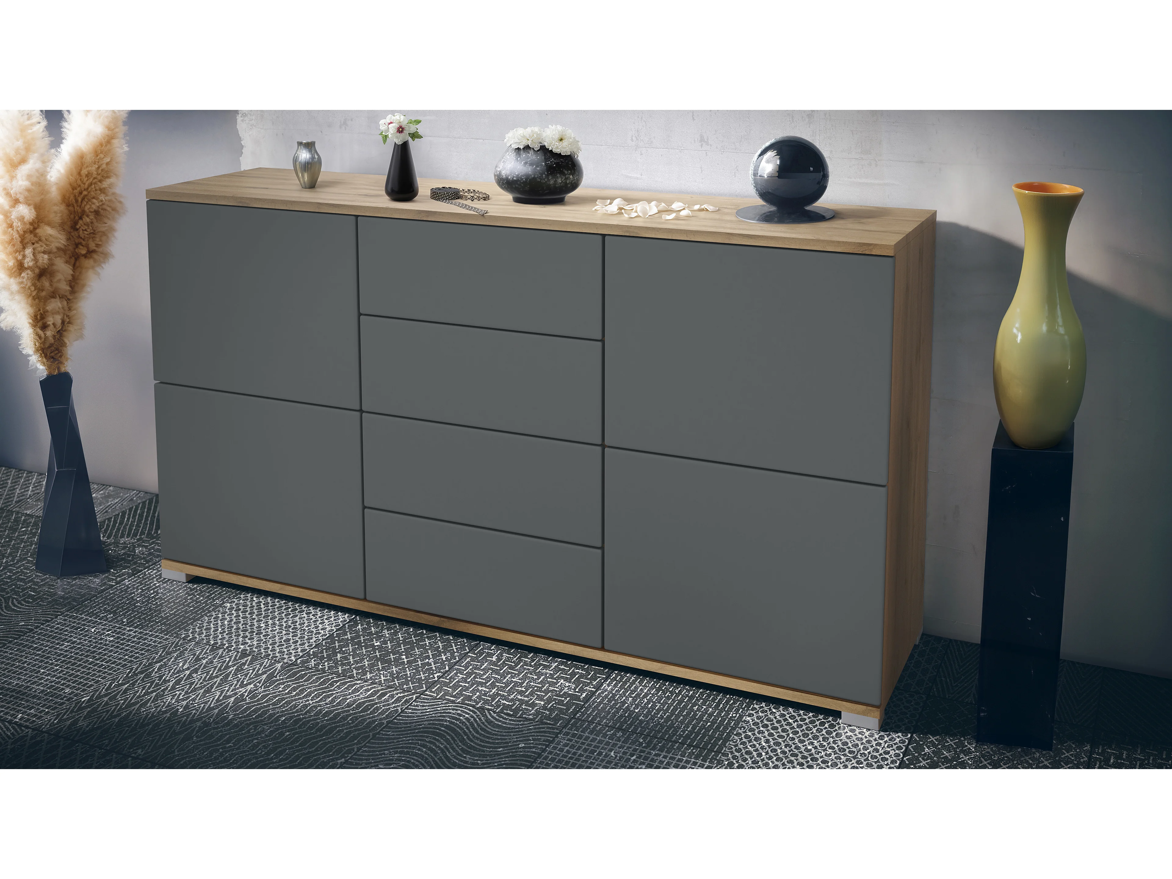 Buffet Rova V1 – Meuble avec 4 Portes et 4 Tiroirs, Chêne Evoke/graphite satiné mat (138,5 x 75,5 x 35)