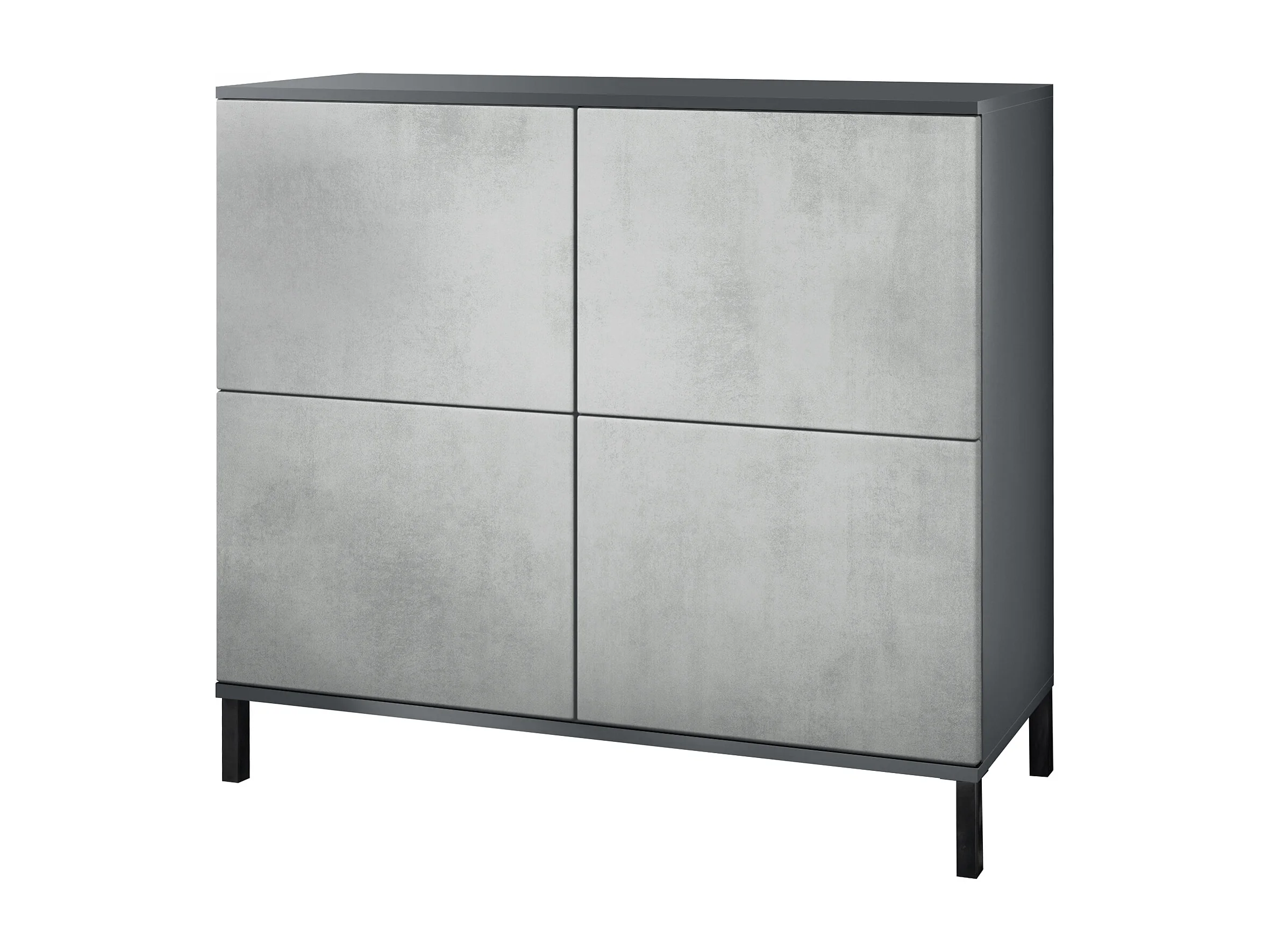Buffet Rova V3 – Meuble de cuisine moderne avec 4 portes Push-to-Open anthracite mat / aspect béton oxyde (92,5 x 83.5 x 35)