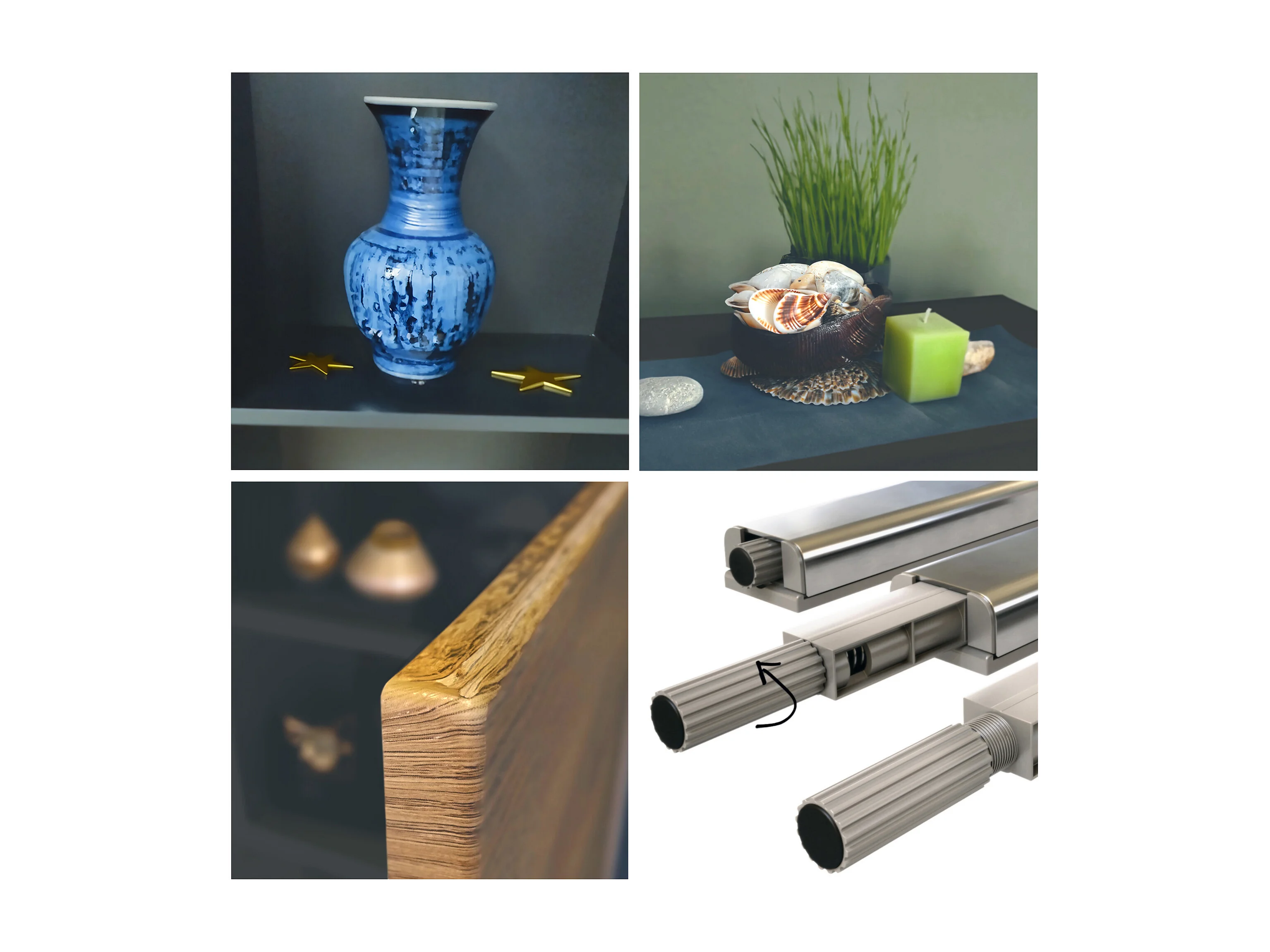 Buffet Rova V3 – Meuble de cuisine moderne avec 4 portes Push-to-Open anthracite mat / aspect bronzé (92,5 x 84.5 x 35)