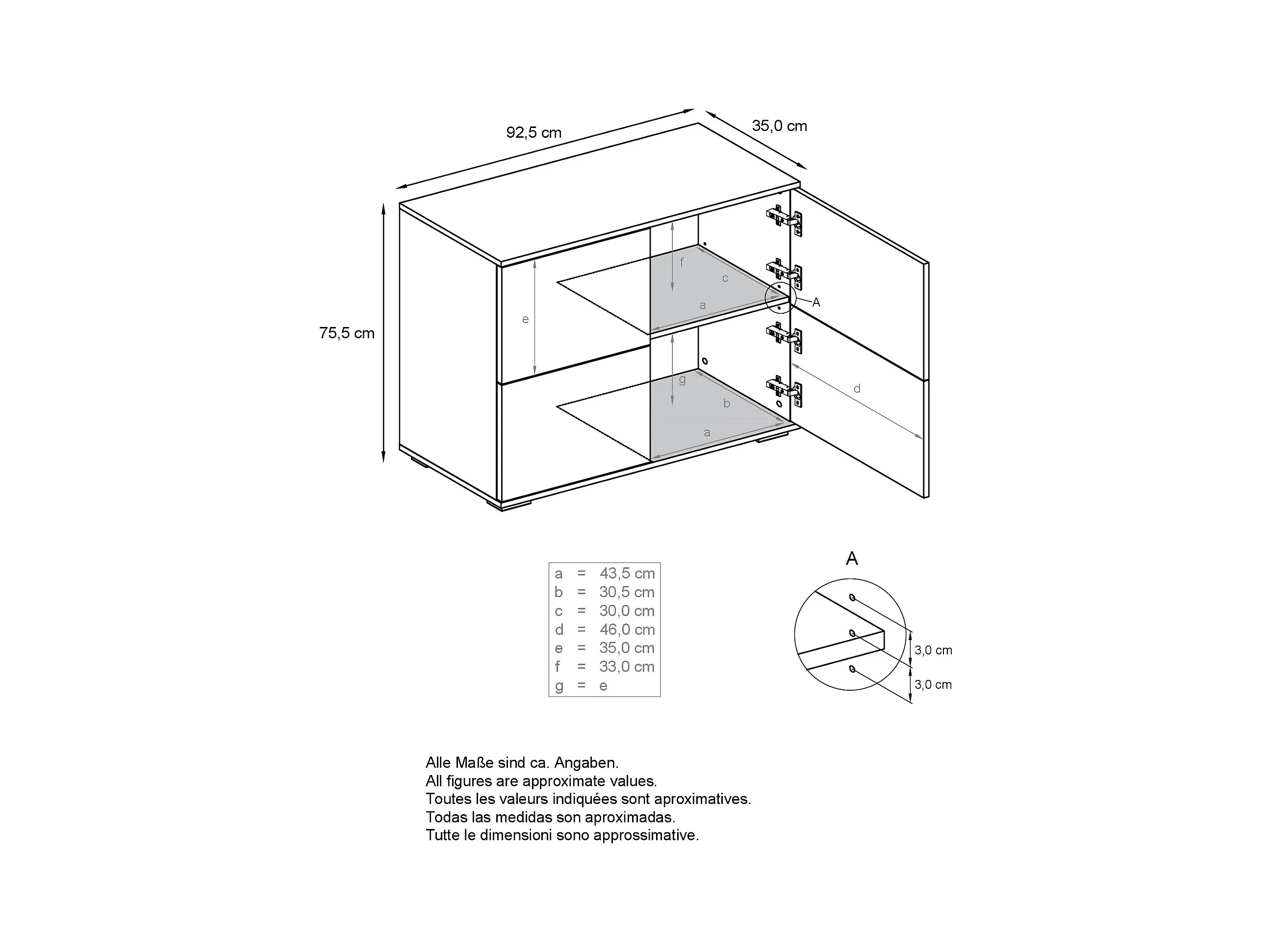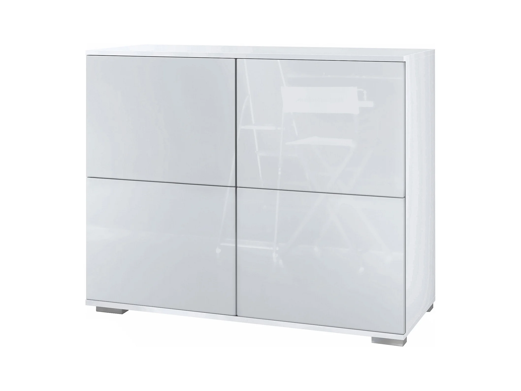 Buffet Rova V3 – Meuble de cuisine moderne avec 4 portes Push-to-Open blanc mat / blanc haute brillance (92,5 x 75.5 x 35)