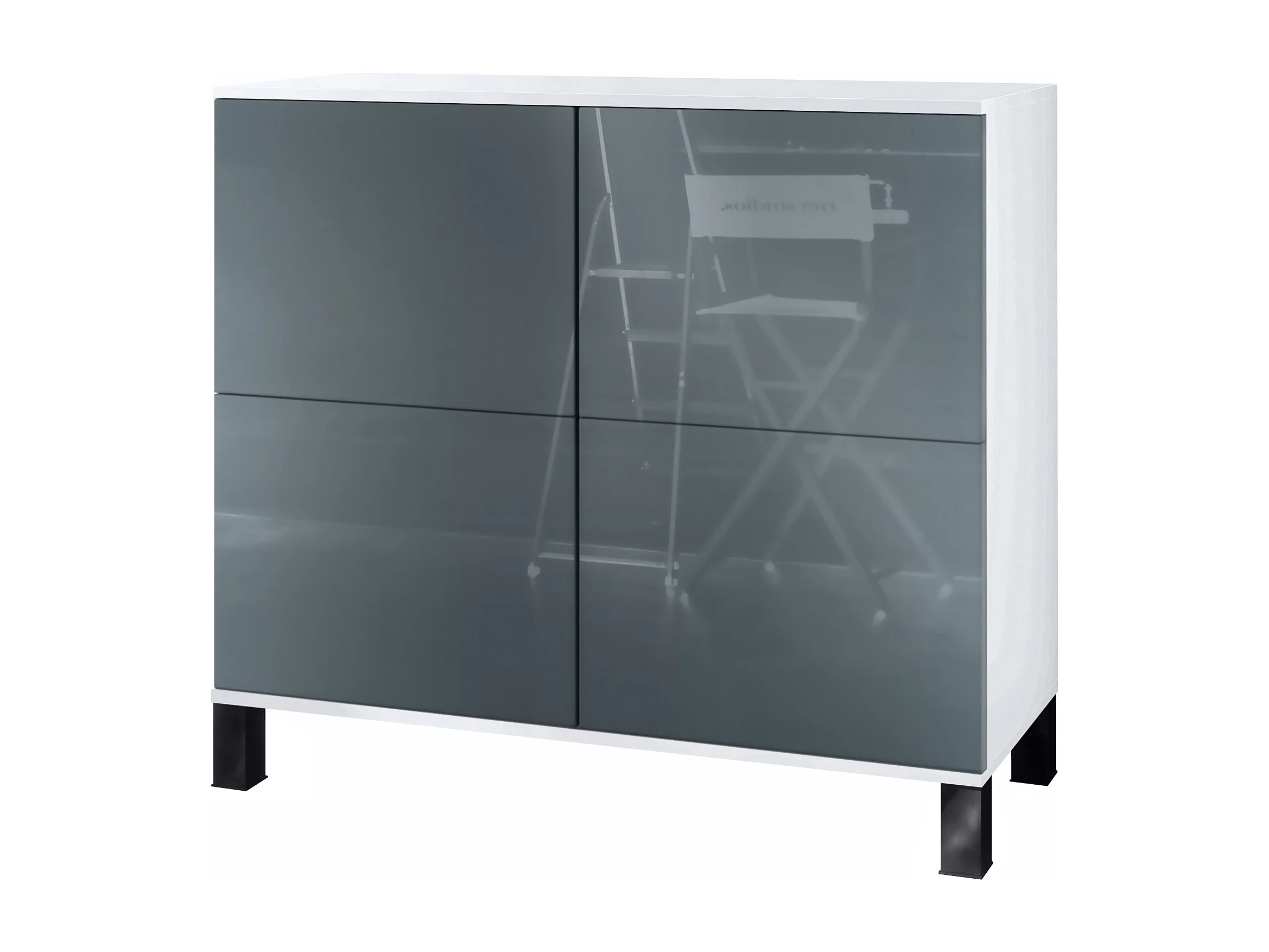 Buffet Rova V3 – Meuble de cuisine moderne avec 4 portes Push-to-Open blanc mat / gris haute brillance (92,5 x 84.5 x 35)