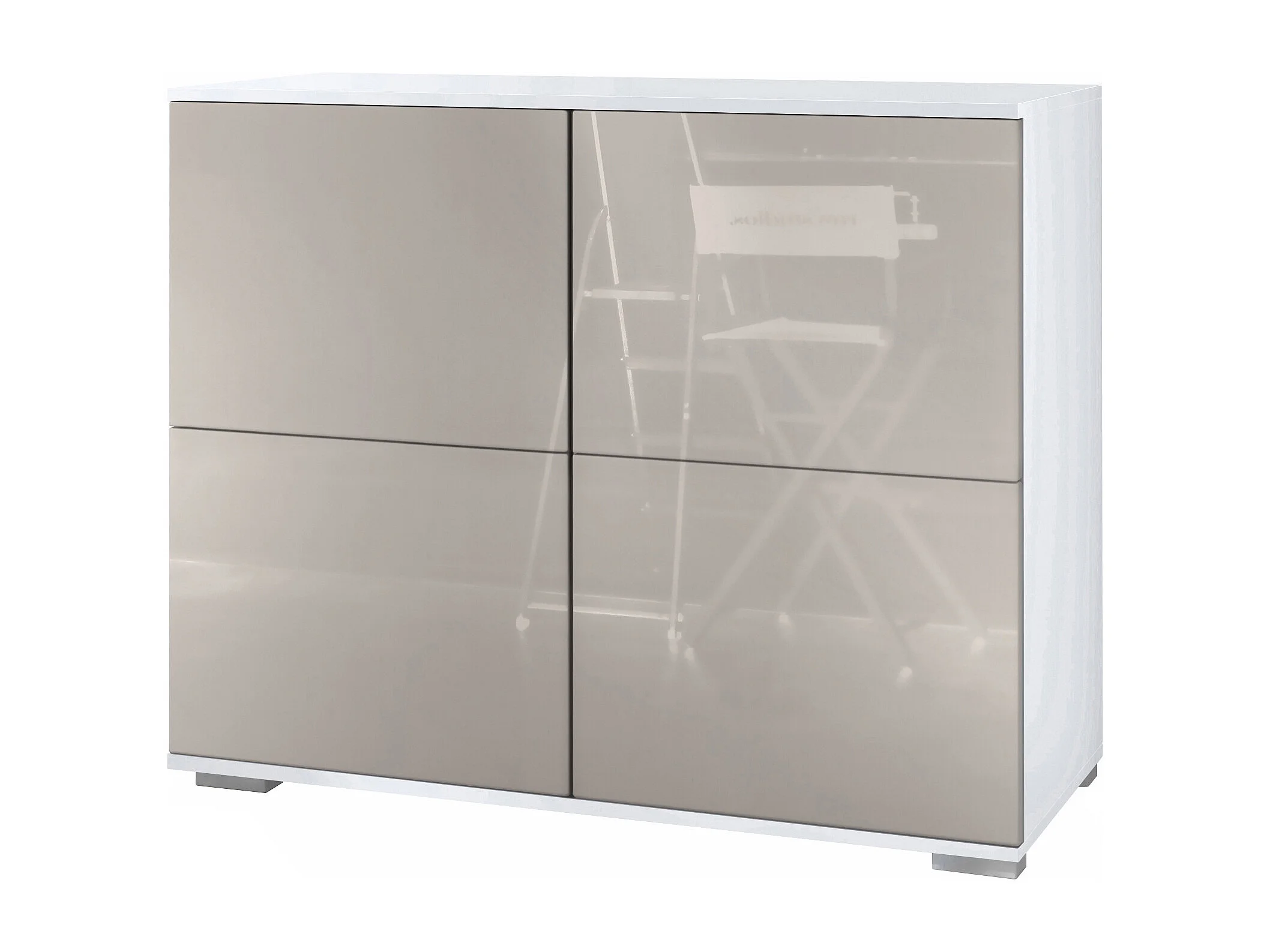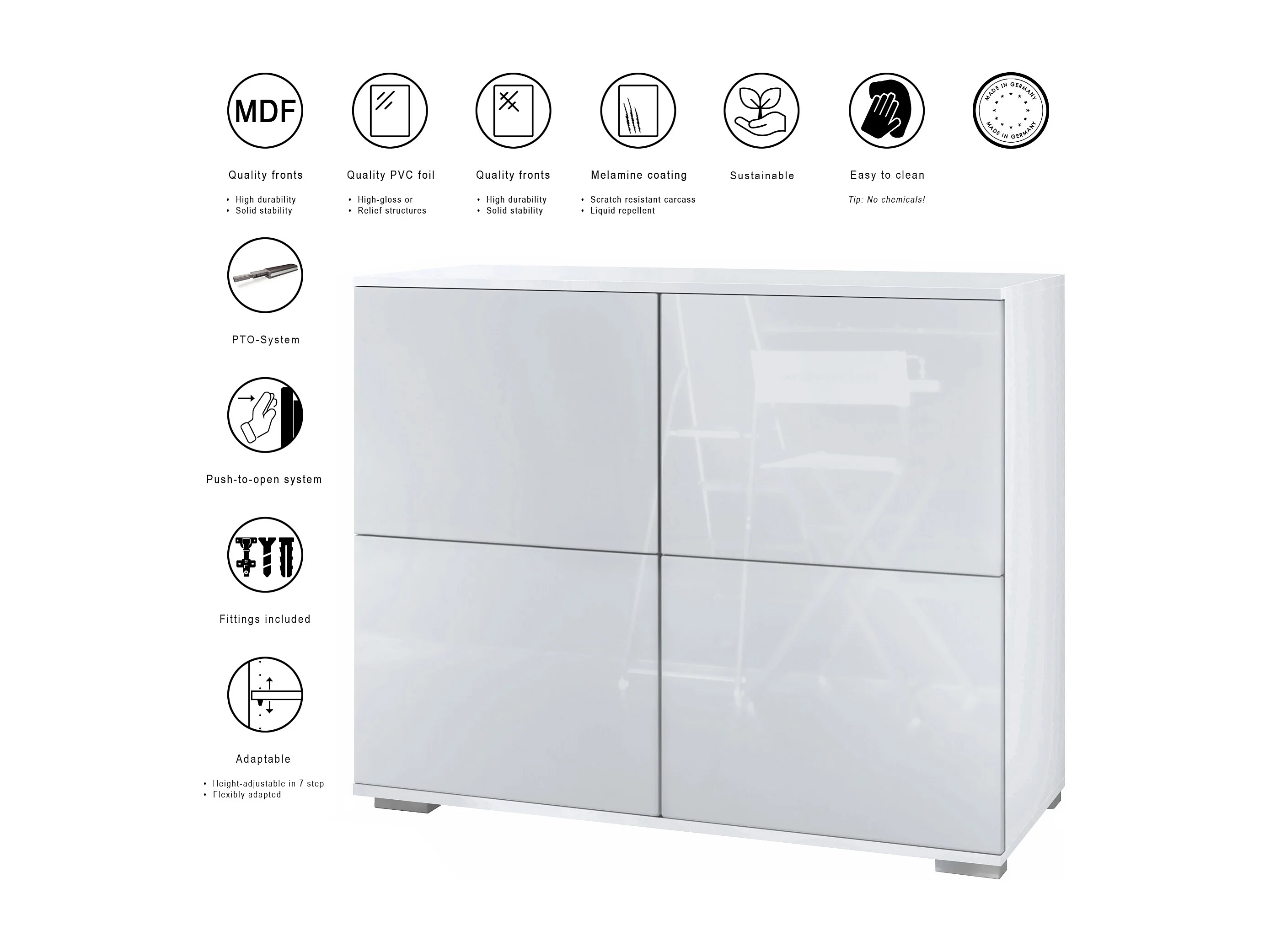 Buffet Rova V3 – Meuble de cuisine moderne avec 4 portes Push-to-Open blanc mat / gris sable haute brillance (92,5 x 75.5 x 35)