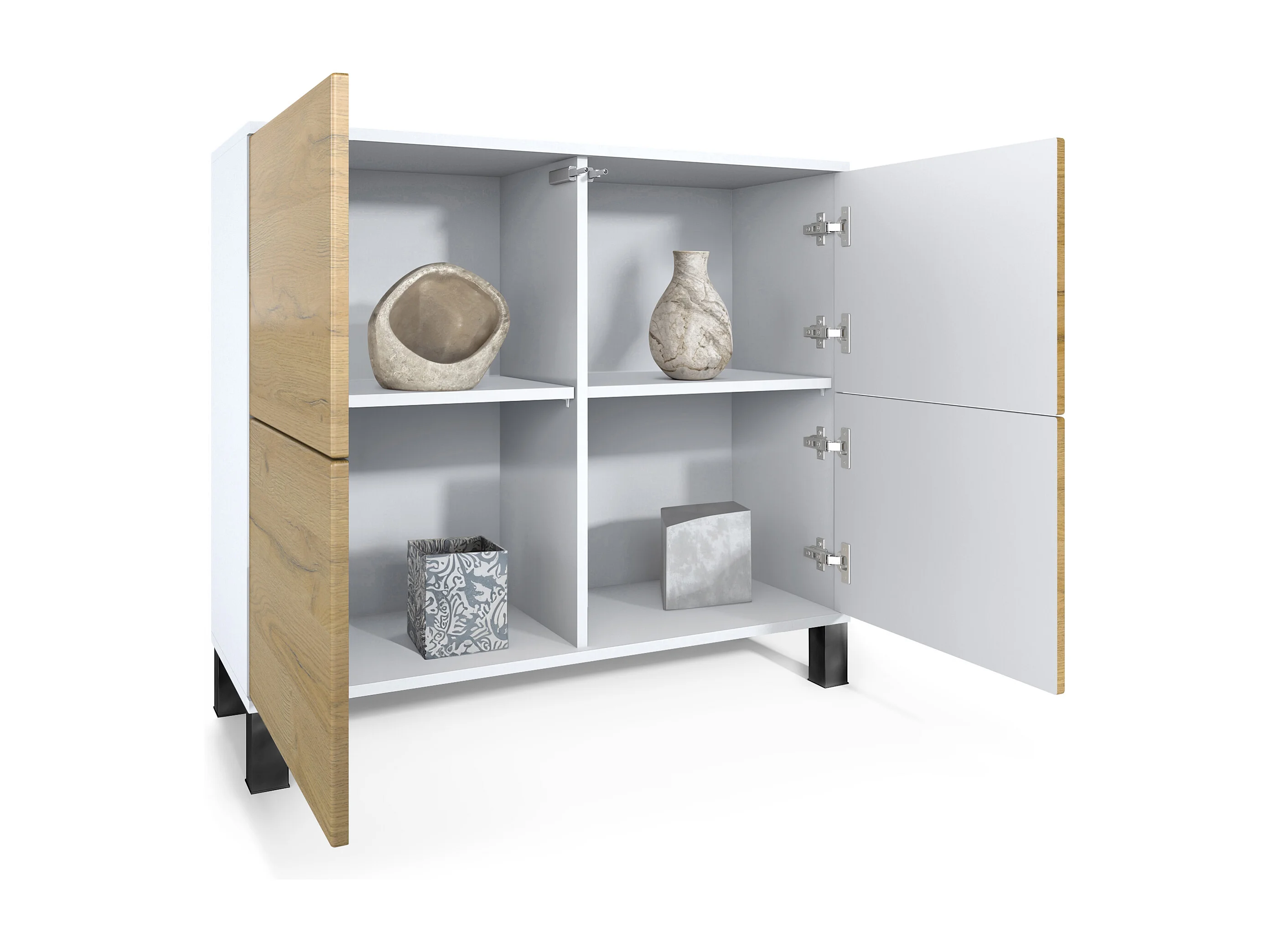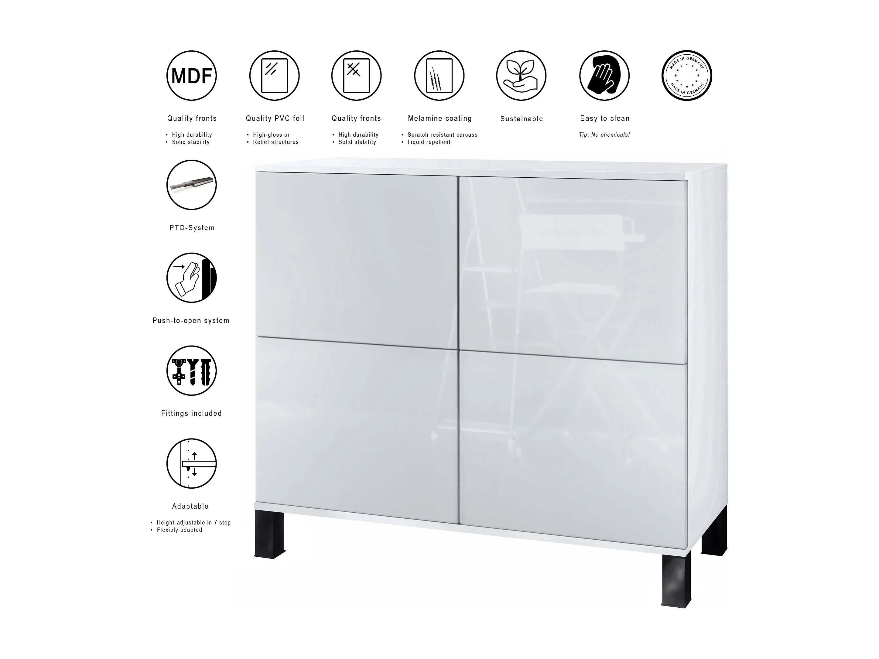Buffet Rova V3 – Meuble de cuisine moderne avec 4 portes Push-to-Open blanc mat / noir haute brillance (92,5 x 84.5 x 35)