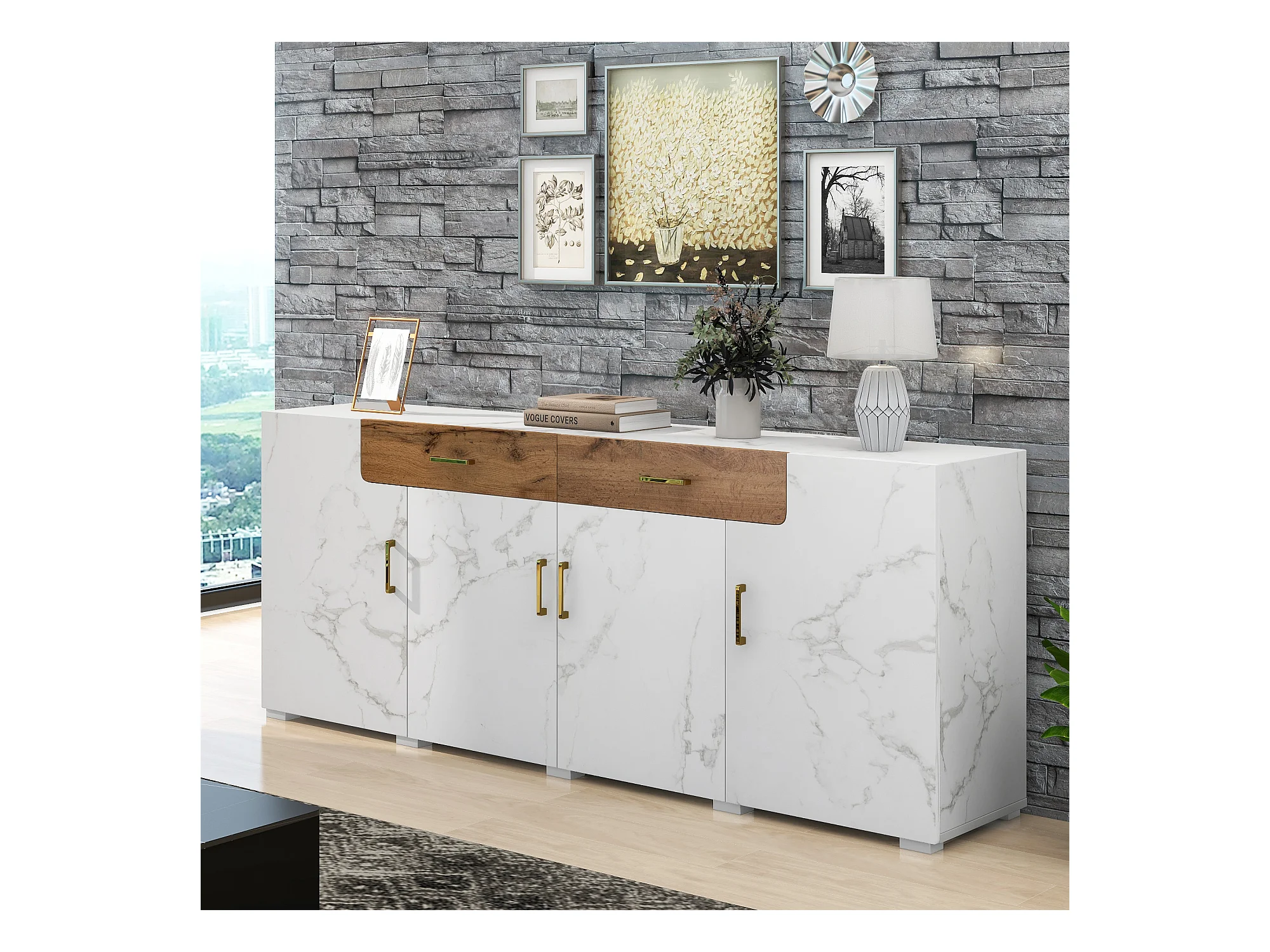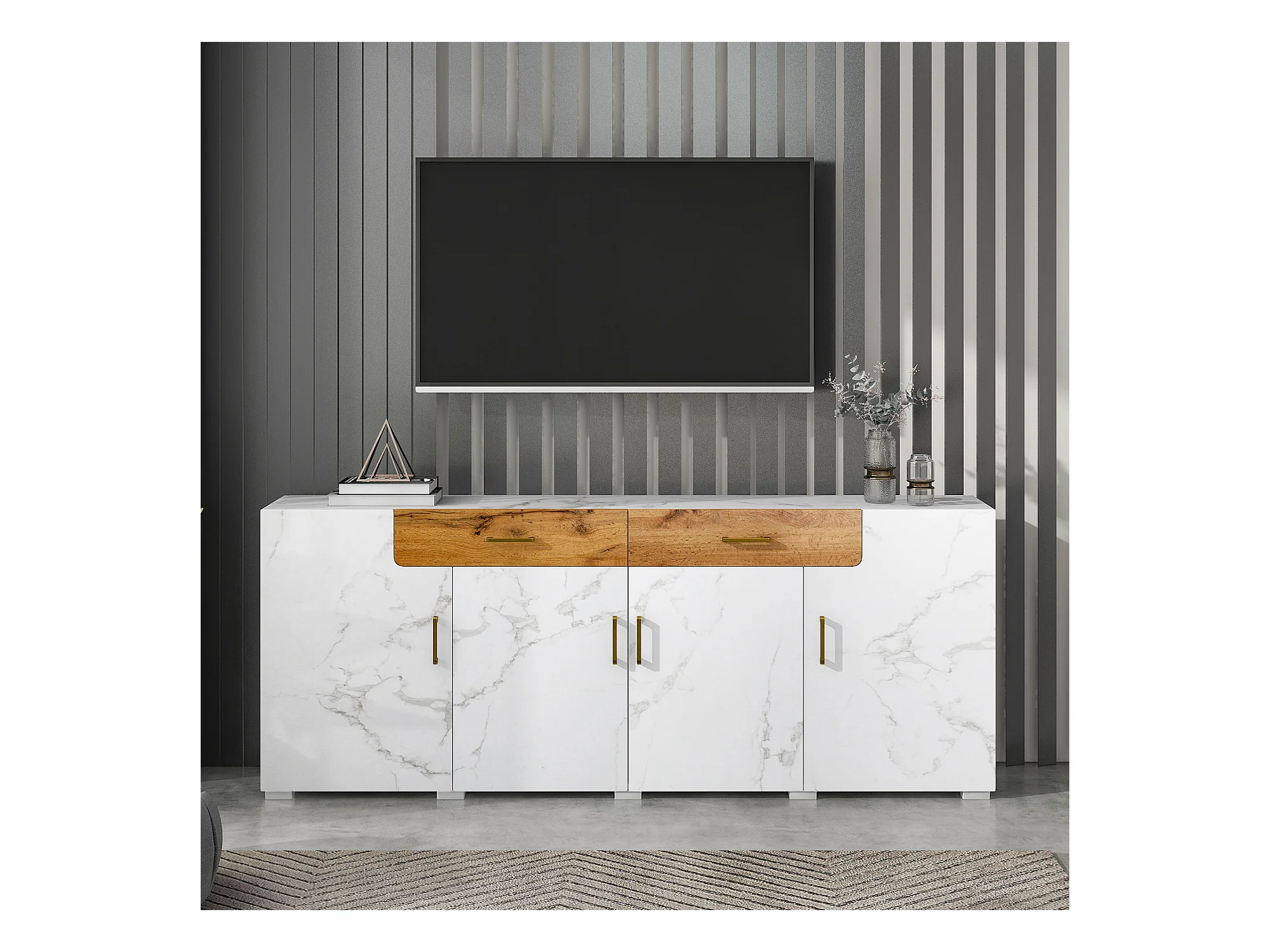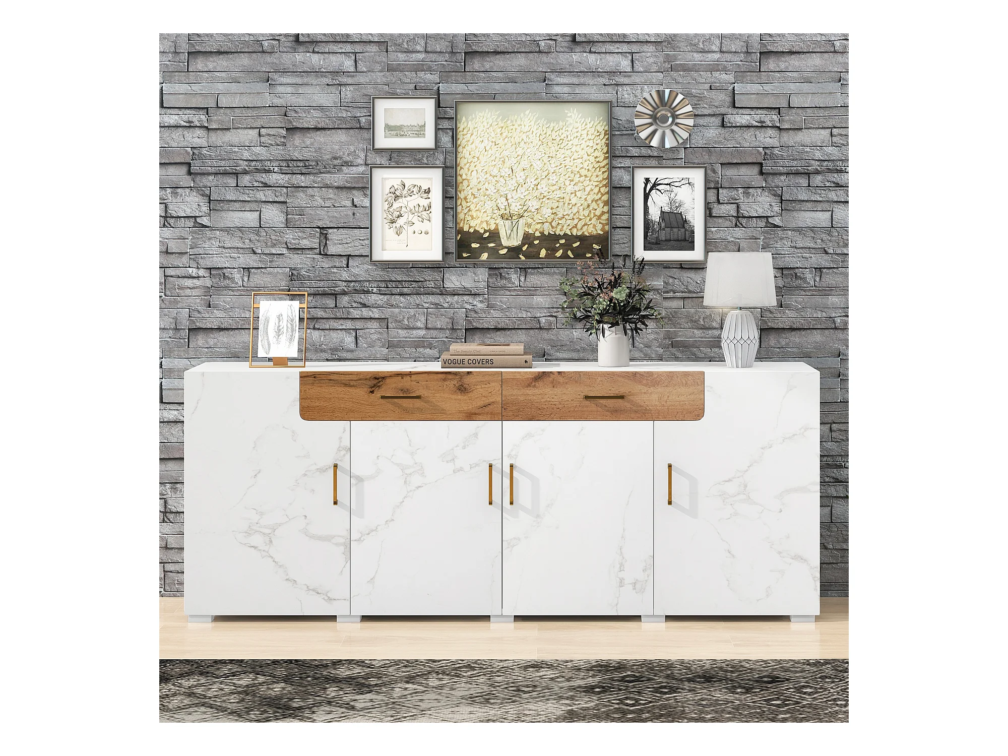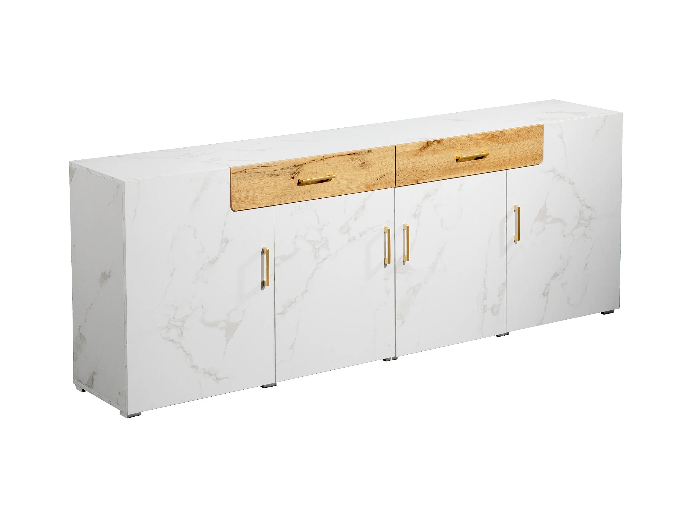 Buffet 208x39.5x80 cm avec 4 portes 2 tiroirs - meuble de rangement - bois - blanc