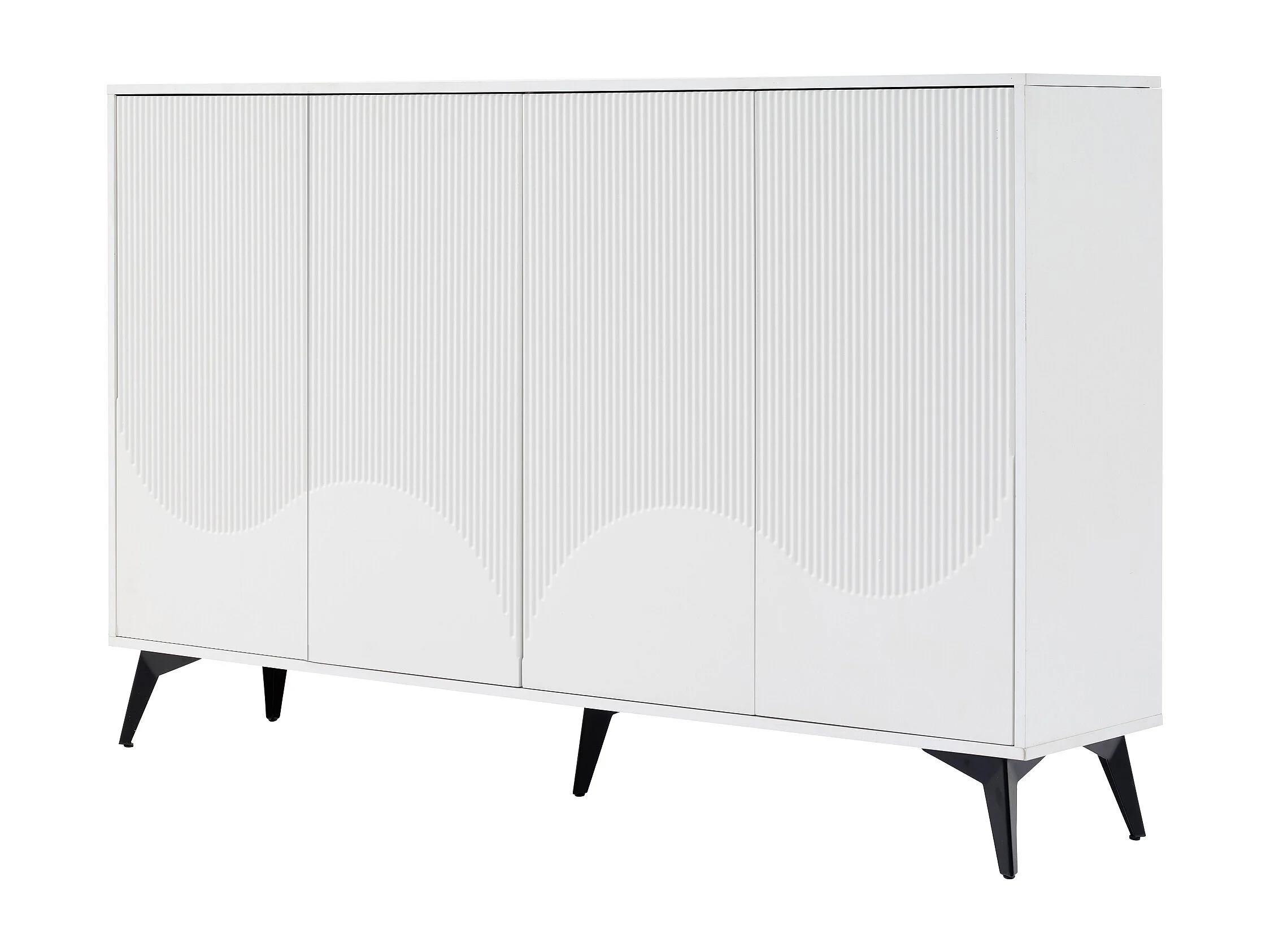 Buffet 160x35x100 cm avec 4 portes meuble de rangement - étagères réglables - bois - blanc