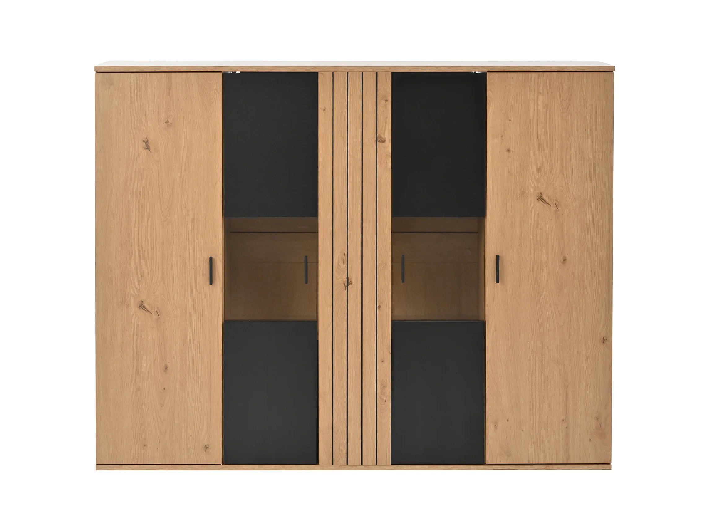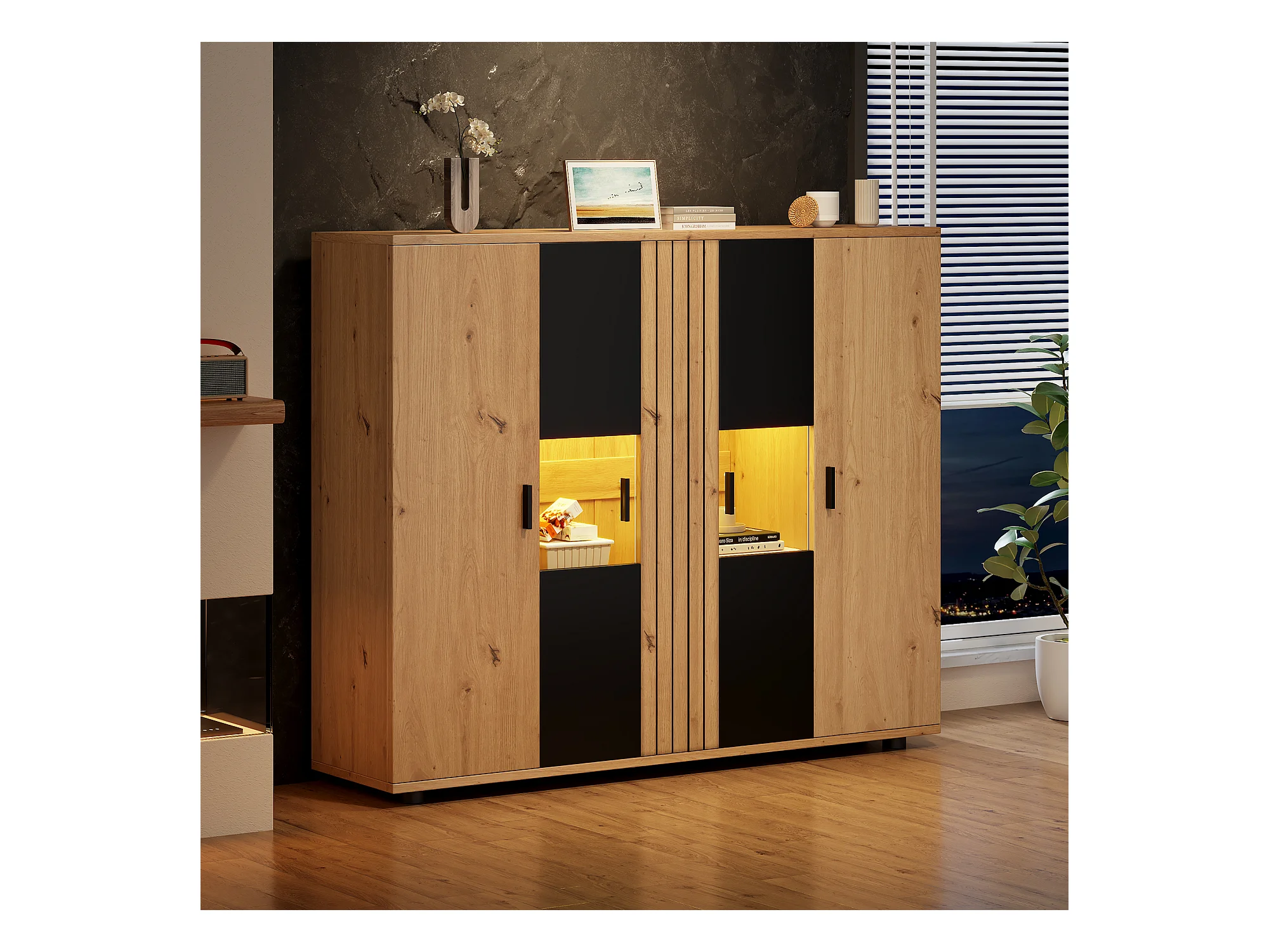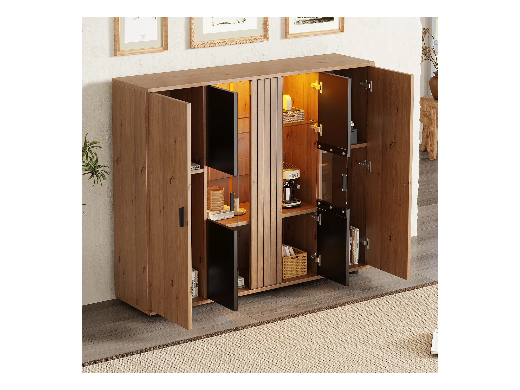 Buffet salle à manger LED 4 portes - verre décoratifet et étagères réglables - bois - marron + noir (140x35x113 cm)