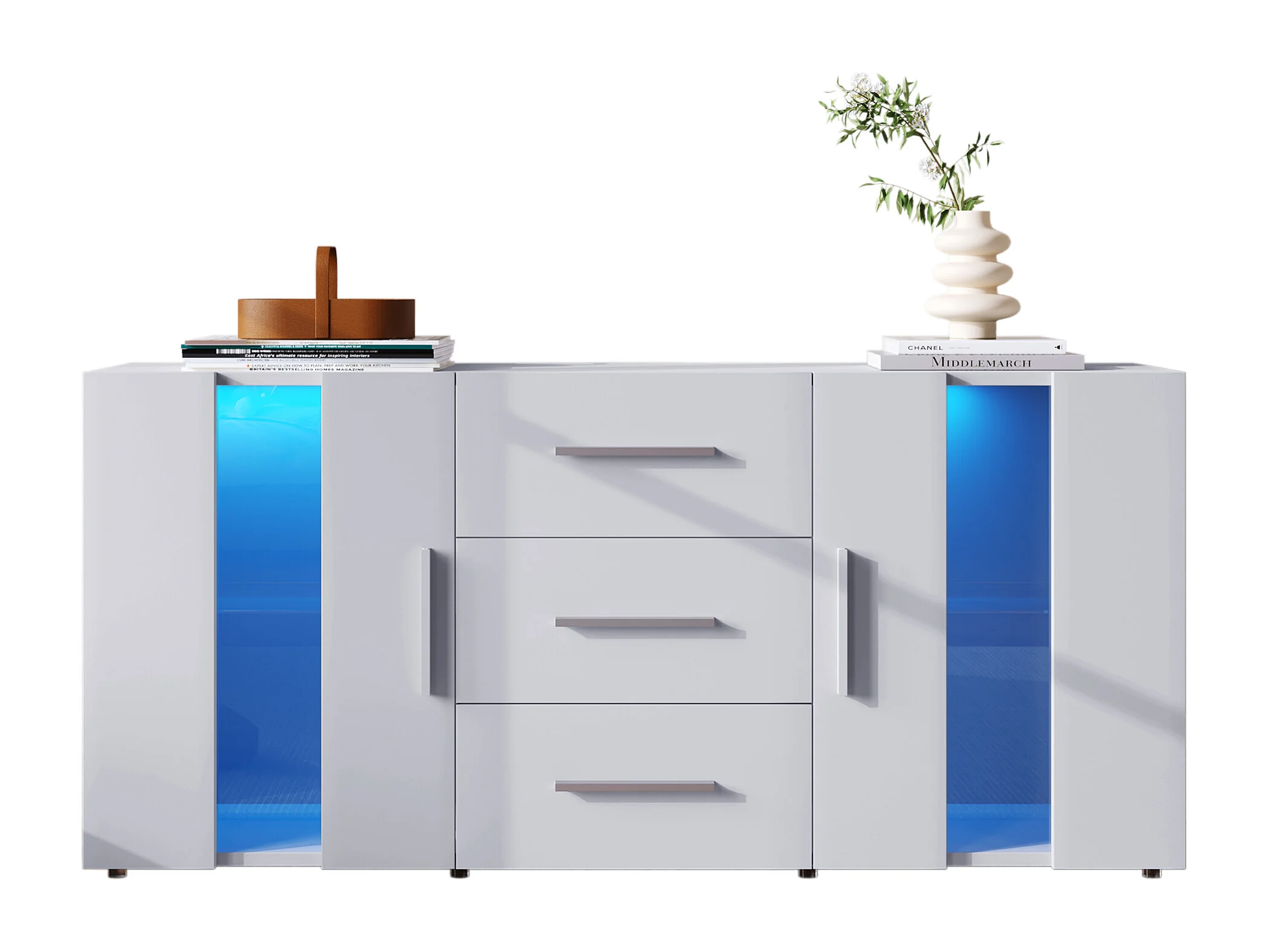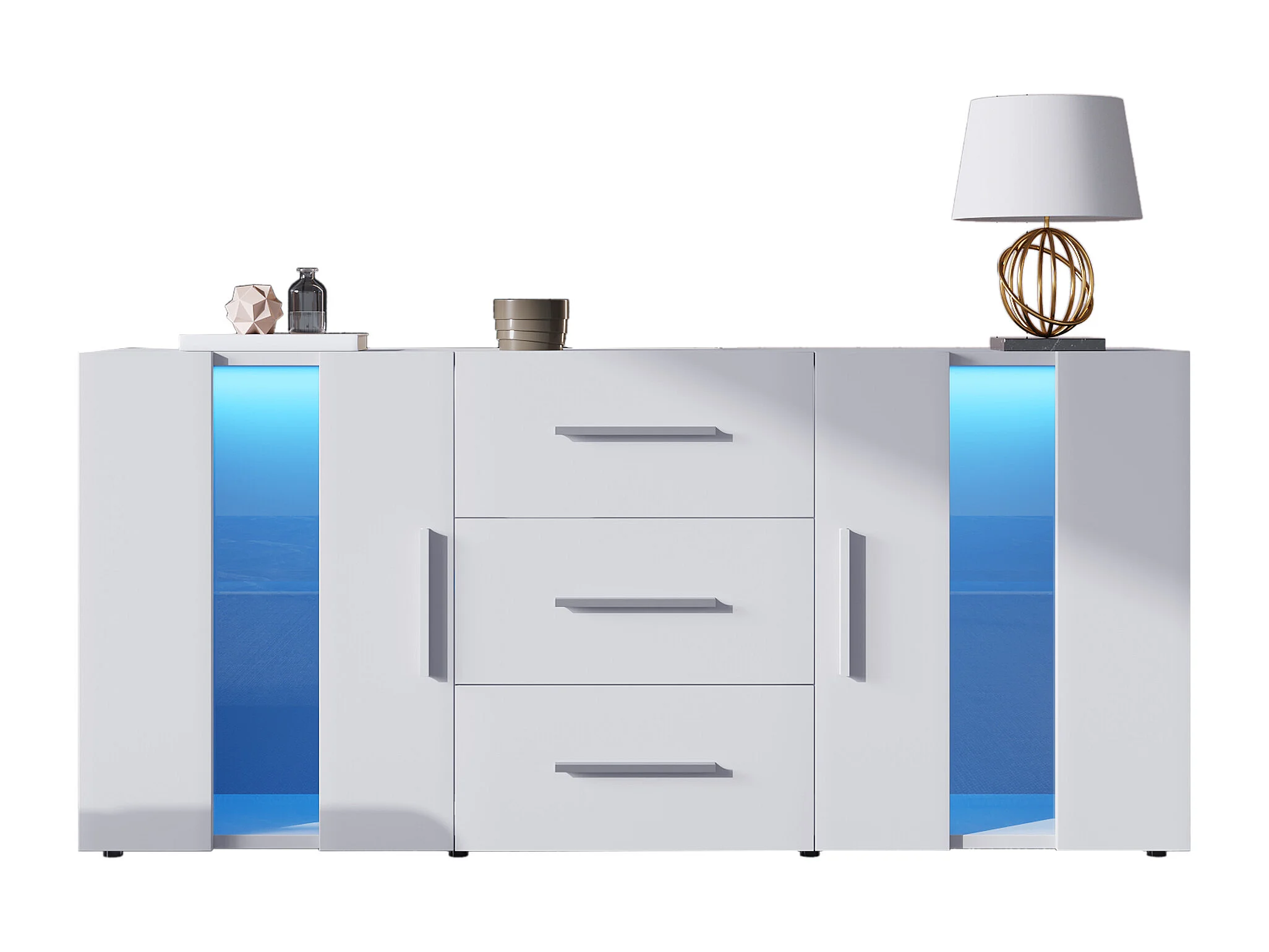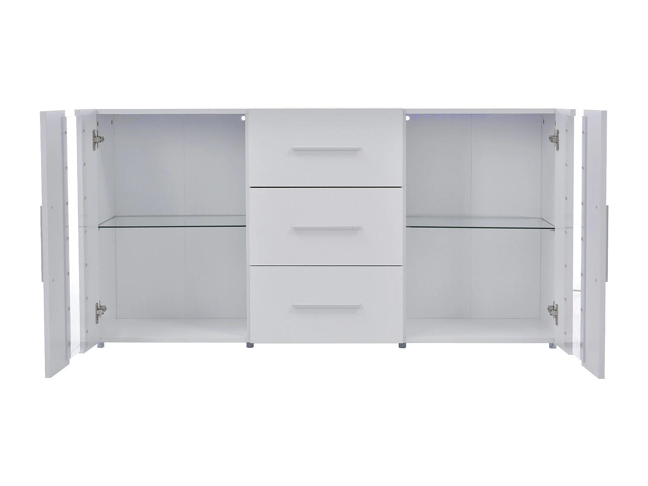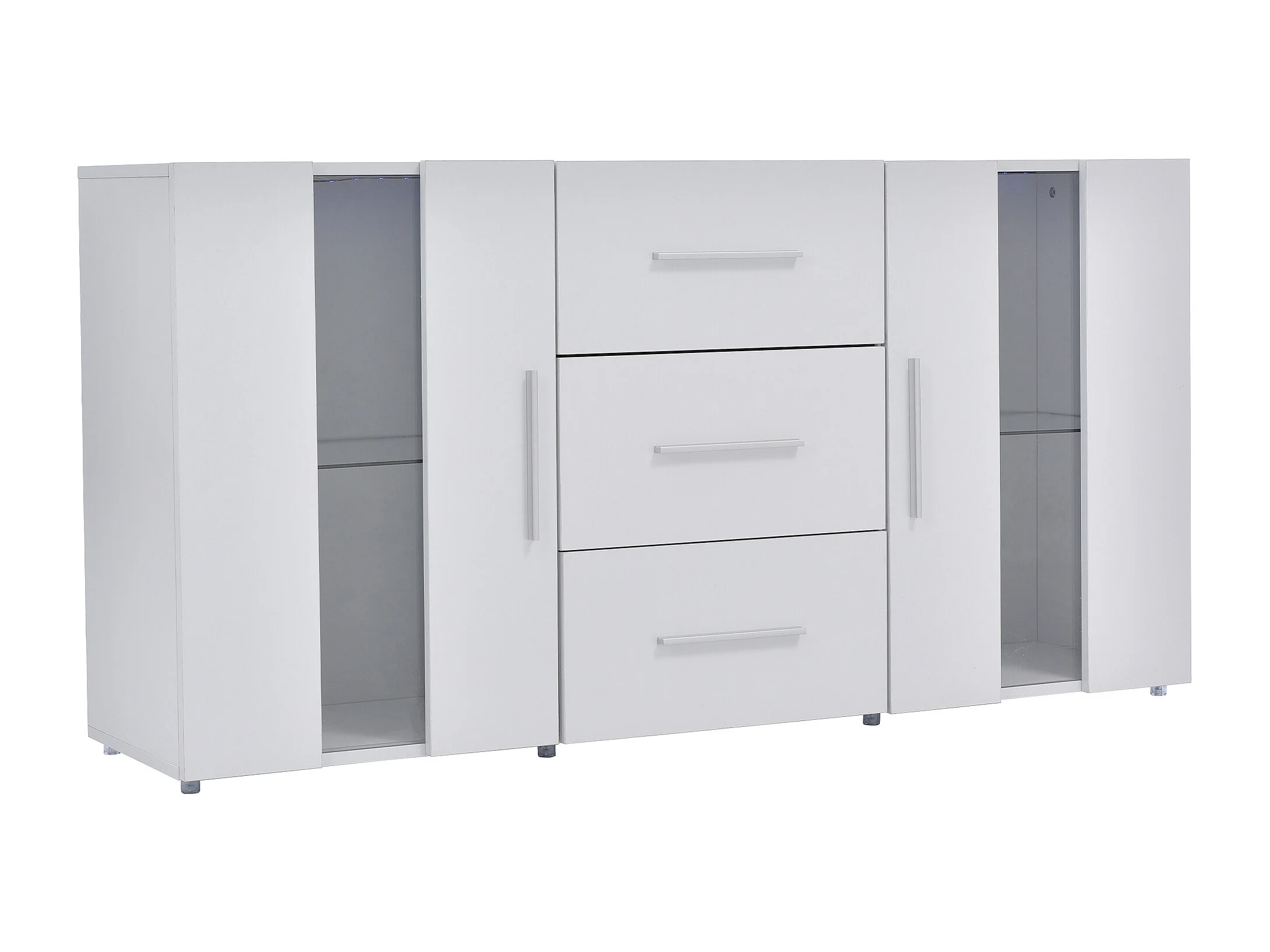 Buffet 140x35x72 cm LED avec 2 portes 3 tiroirs - meuble de rangement - bois - blanc